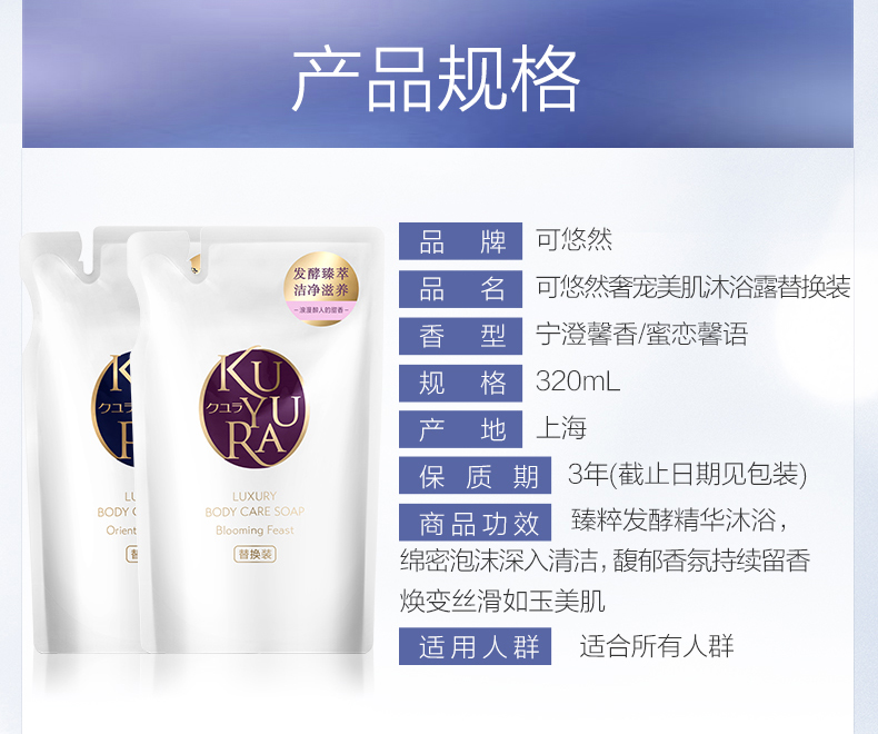 资生堂可悠然奢宠美肌沐浴露(宁澄馨香)替换装 320ml 白色