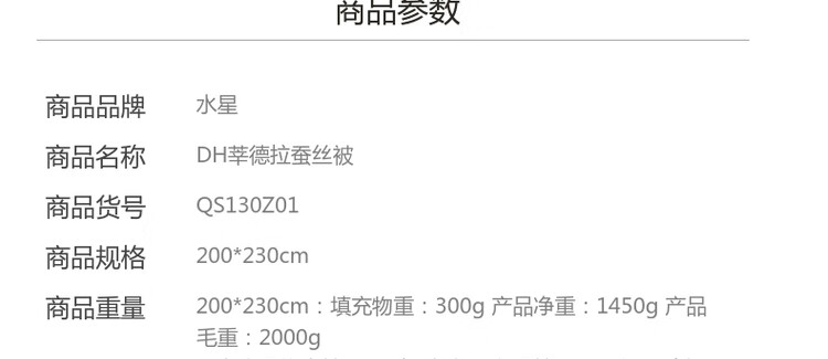水星家纺 DH莘德拉蚕丝被 200*230cm(单位:床) 白色