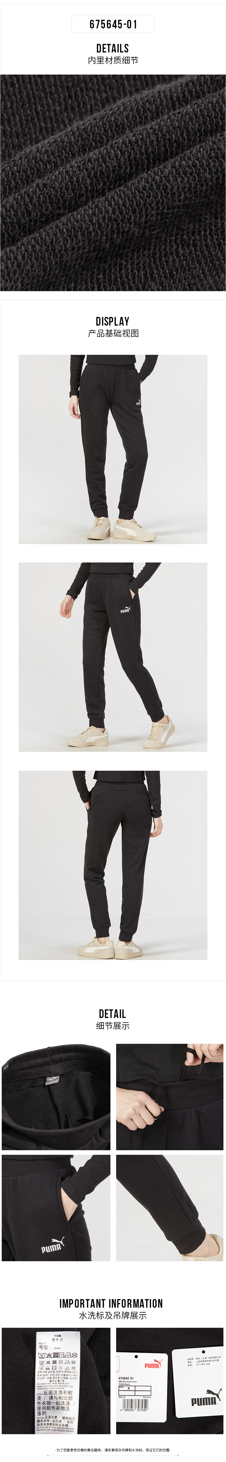 彪马(PUMA)女裤 2023秋季新款户外运动裤舒适透气时尚休闲针织长 675645-01 黑色 S