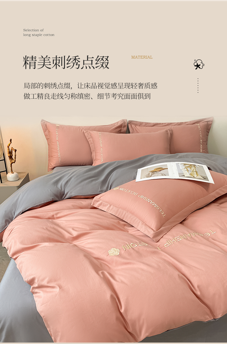 罗曼罗兰 轻奢四件套 60s 山茶花 浅豆沙