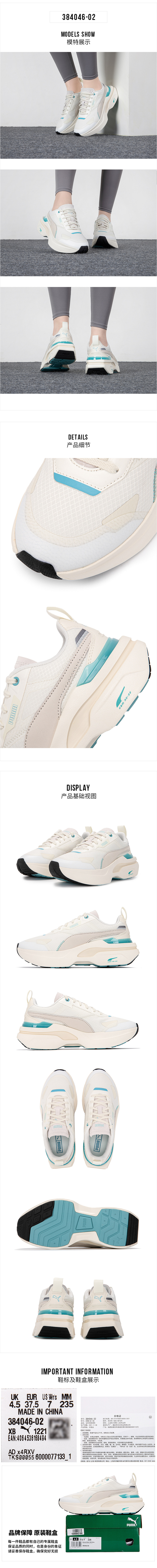 彪马(PUMA)女鞋 新款运动鞋耐磨轻便健身户外穿搭透气板鞋休闲鞋子 384046 米白色-蓝绿色 37