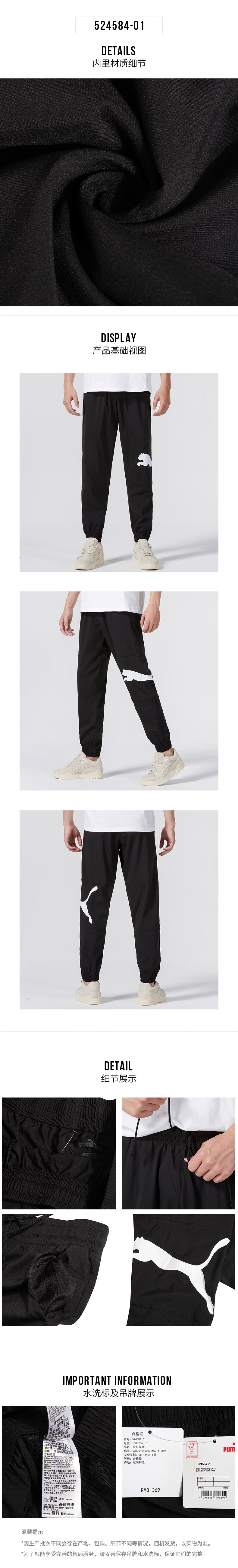 彪马(PUMA)男裤 秋季新款时尚户外跑步训练运动裤舒适透气休闲长裤 524584 黑色 XL
