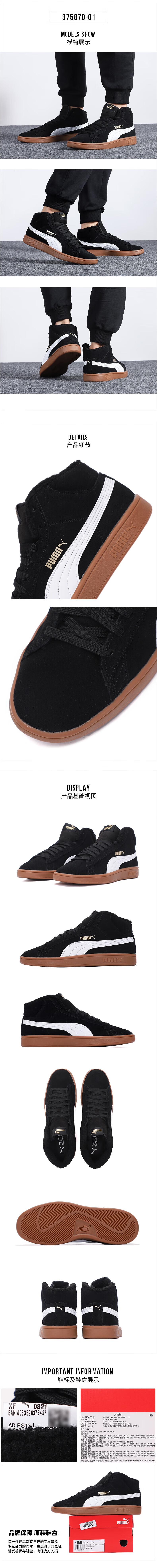 彪马(PUMA)男女鞋 新款情侣运动鞋防滑耐磨板鞋加厚中帮男女休闲鞋 375870-01 黑色-彪马白-树胶色 37.5
