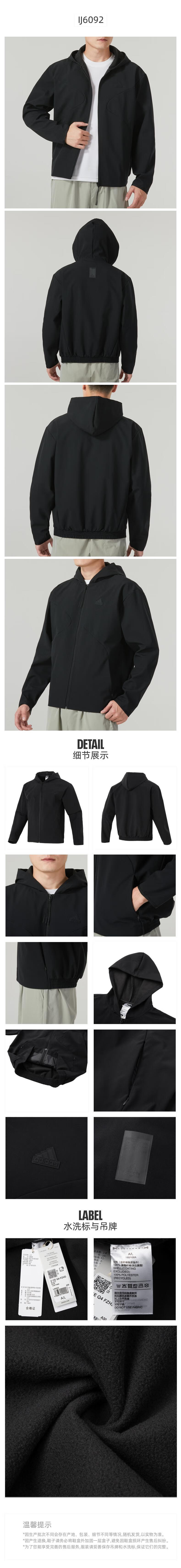 阿迪达斯 (adidas)男装 秋季新款时尚运动服梭织夹克休闲连帽外套 IJ6092 黑色 L