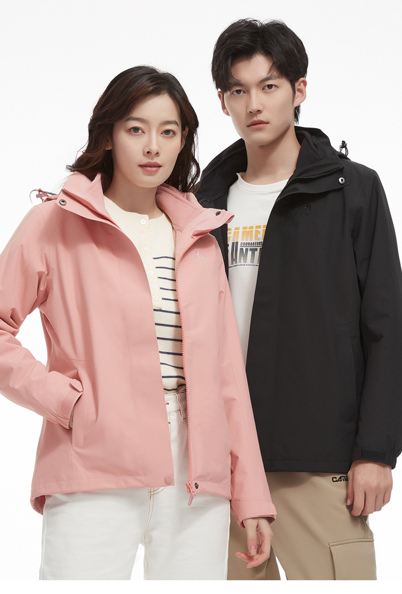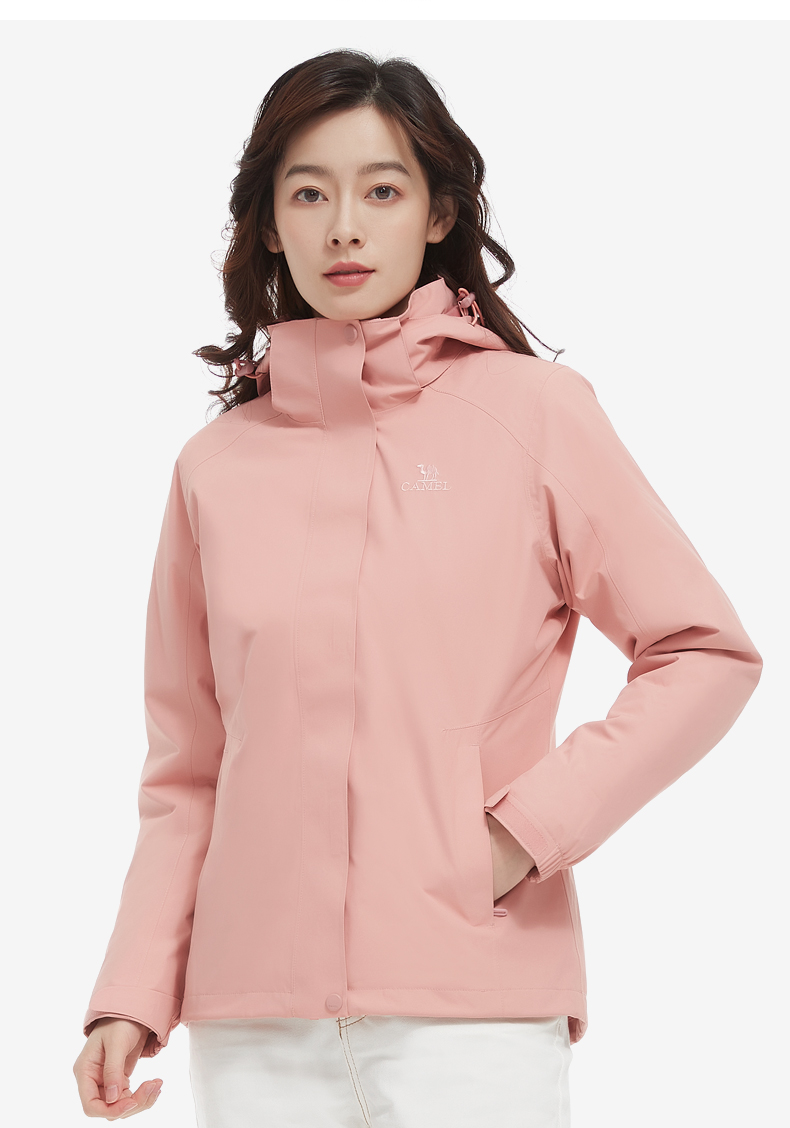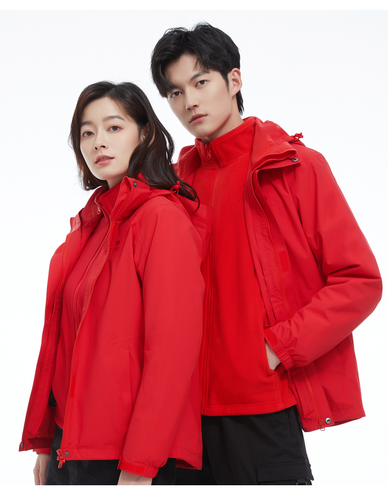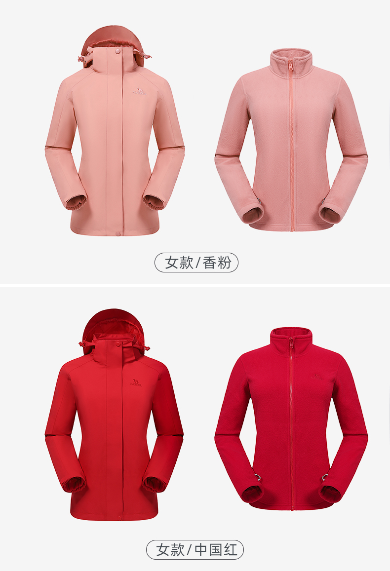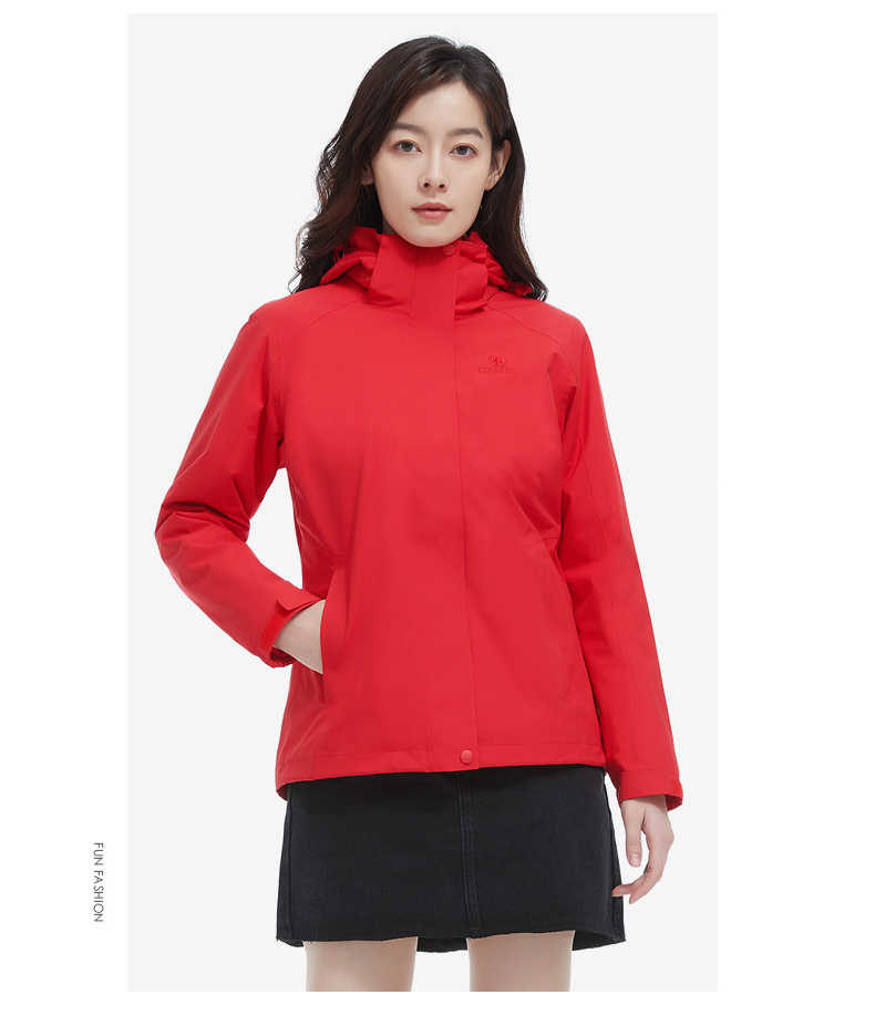 骆驼三合一可拆卸女冲锋衣保暖耐磨简约时尚防风防水户外出行服 V1W145377 件 中国红 L