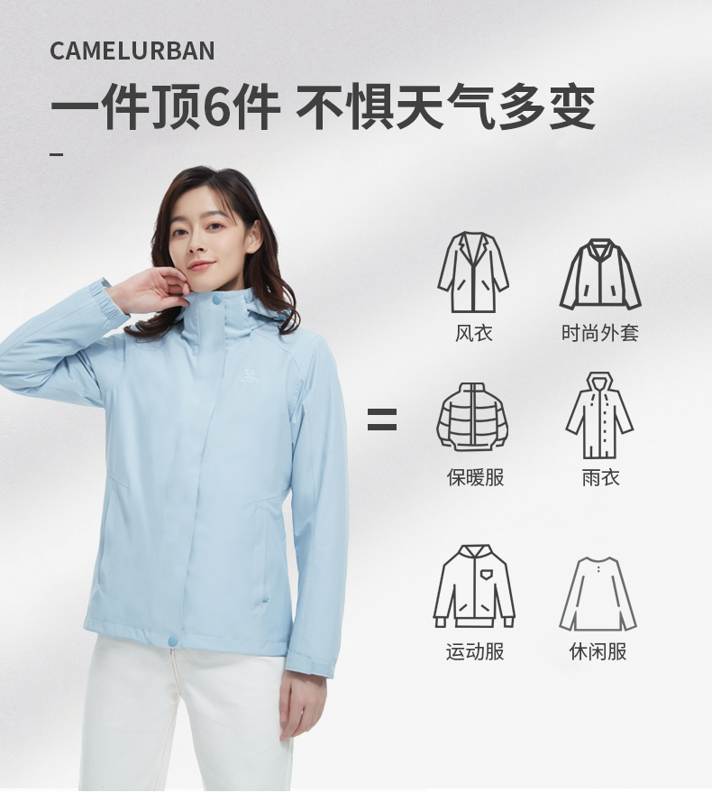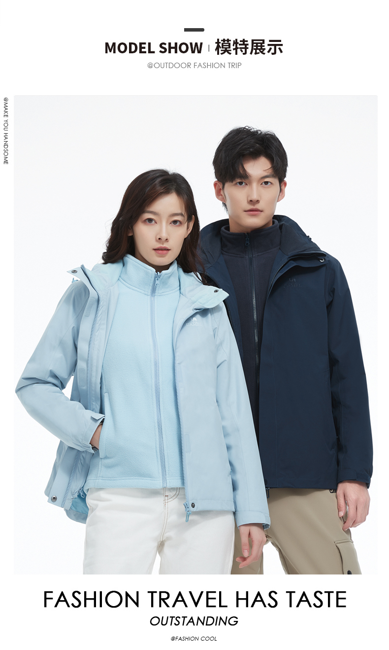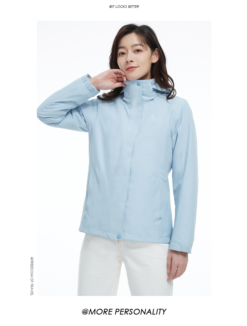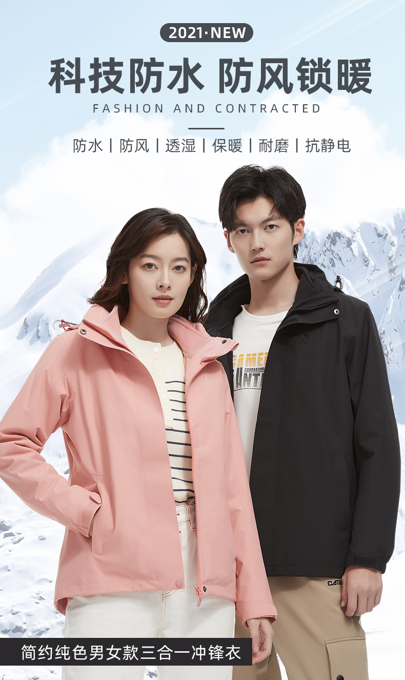骆驼三合一可拆卸女冲锋衣保暖耐磨简约时尚防风防水户外出行服 V1W145377 件 中国红 L