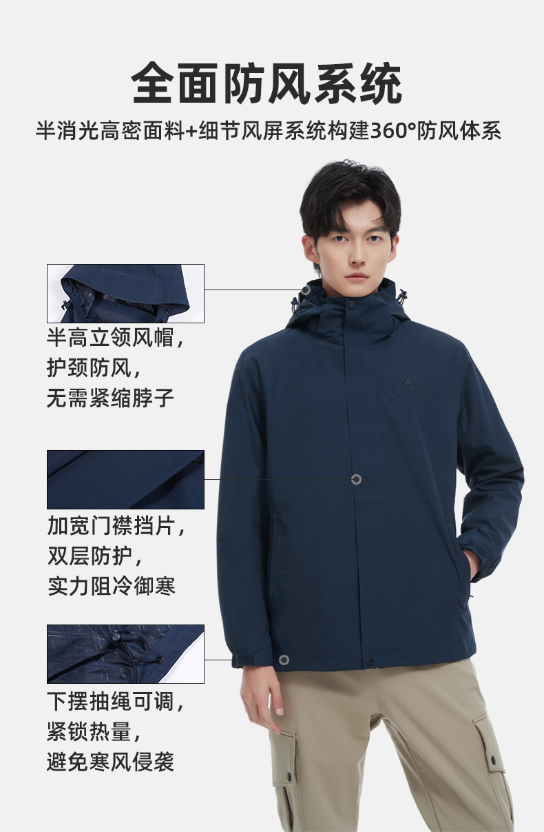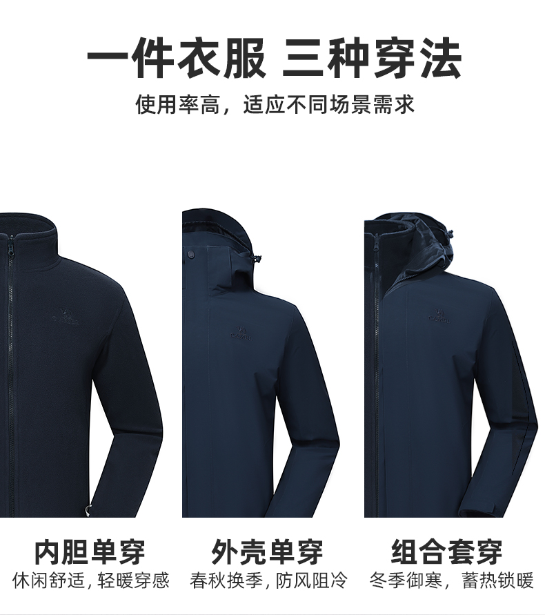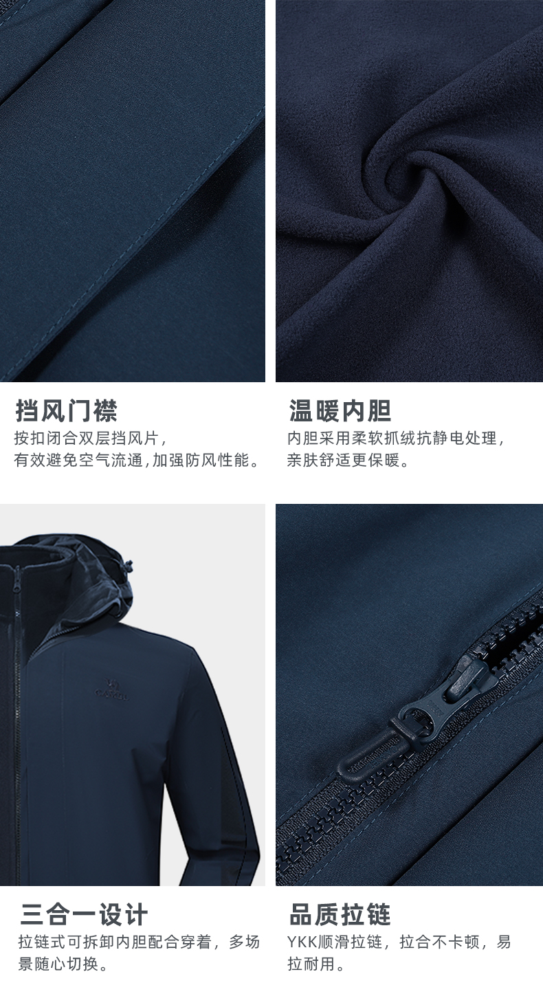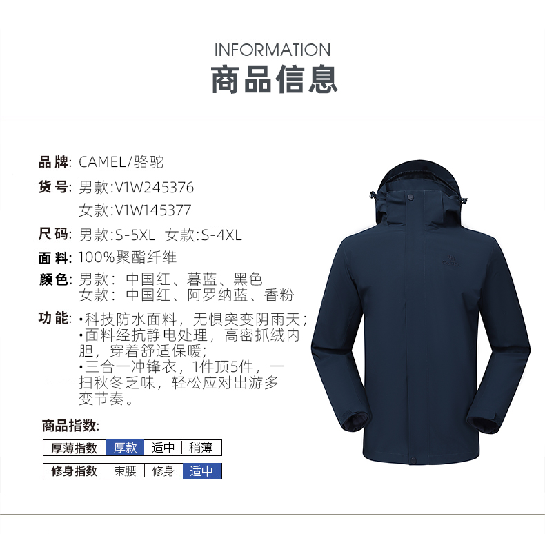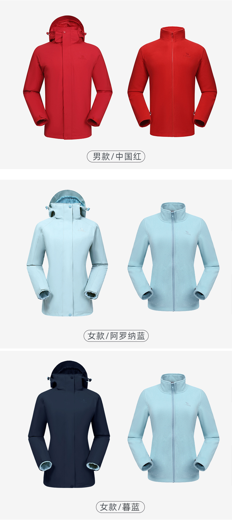 骆驼三合一可拆卸女冲锋衣保暖耐磨简约时尚防风防水户外出行服 V1W145377 件 中国红 L