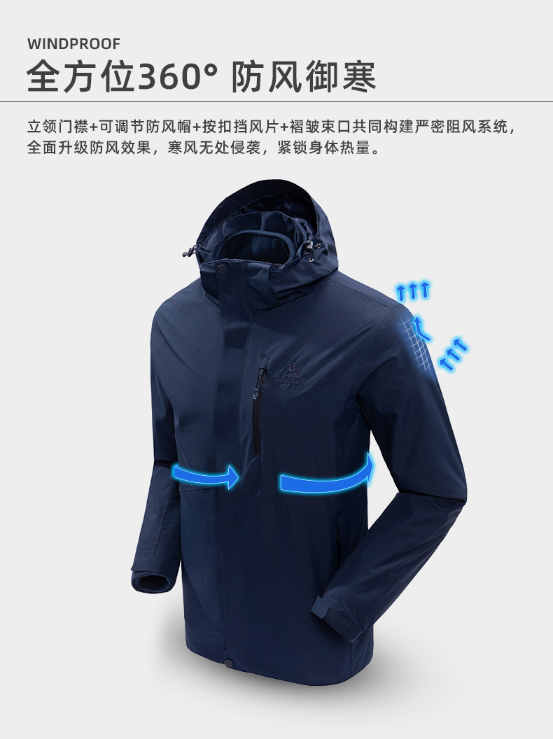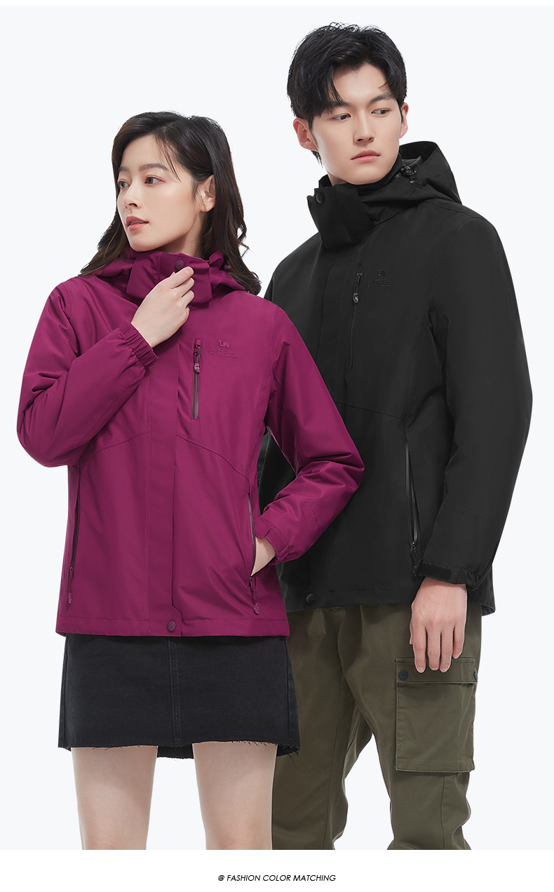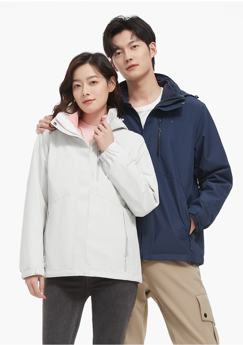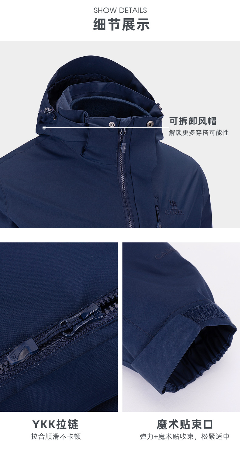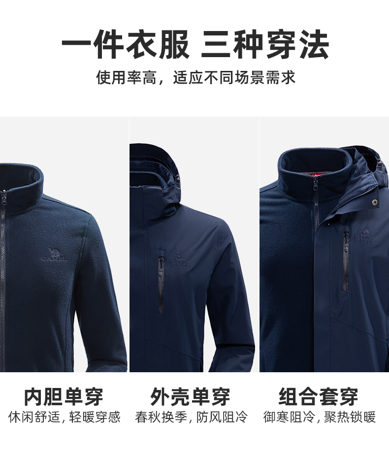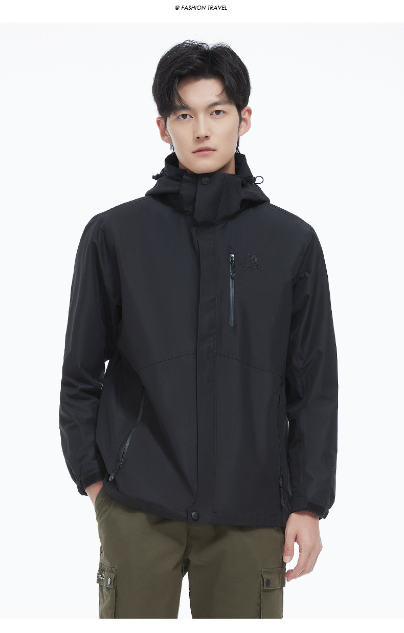 骆驼男款三合一抓绒加厚冲锋衣情侣款户外服装外套男 旅游登山服 V1W218257 件 黑色 XXL