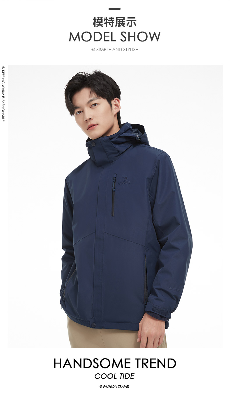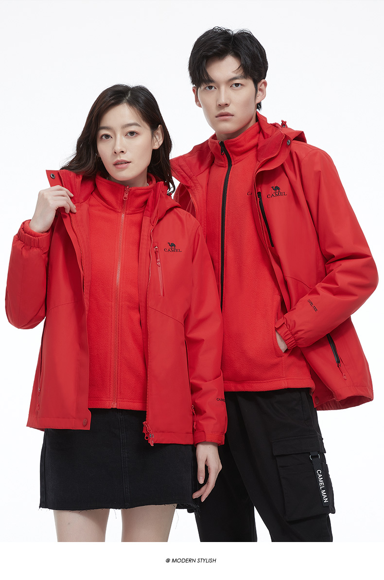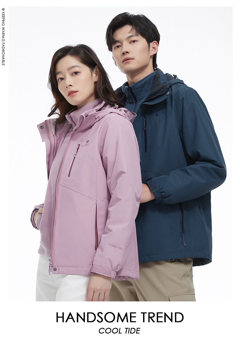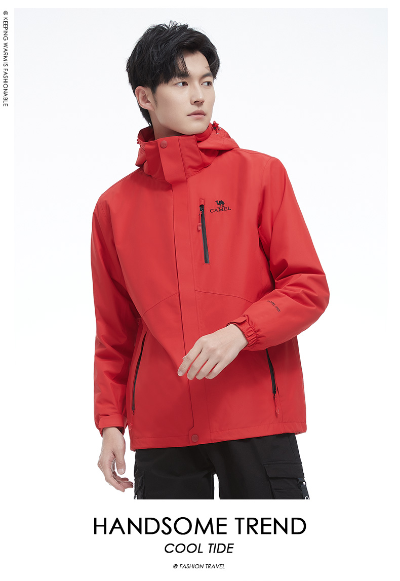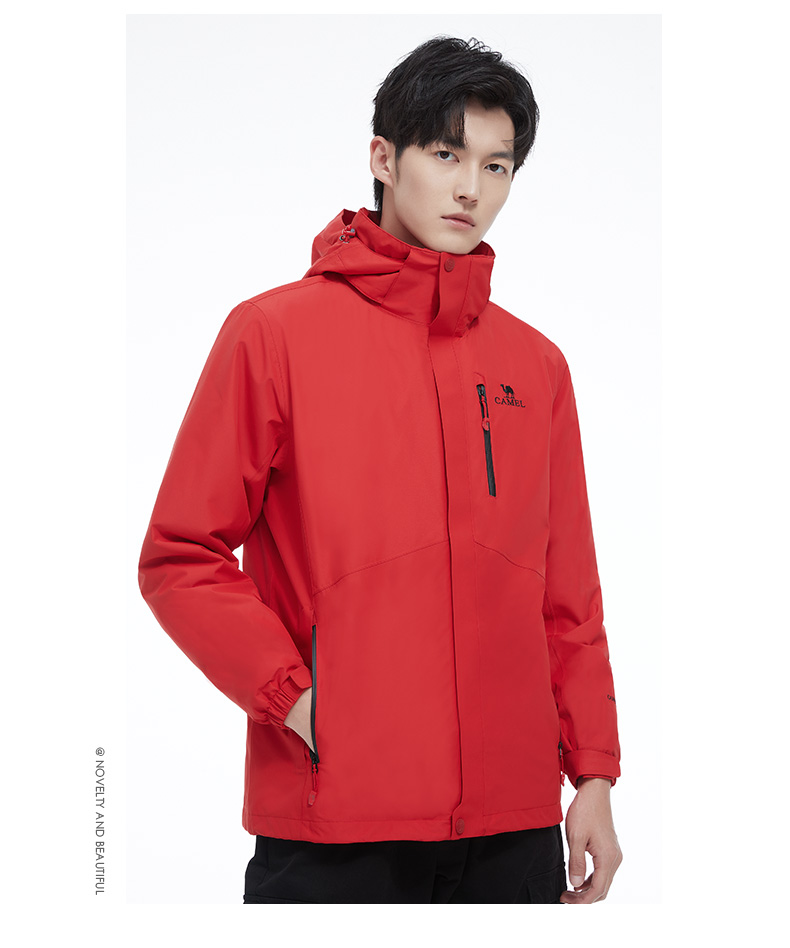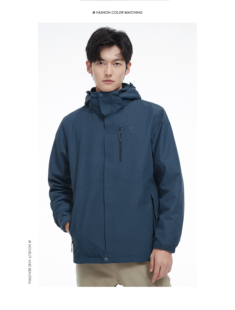 骆驼男款三合一抓绒加厚冲锋衣情侣款户外服装外套男 旅游登山服 V1W218257 件 黑色 XXL