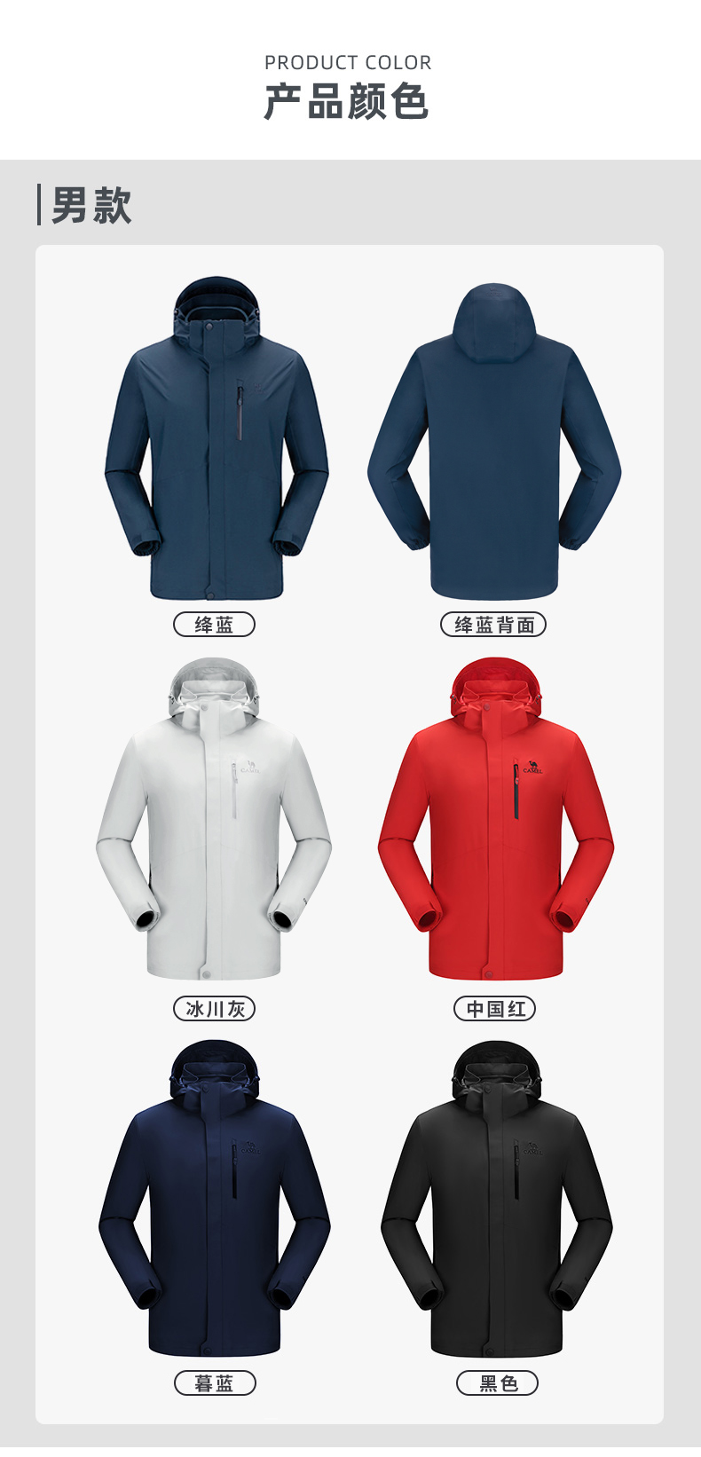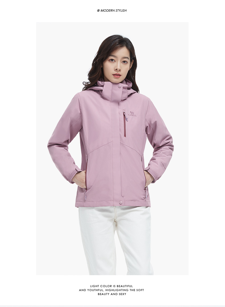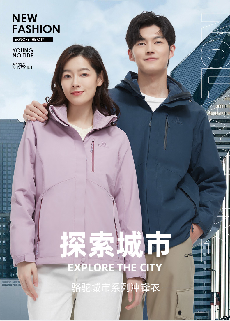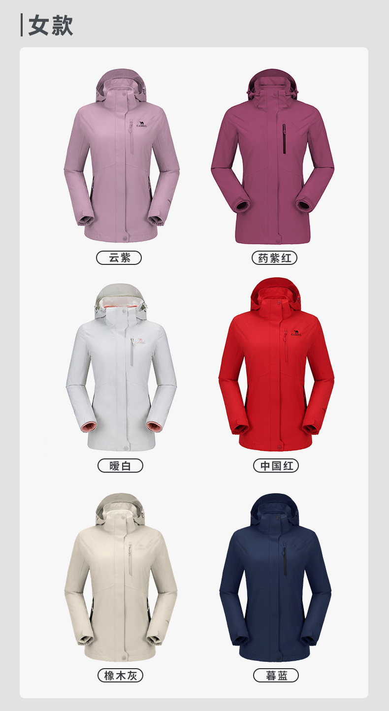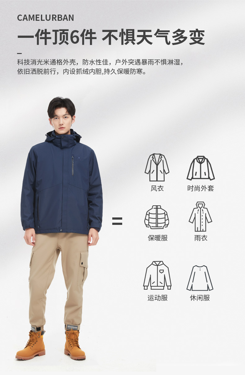 骆驼男款三合一抓绒加厚冲锋衣情侣款户外服装外套男 旅游登山服 V1W218257 件 黑色 XXL