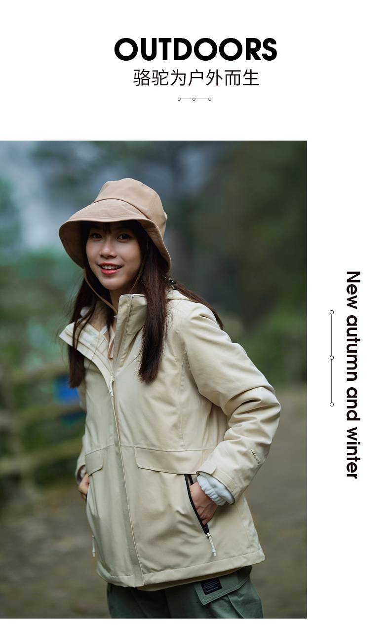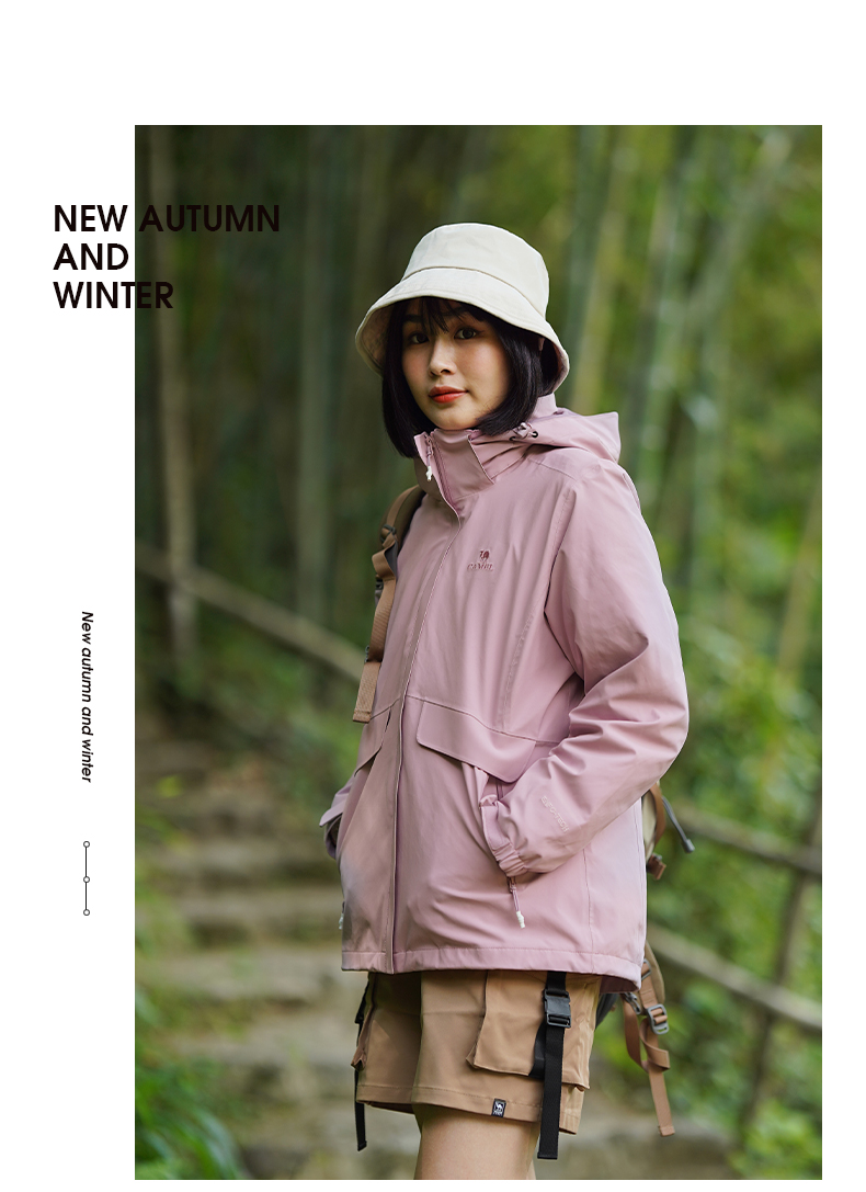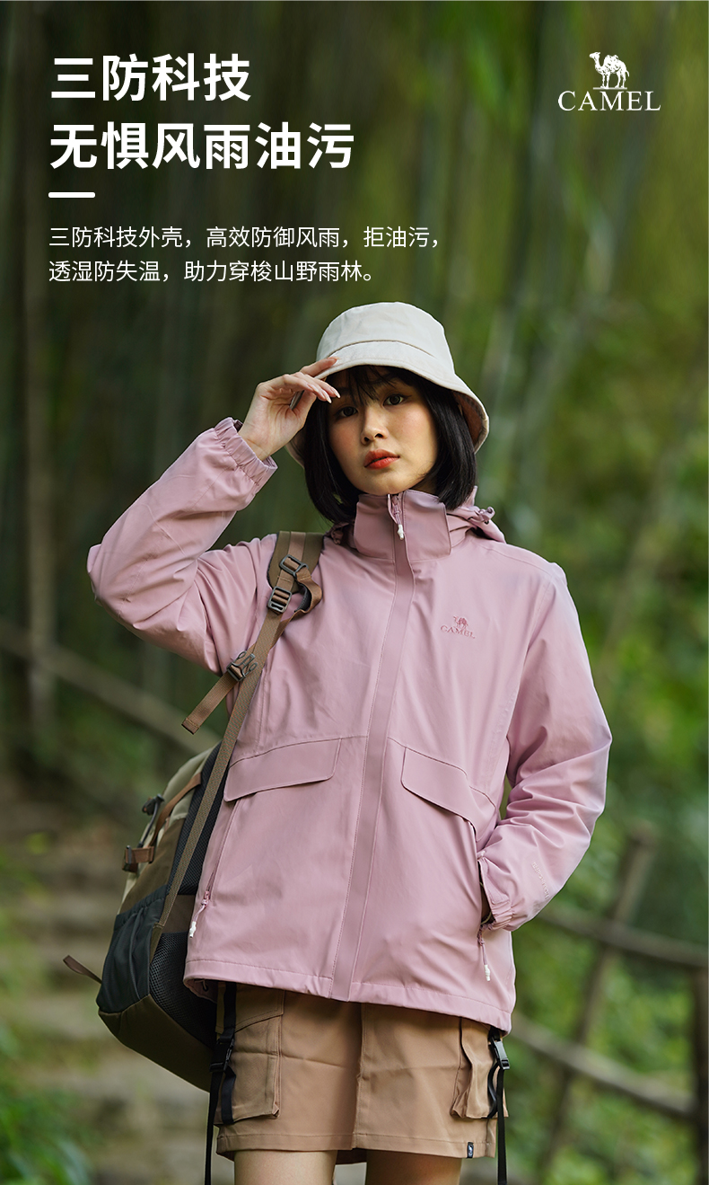 骆驼(CAMEL)三防冲锋衣女三合一可拆卸防风防水防污外套7A22263741 件 晨曦粉 M