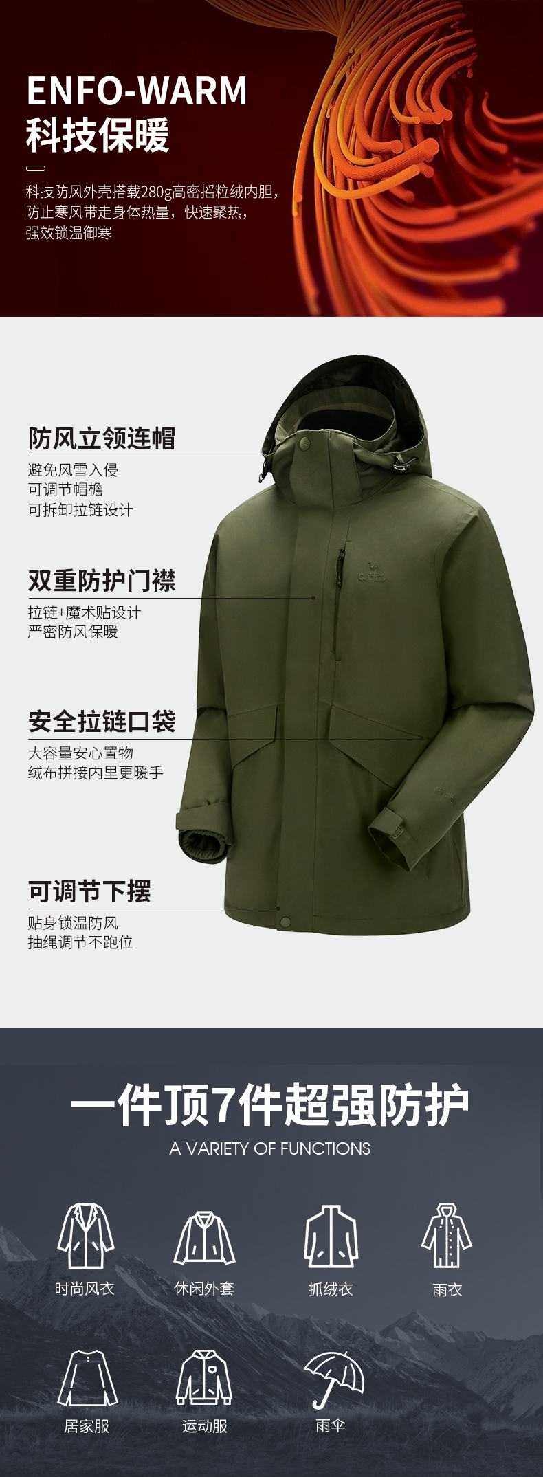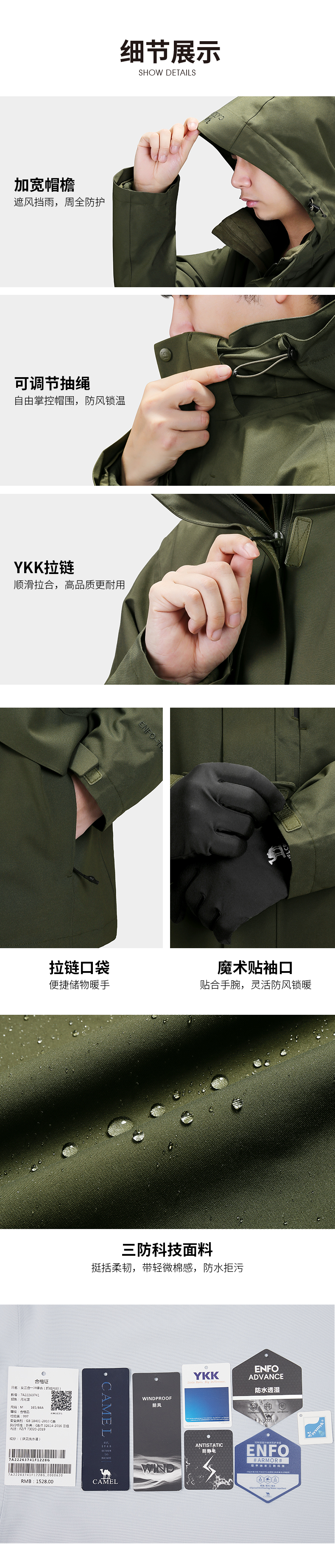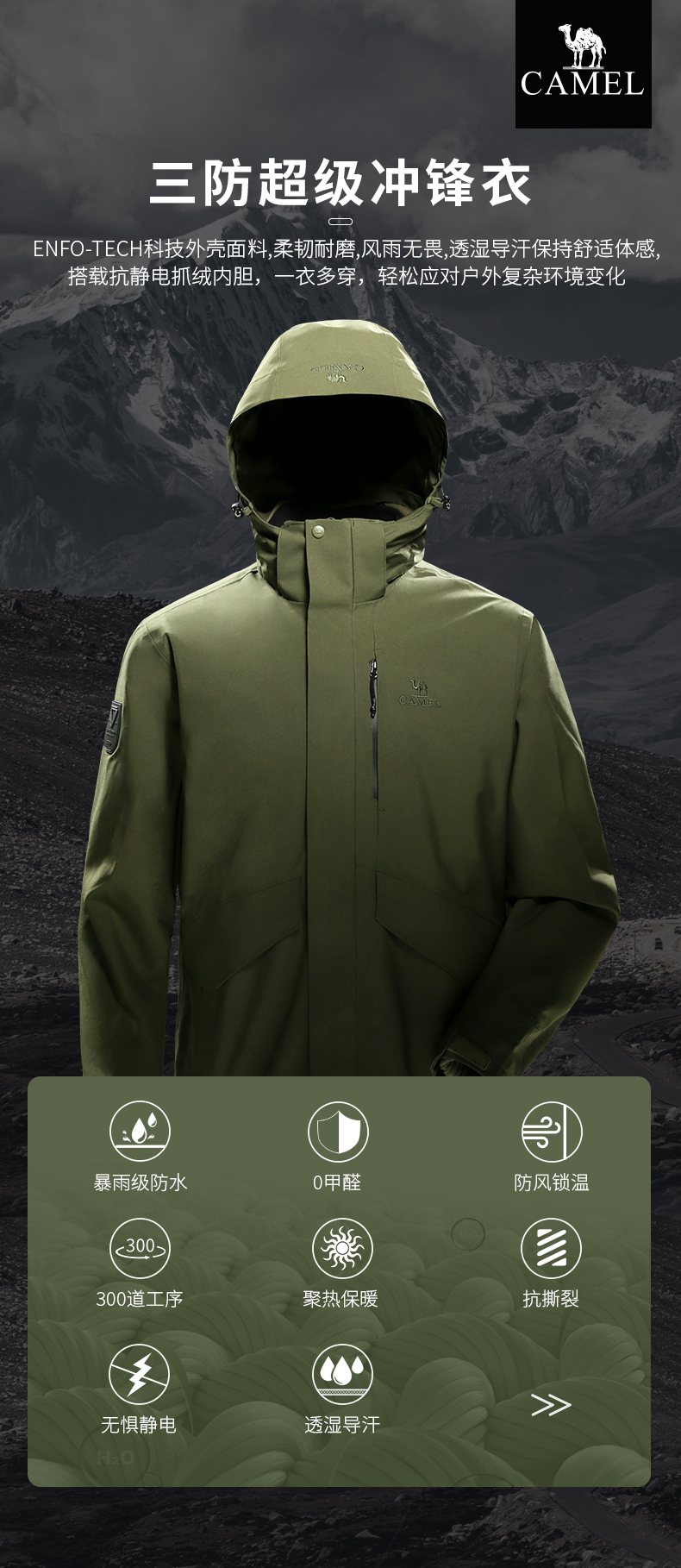 骆驼(CAMEL)三防冲锋衣女三合一可拆卸防风防水防污外套7A22263741 件 晨曦粉 M