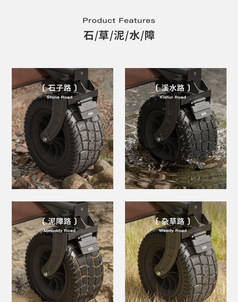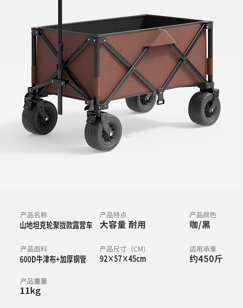 飞图乐 10寸山地坦克轮聚拢款露营车-高承重大容量(单位:辆) 黑色