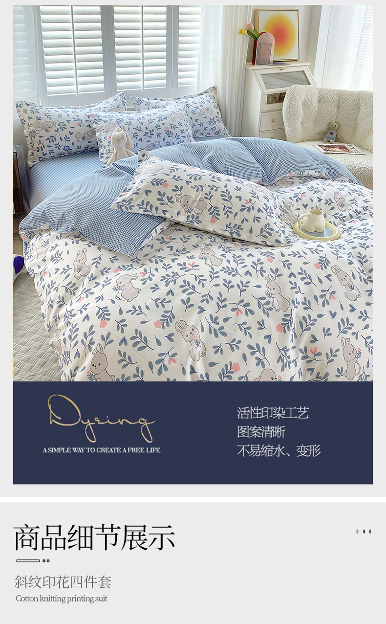 帛享家纺 植物羊绒四件套BXQMS-32938单位(套) 花小兔 四件套(适合1.5/1.8m床使用))