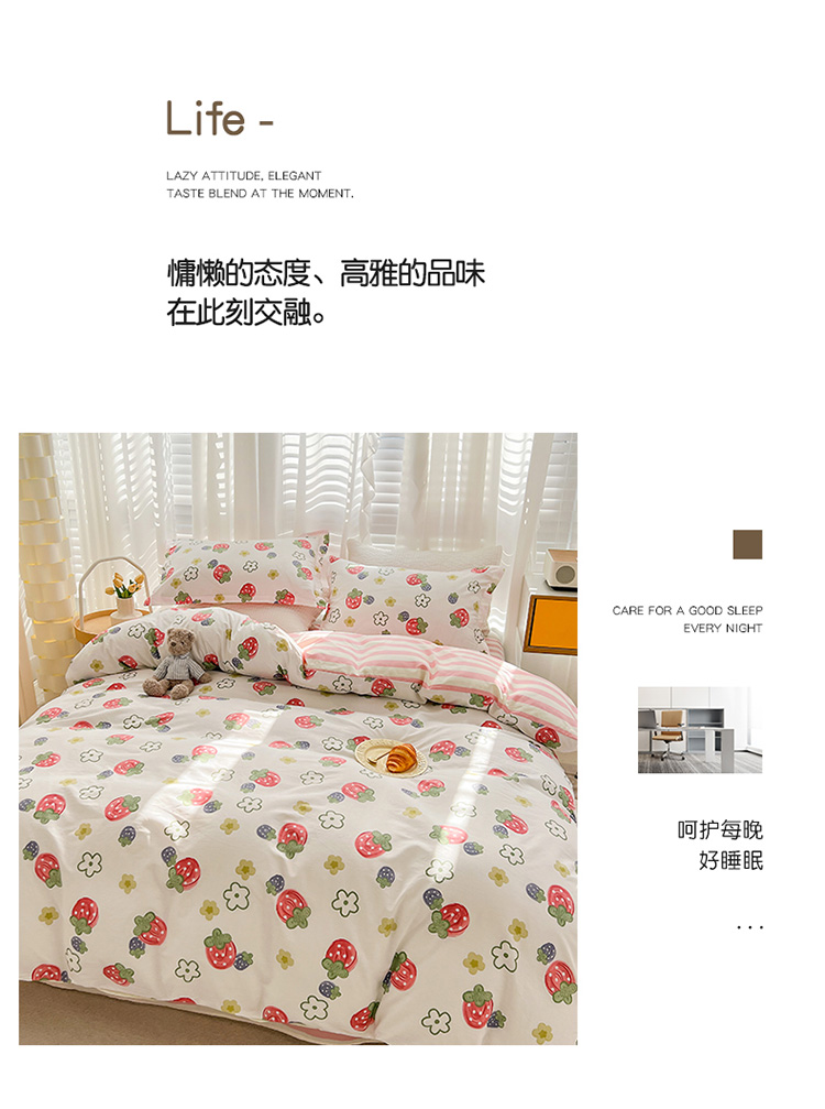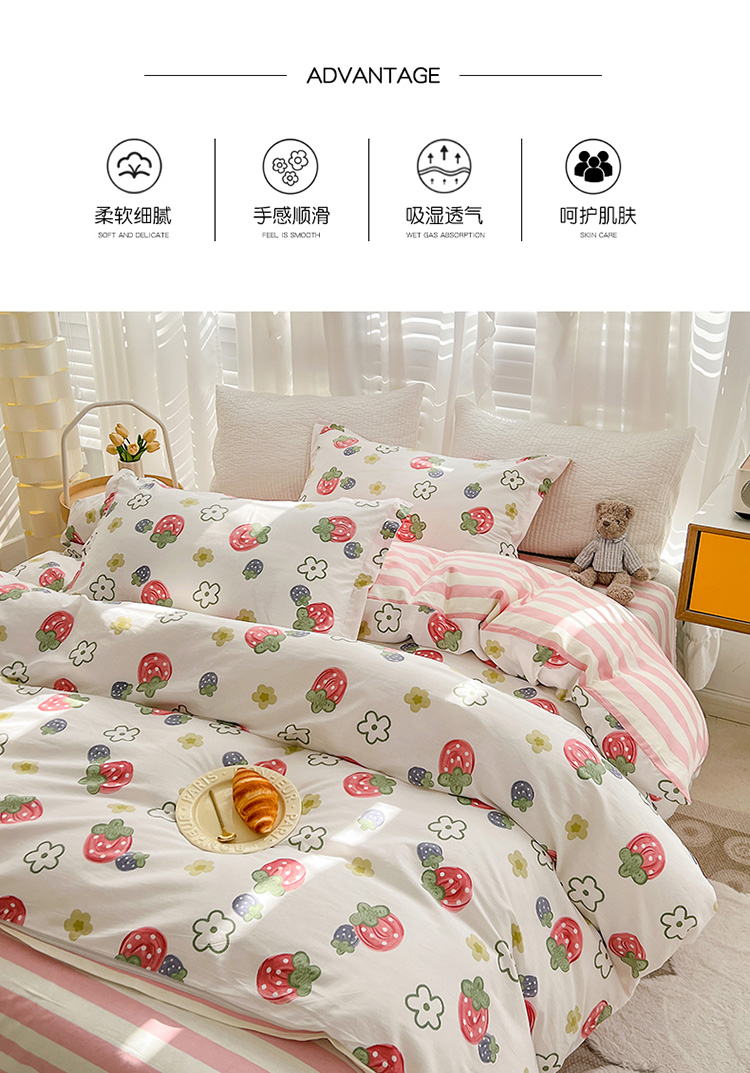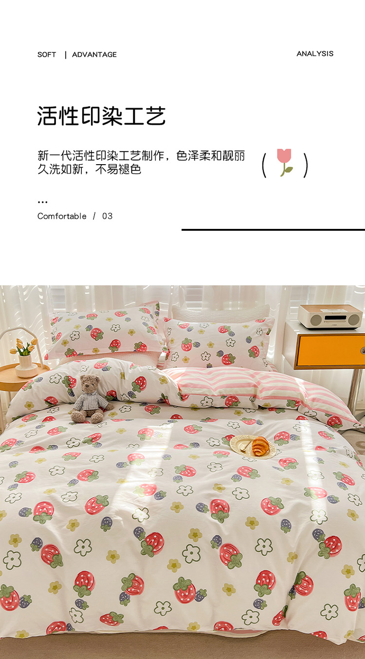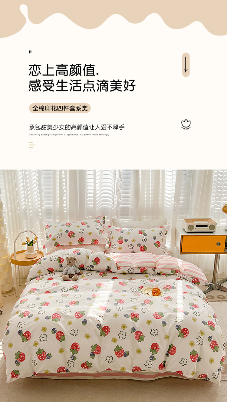 帛享家纺 高密全棉四件套BXQSX-34101单位(套) 草莓园 四件套(适合1.5/1.8m床使用)