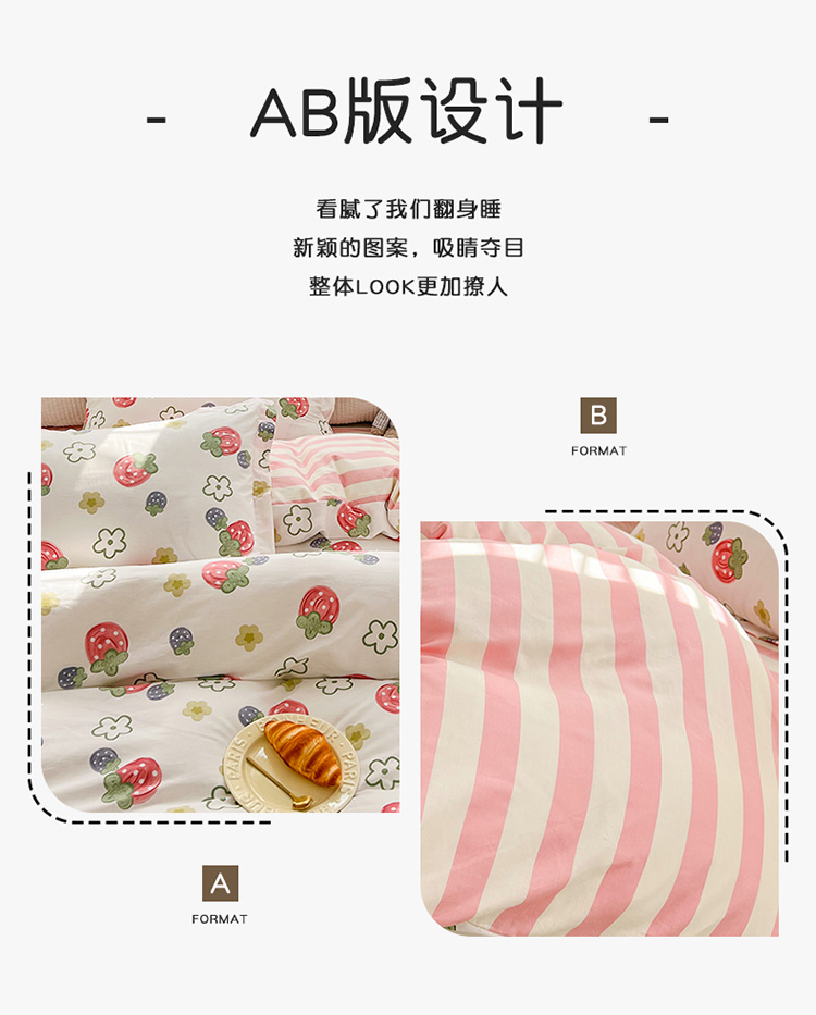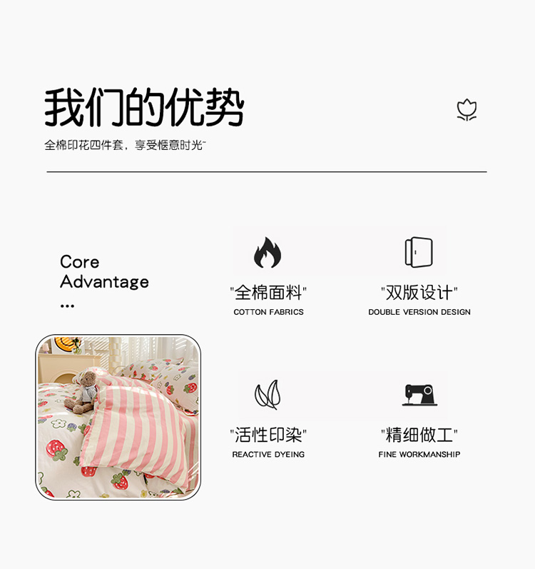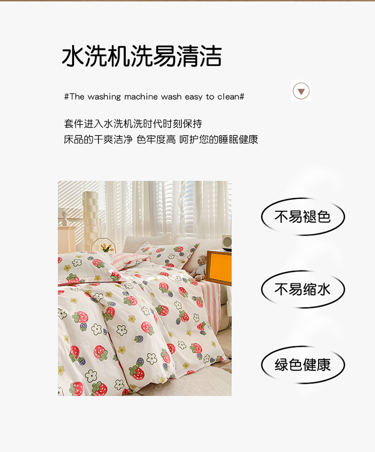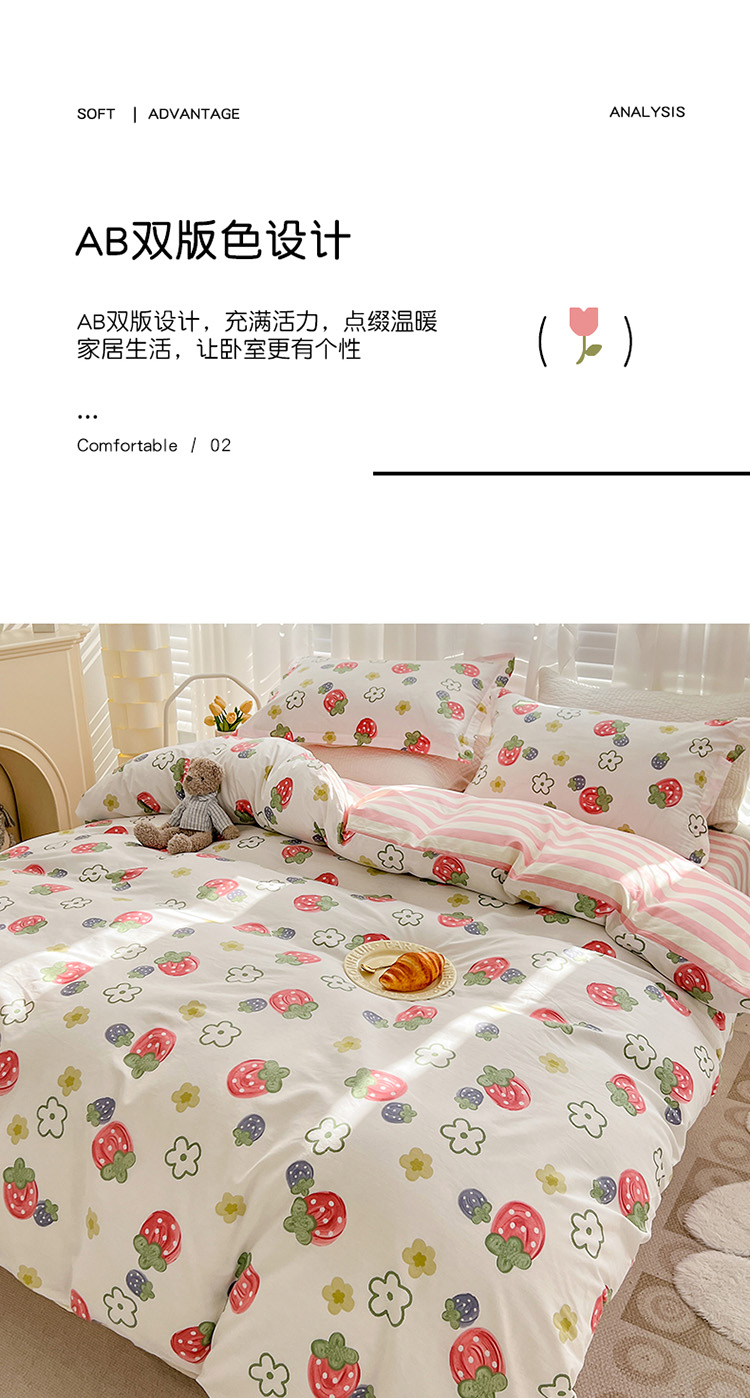 帛享家纺 高密全棉四件套BXQSX-34101单位(套) 草莓园 四件套(适合1.5/1.8m床使用)