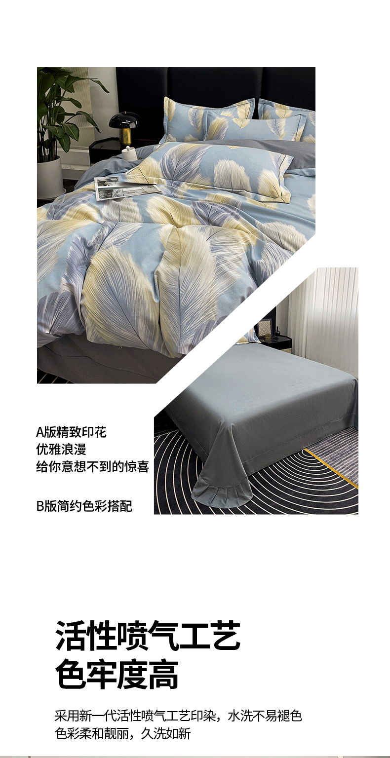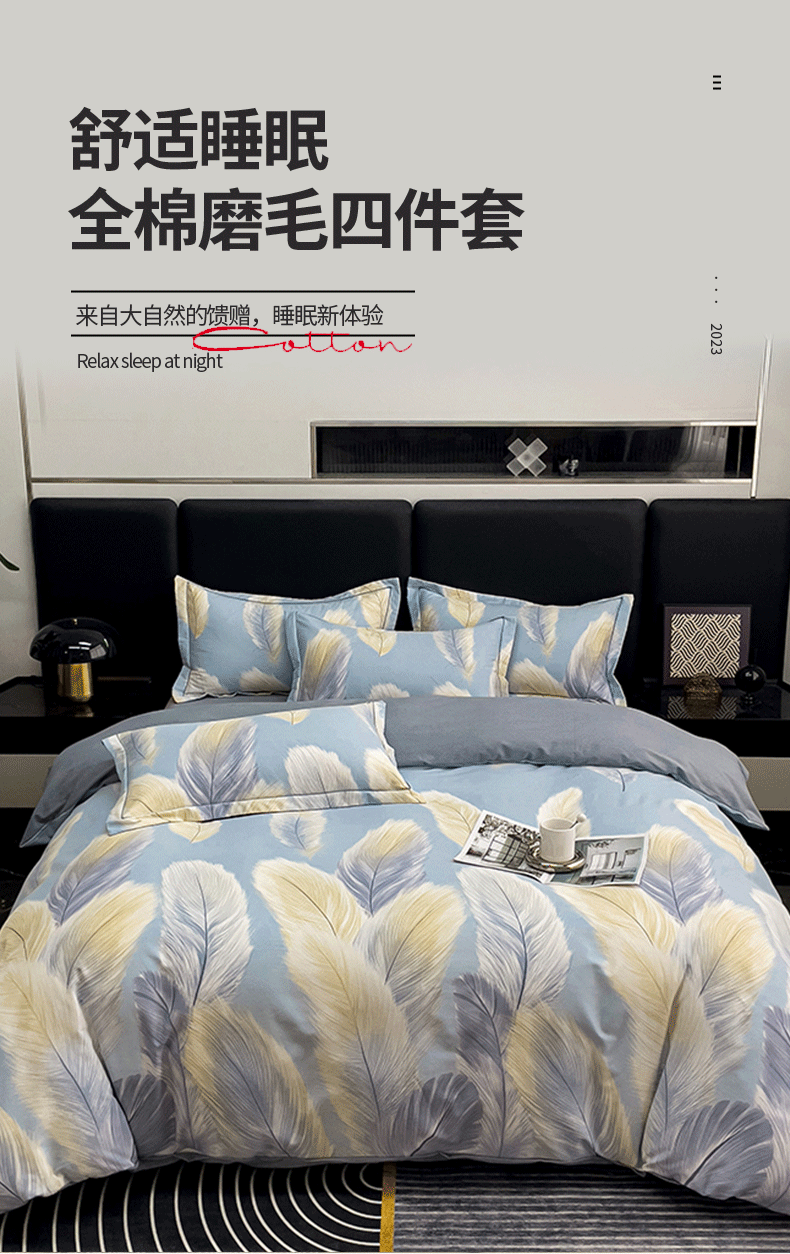 帛享家纺 全棉加厚磨毛四件套BXQME-31002单位(套) 香染-蓝 四件套(适合1.5/1.8米床使用)