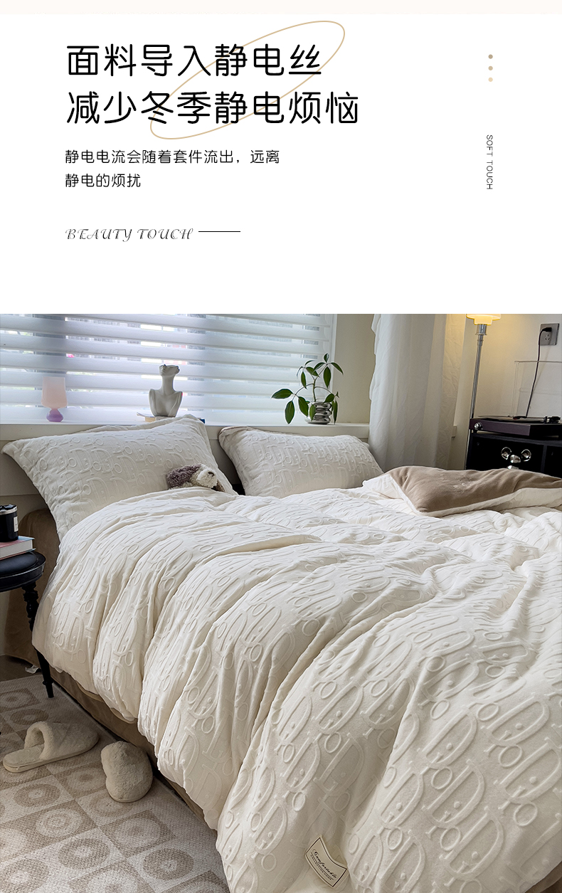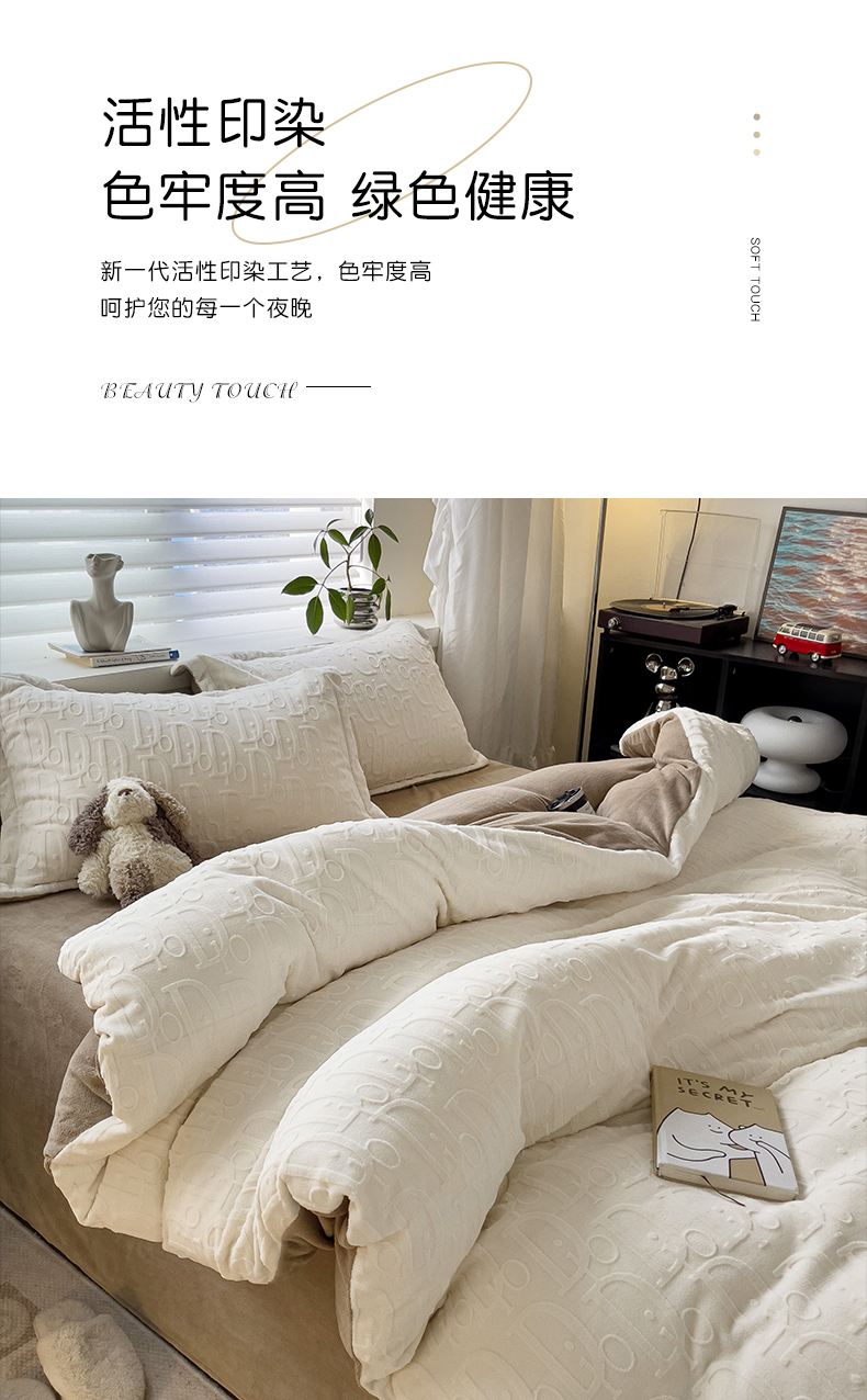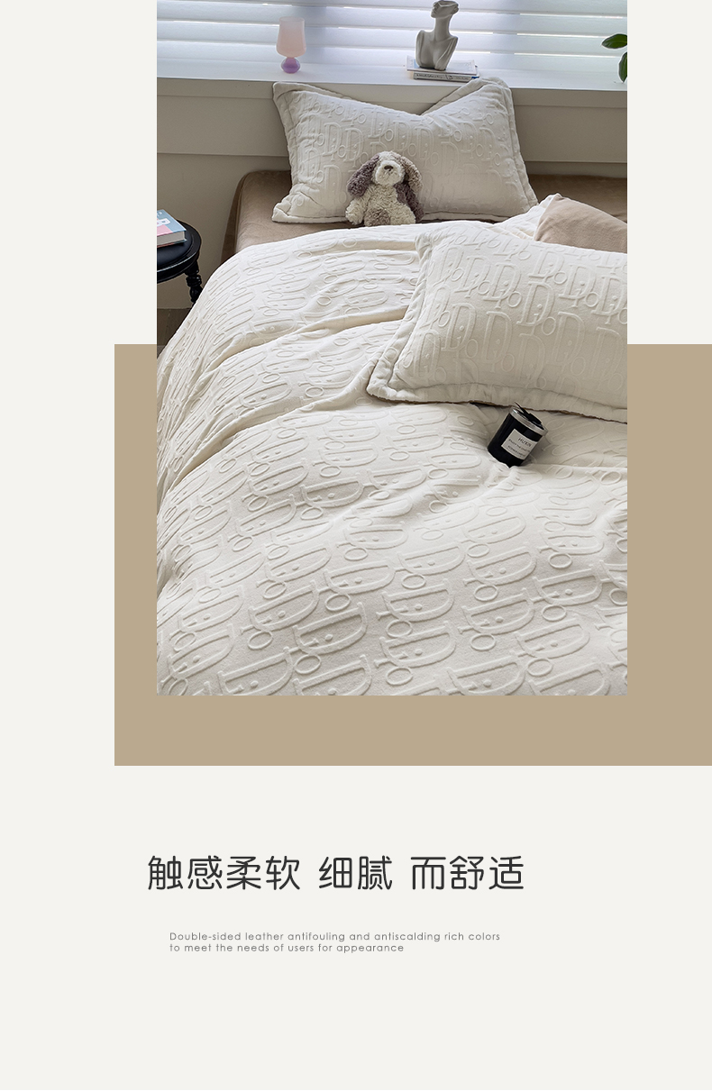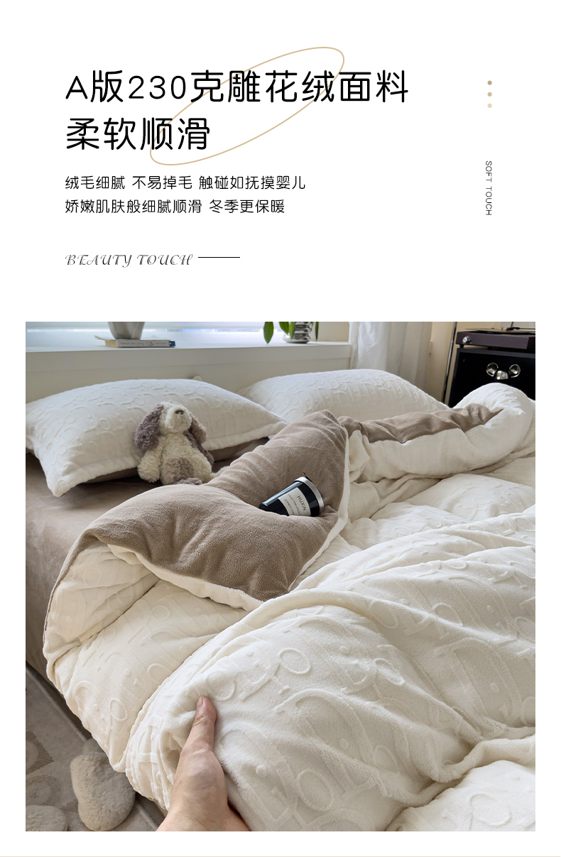 帛享家纺 雕花绒牛奶绒四件套 BXQSX-31251单位(套) 迪奥-白 四件套(适合1.5/1,8m床使用)