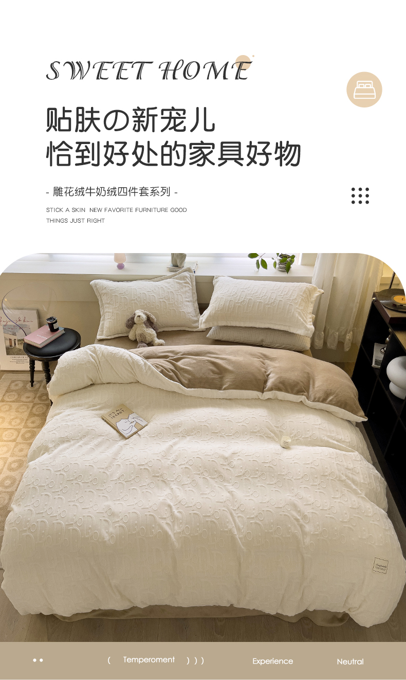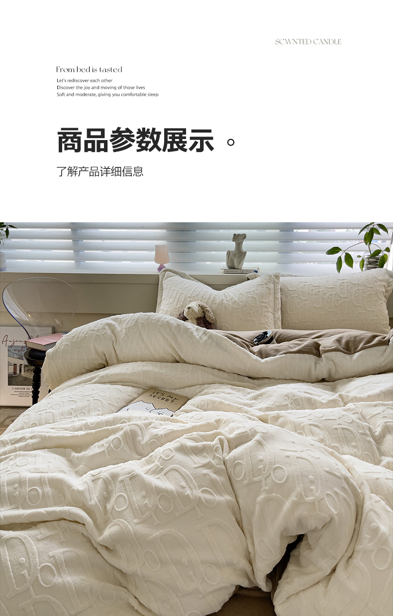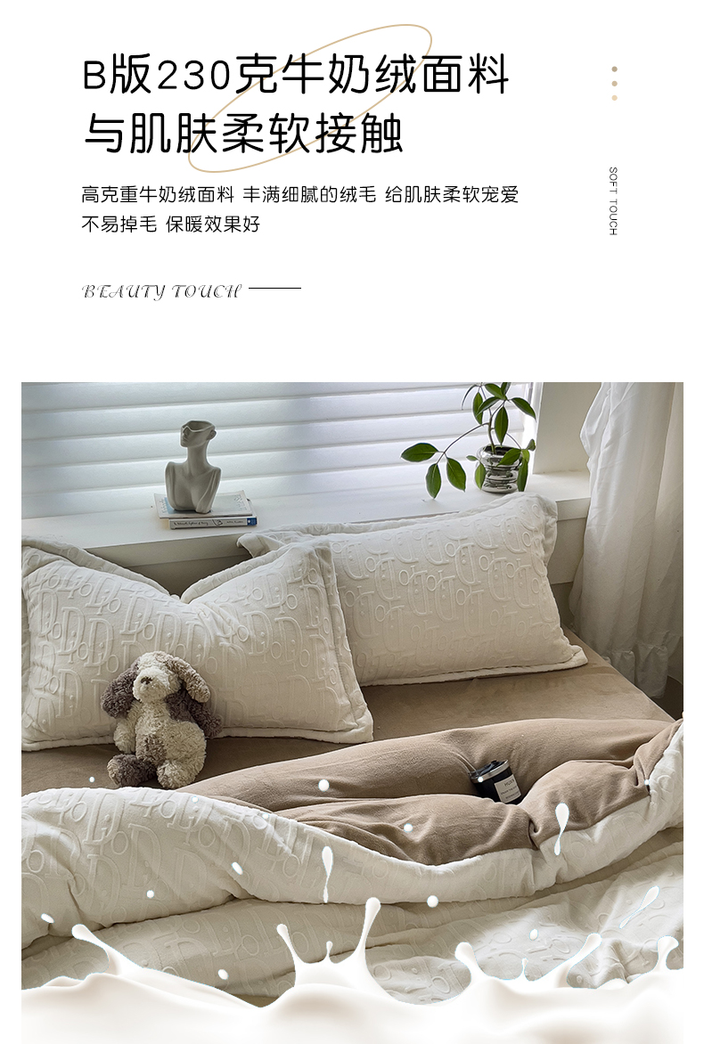 帛享家纺 雕花绒牛奶绒四件套 BXQSX-31251单位(套) 迪奥-白 四件套(适合1.5/1,8m床使用)