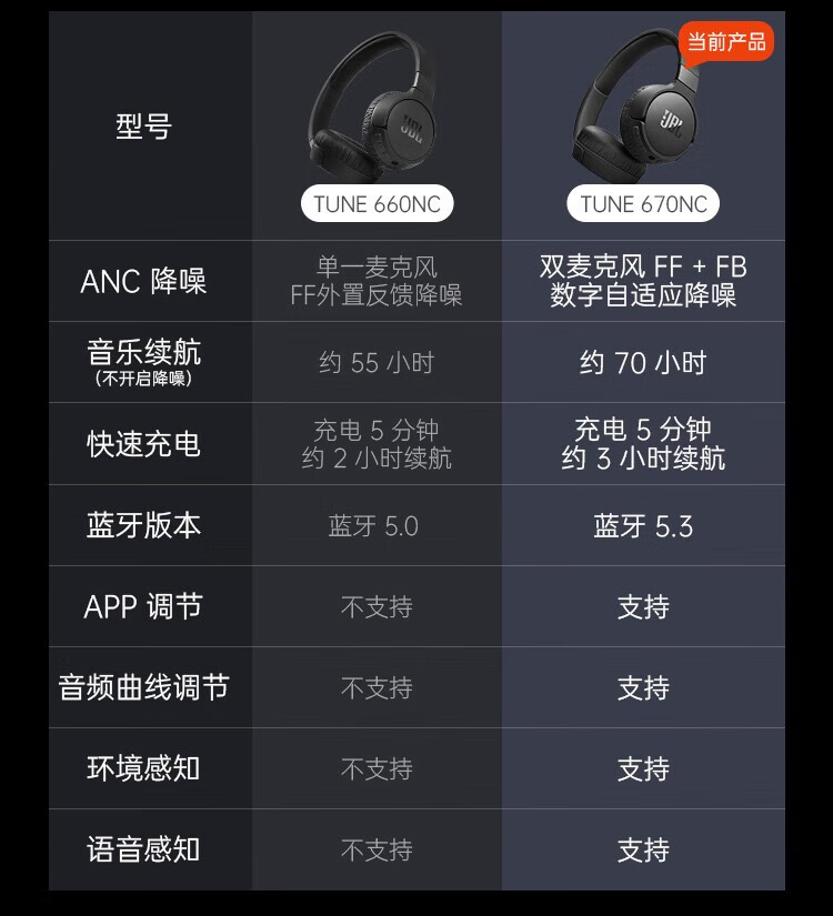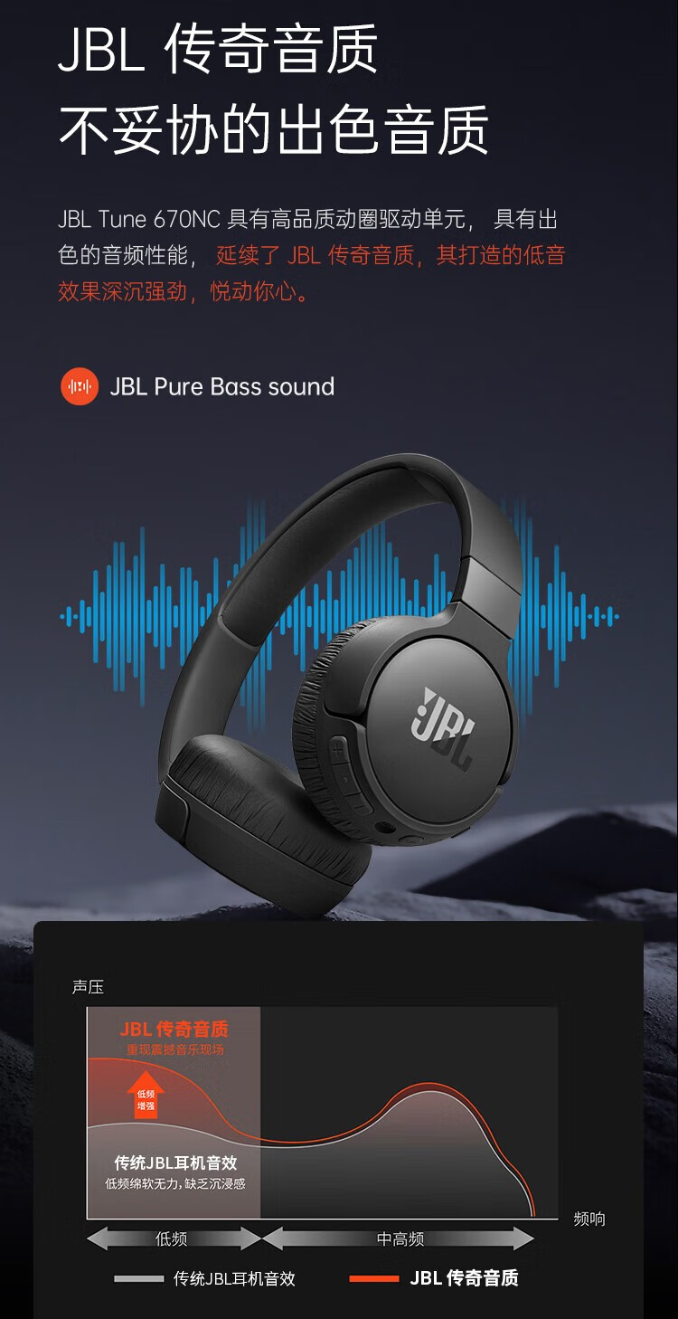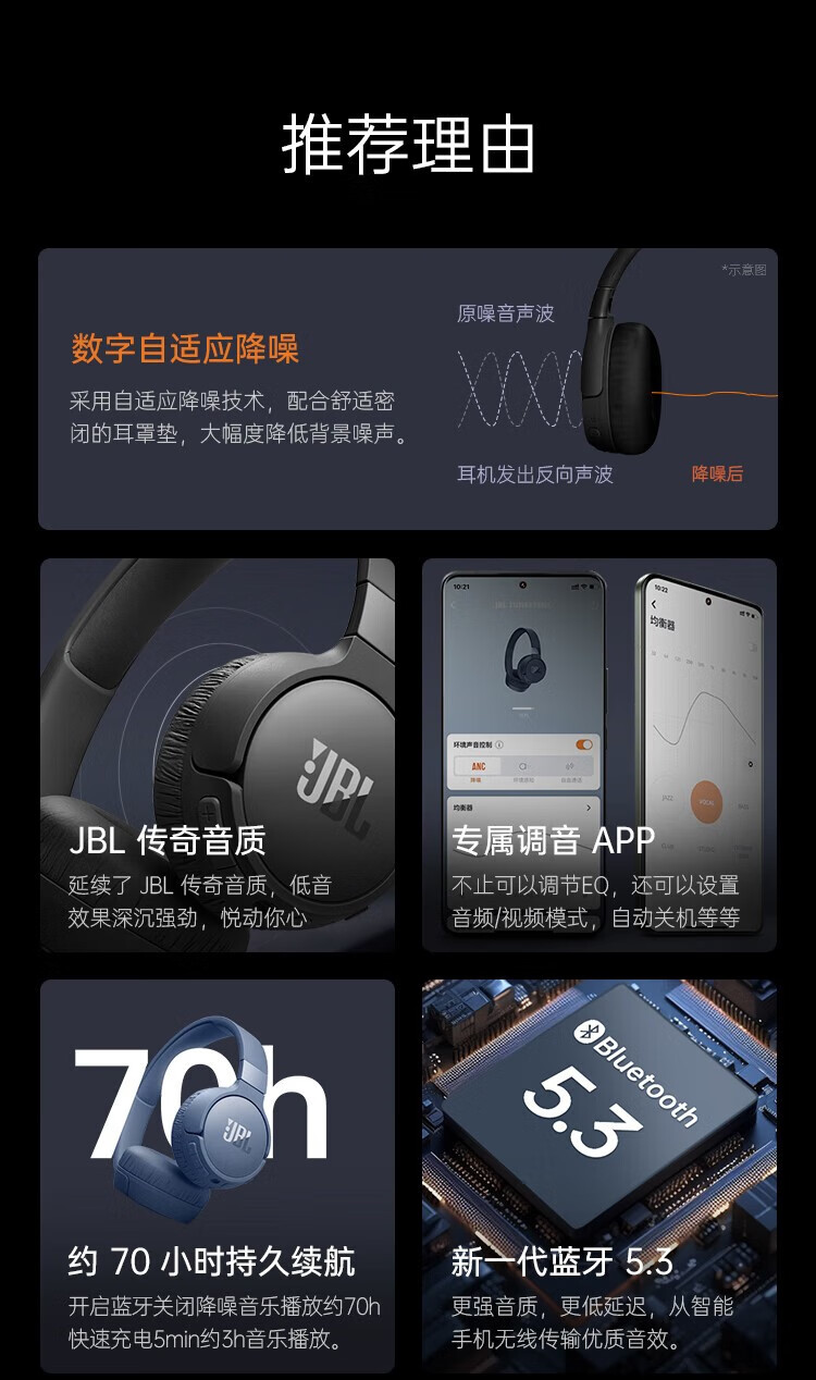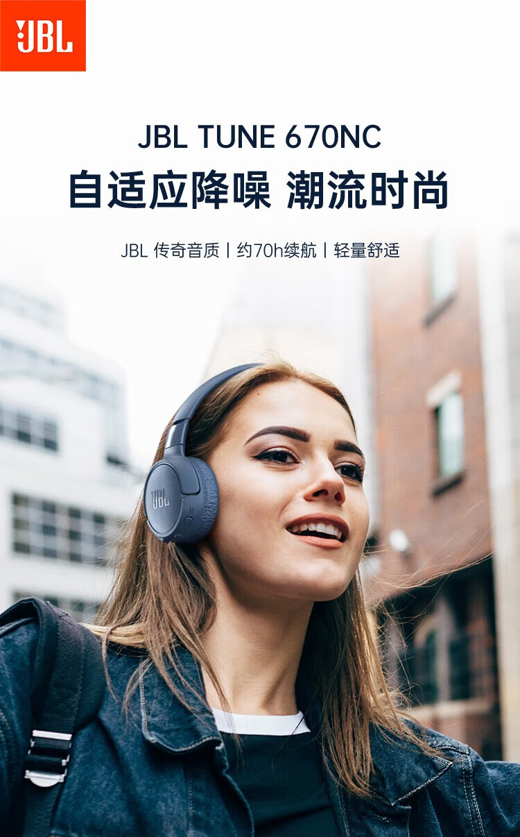 JBL TUNE670NC 头戴式数字降噪无线耳机 白色