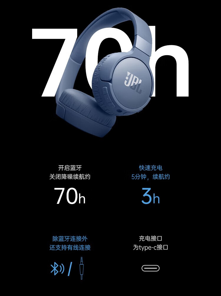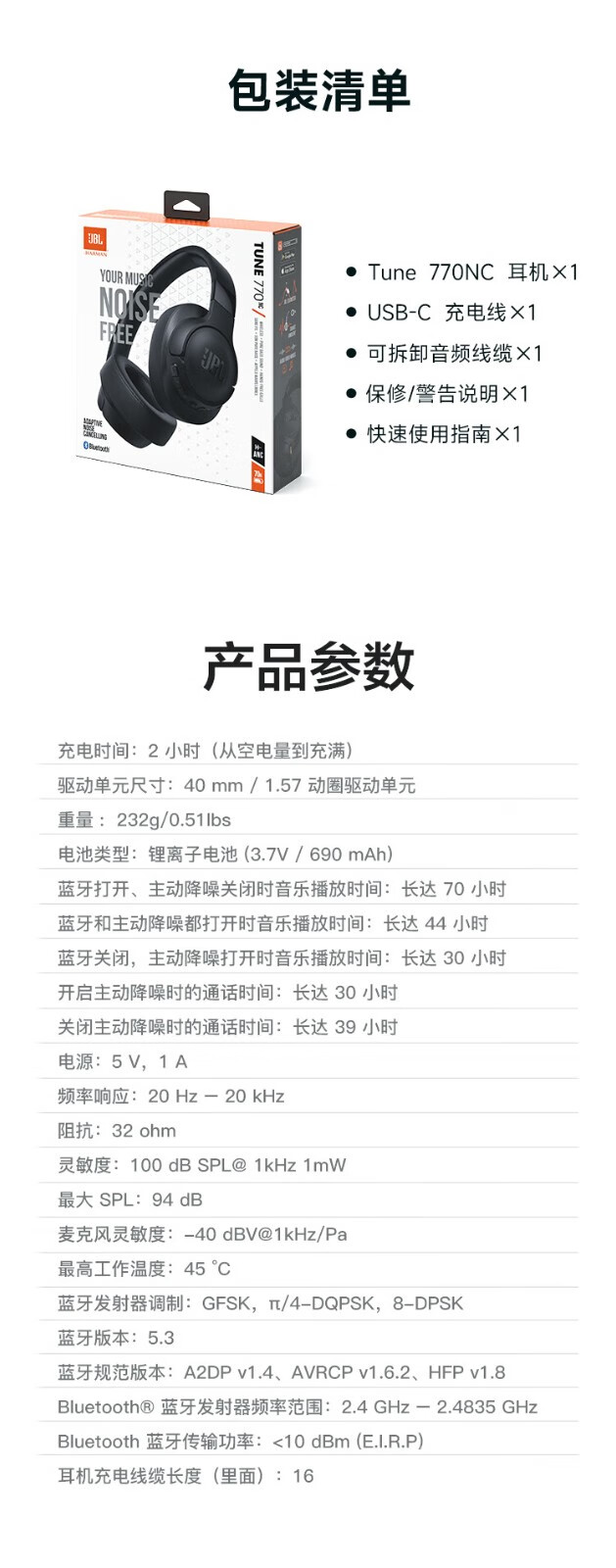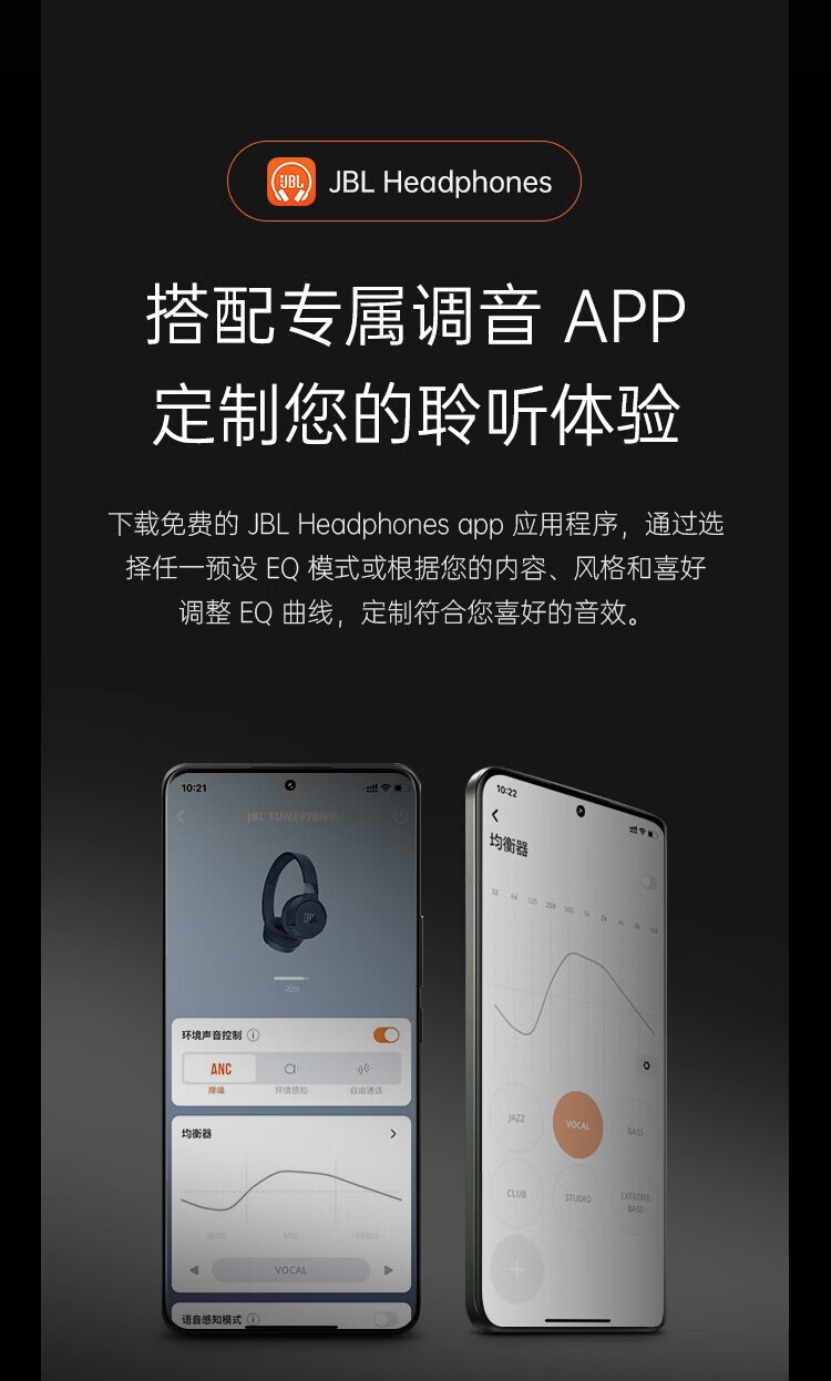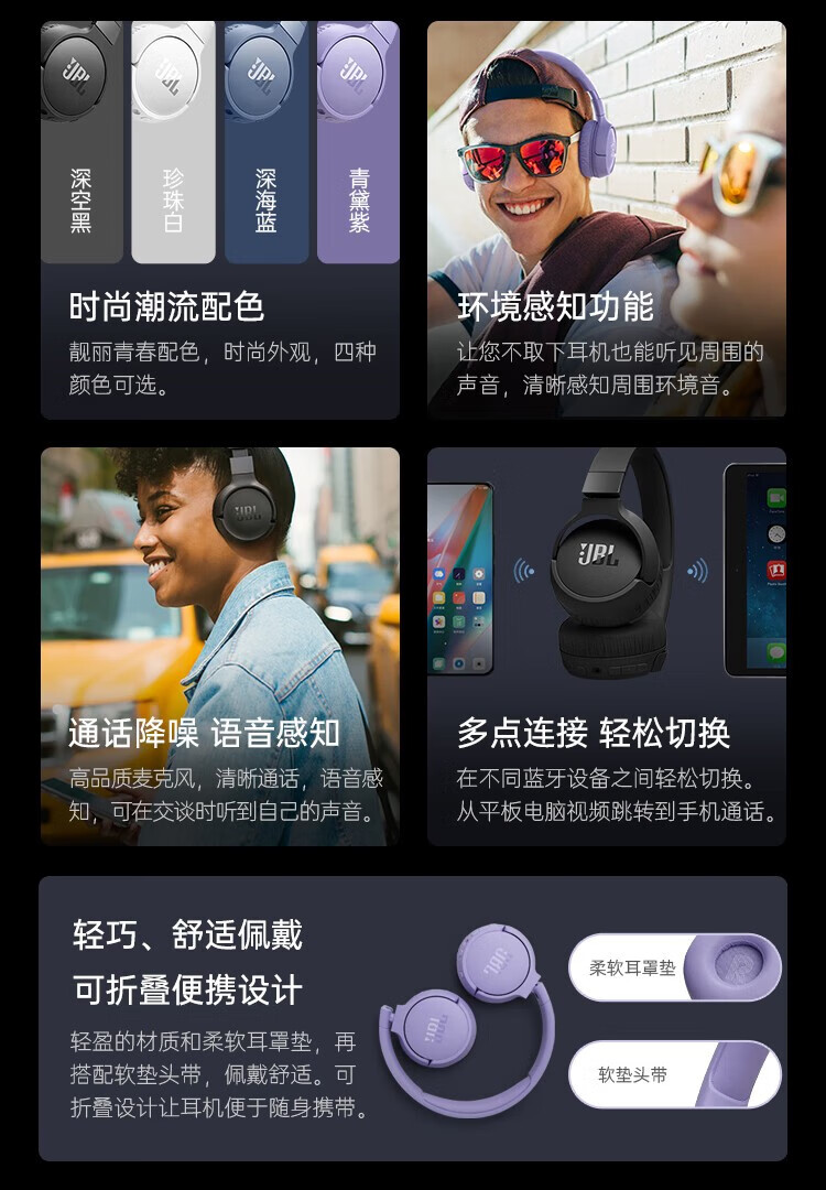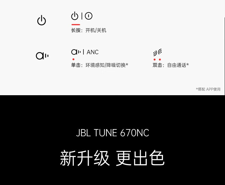 JBL TUNE670NC 头戴式数字降噪无线耳机 白色
