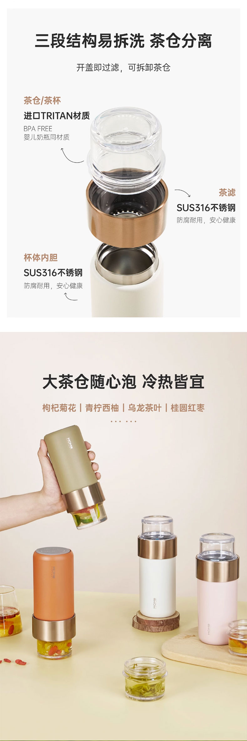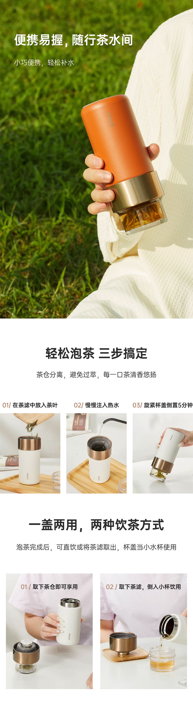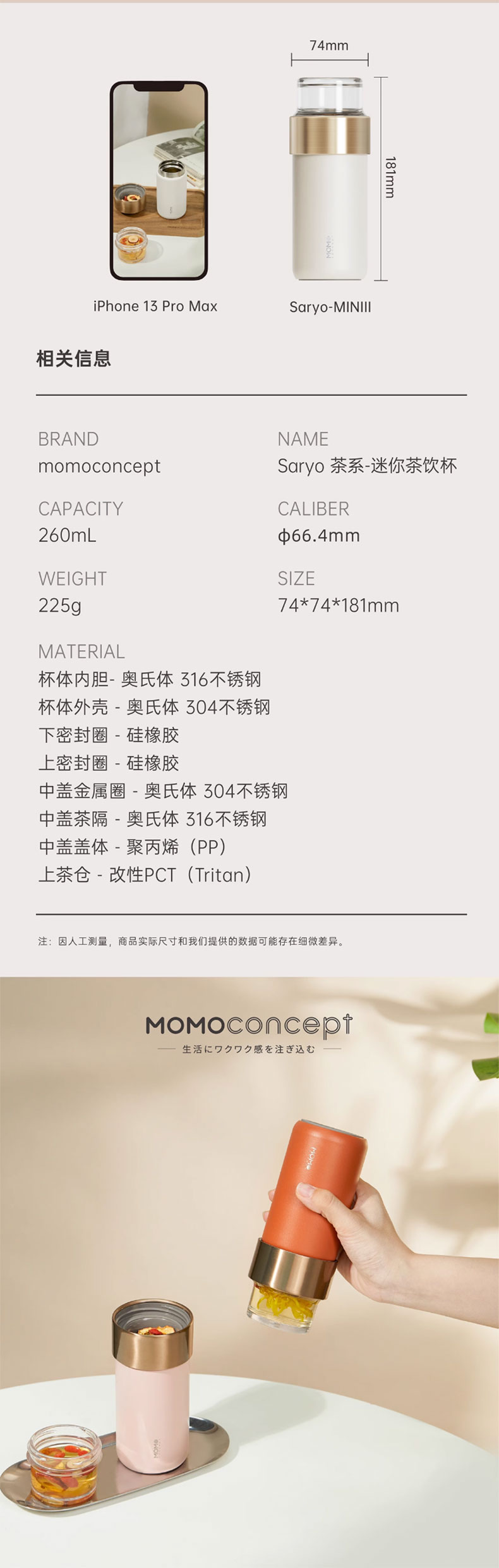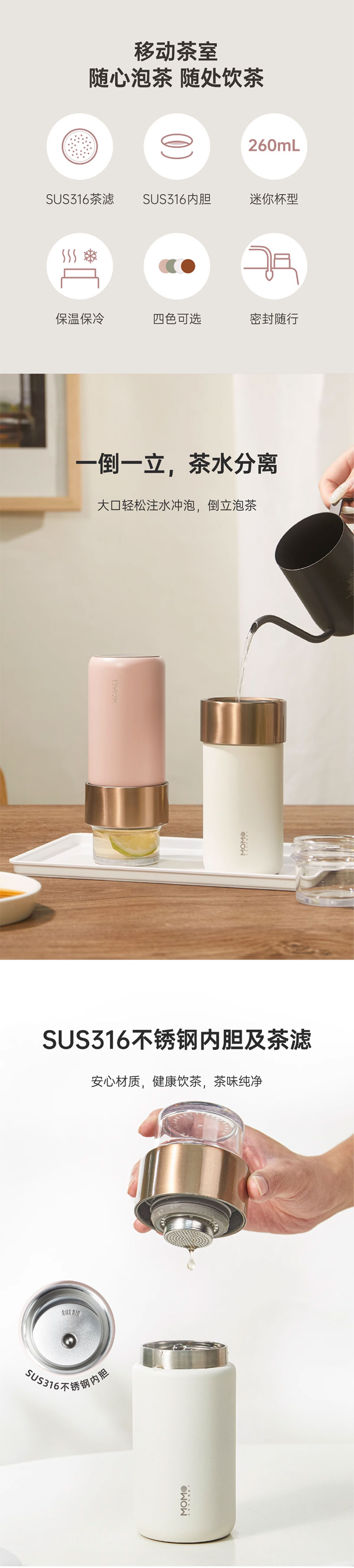 MOMOCONCEPT 茶水分离迷你保温杯女士高颜值Miniii迷你茶饮杯(单位:瓶) 桃子慕斯