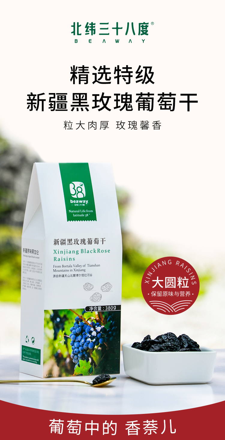 北纬三十八度 黑玫瑰葡萄干 380g 粒大肉厚果肉饱满 380g 混色(单位:盒)