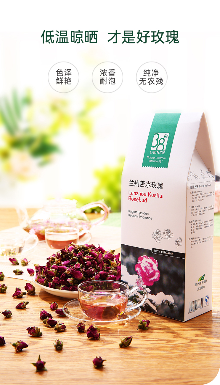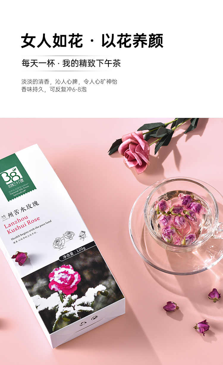 【Ole'超市同款】北纬三十八度丨兰州苦水玫瑰120g花蕾花茶耐泡沉香型单位:盒 白色