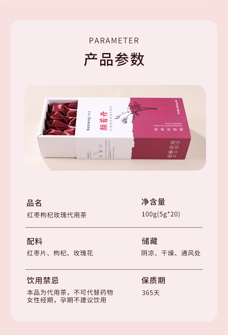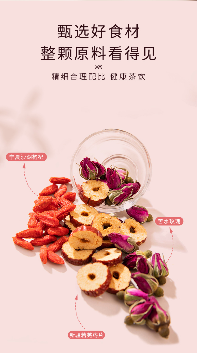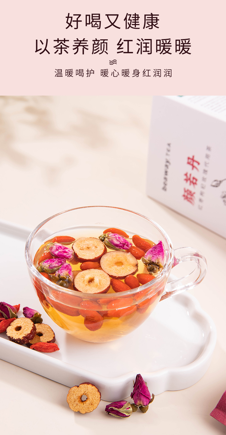 北纬三十八度 颜若丹|红枣枸杞玫瑰茶 5g*20 养生茶养颜茶耐泡无硫 白色(单位:盒)