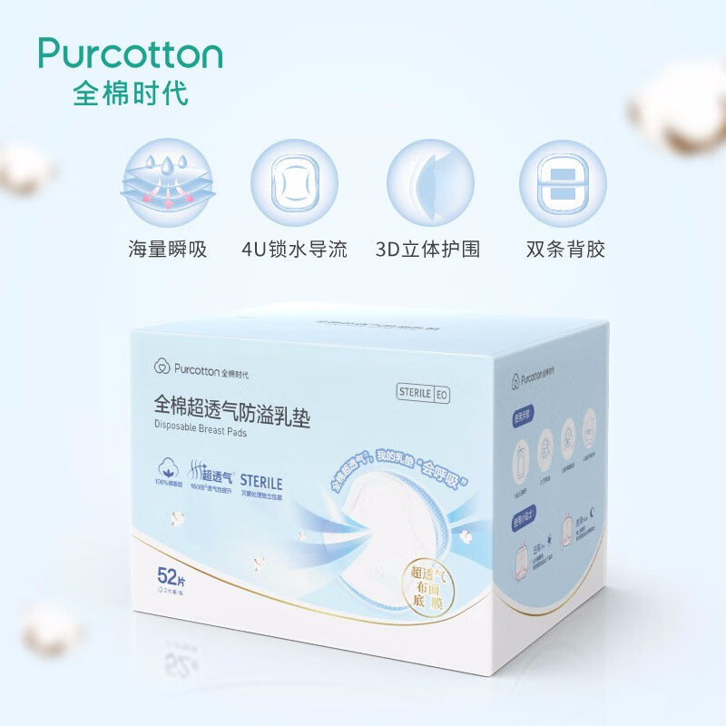 全棉时代超透气防溢乳垫12.5*12cm 52片/盒 白色