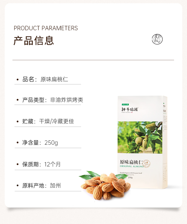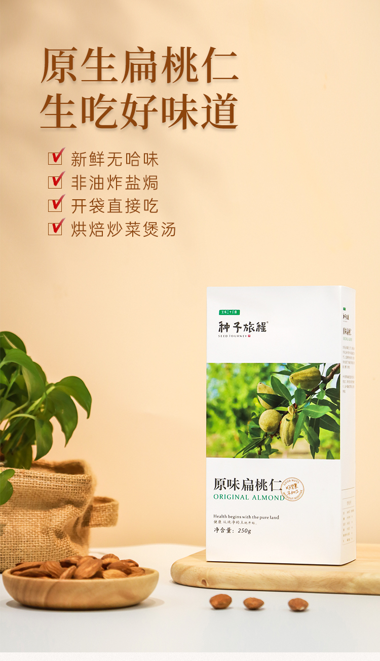 北纬三十八度 | 种子旅程原味扁桃仁 250g加州原生扁桃仁巴旦木无添加宝妈儿童健康休闲零食单位:盒