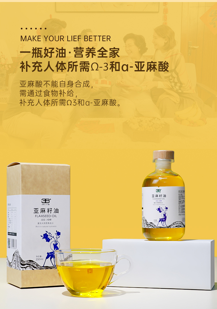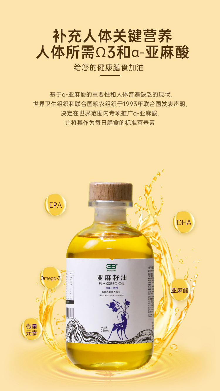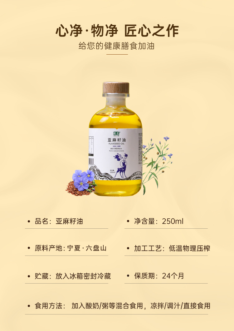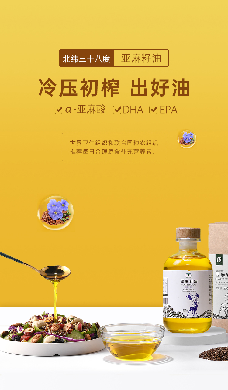 【Ole'超市同款】北纬三十八度 | 丝路古稻亚麻籽油(冷压初榨)250ml单位:瓶 琥珀色