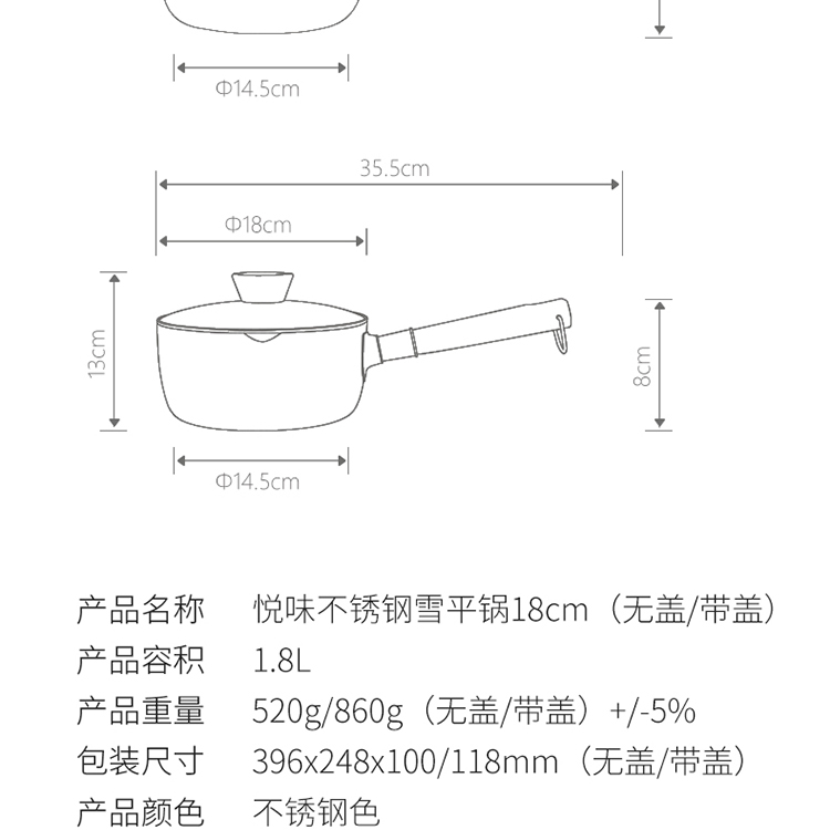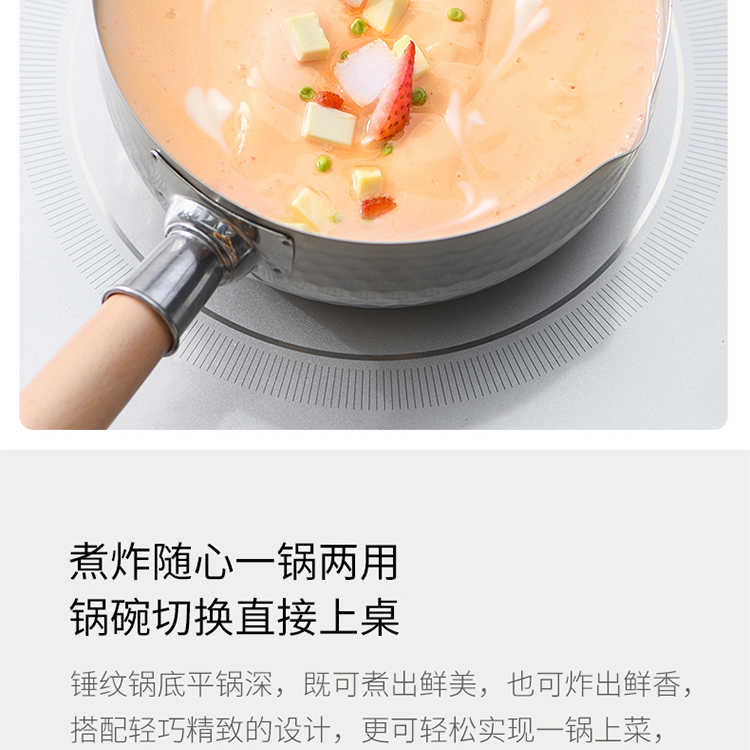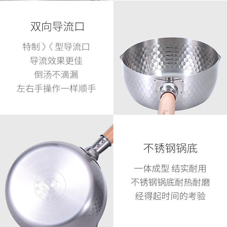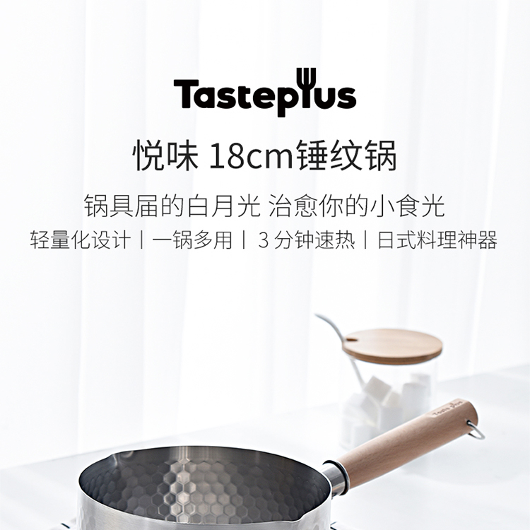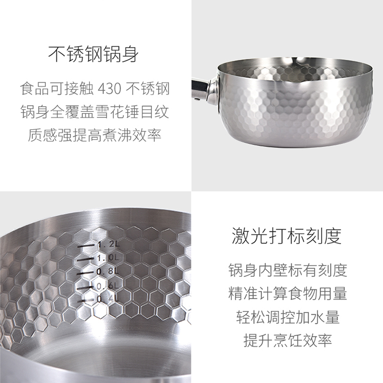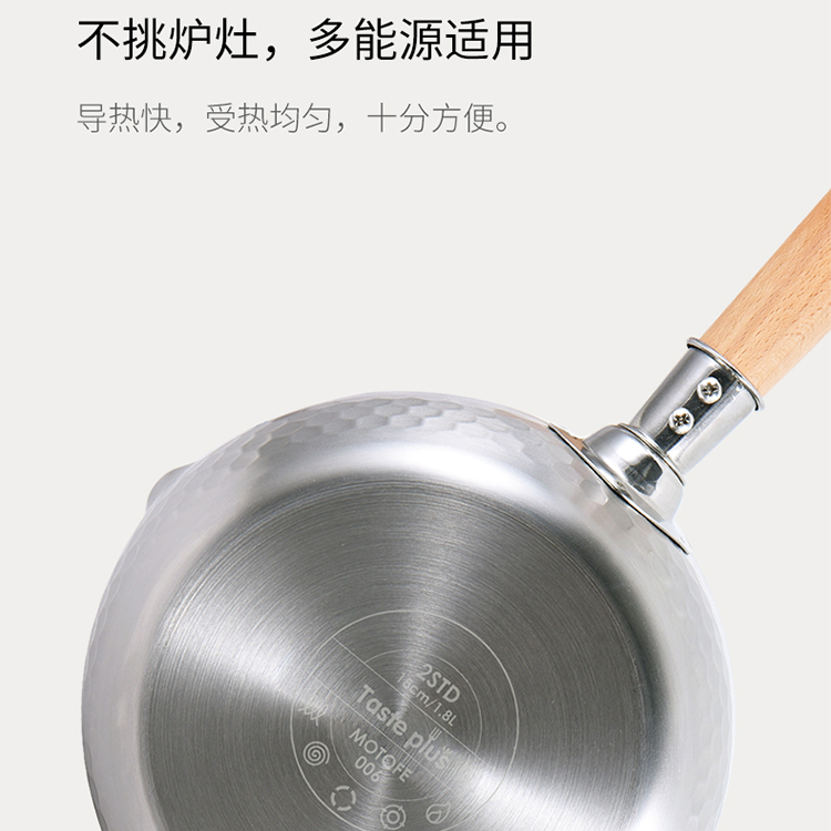 悦味(Taste plus)日式雪平锤纹奶锅不锈钢小奶锅煮面汤锅泡面锅18CM 奶锅(单位:个) 不锈钢
