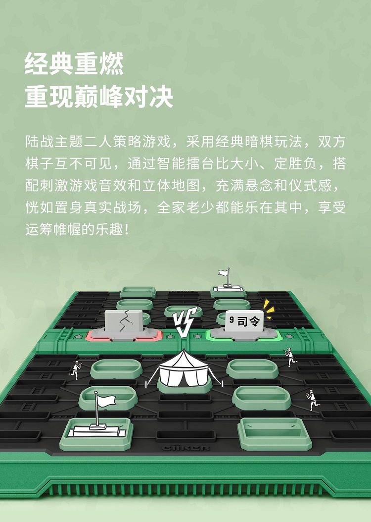 计客智能军棋军旗电子裁判圣诞节礼物儿童自动智能陆战棋类玩具男孩 单位(套) 军绿色