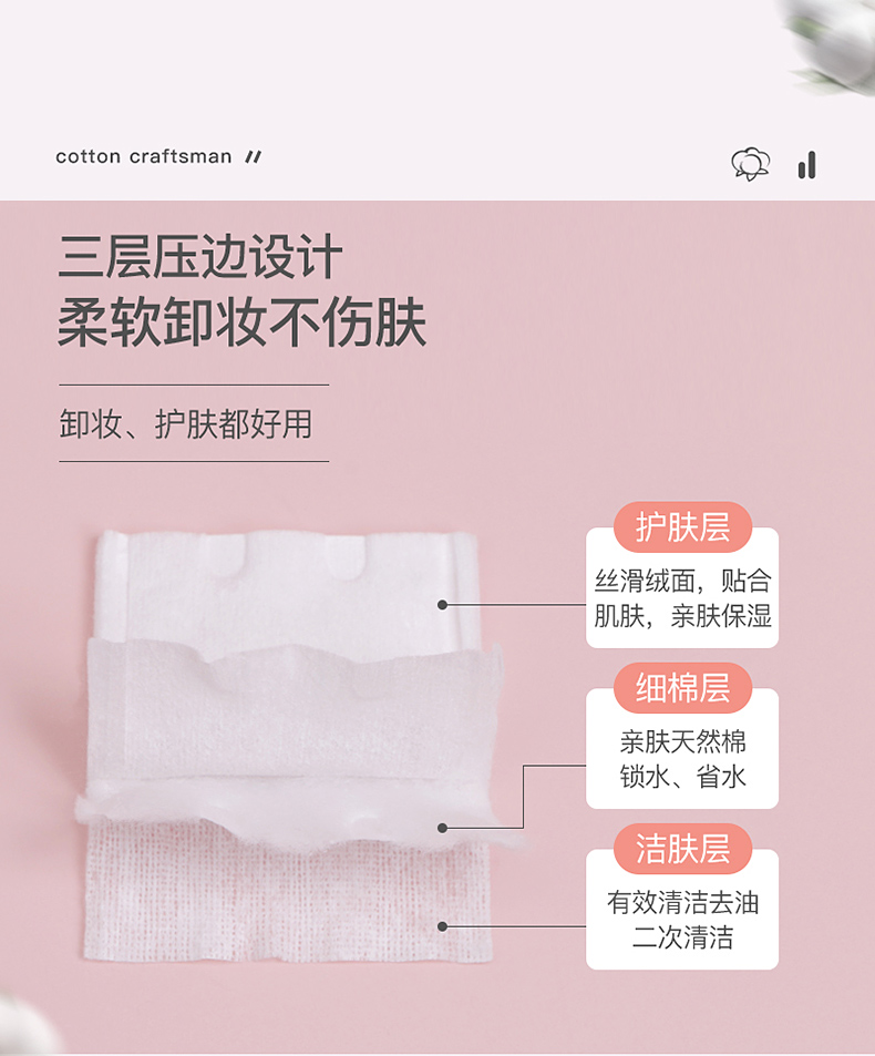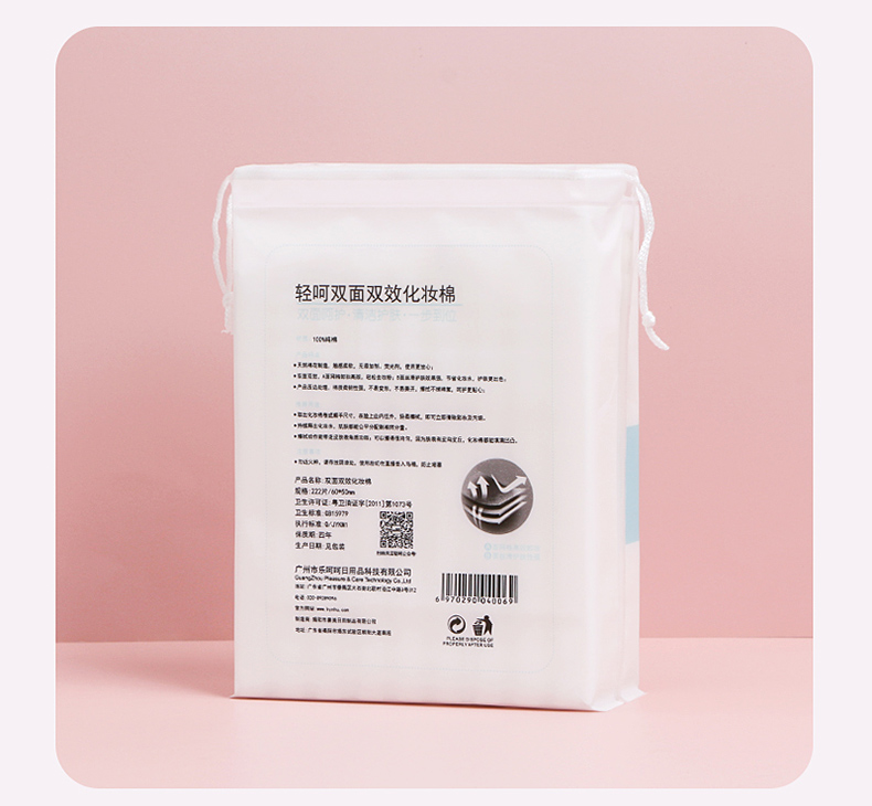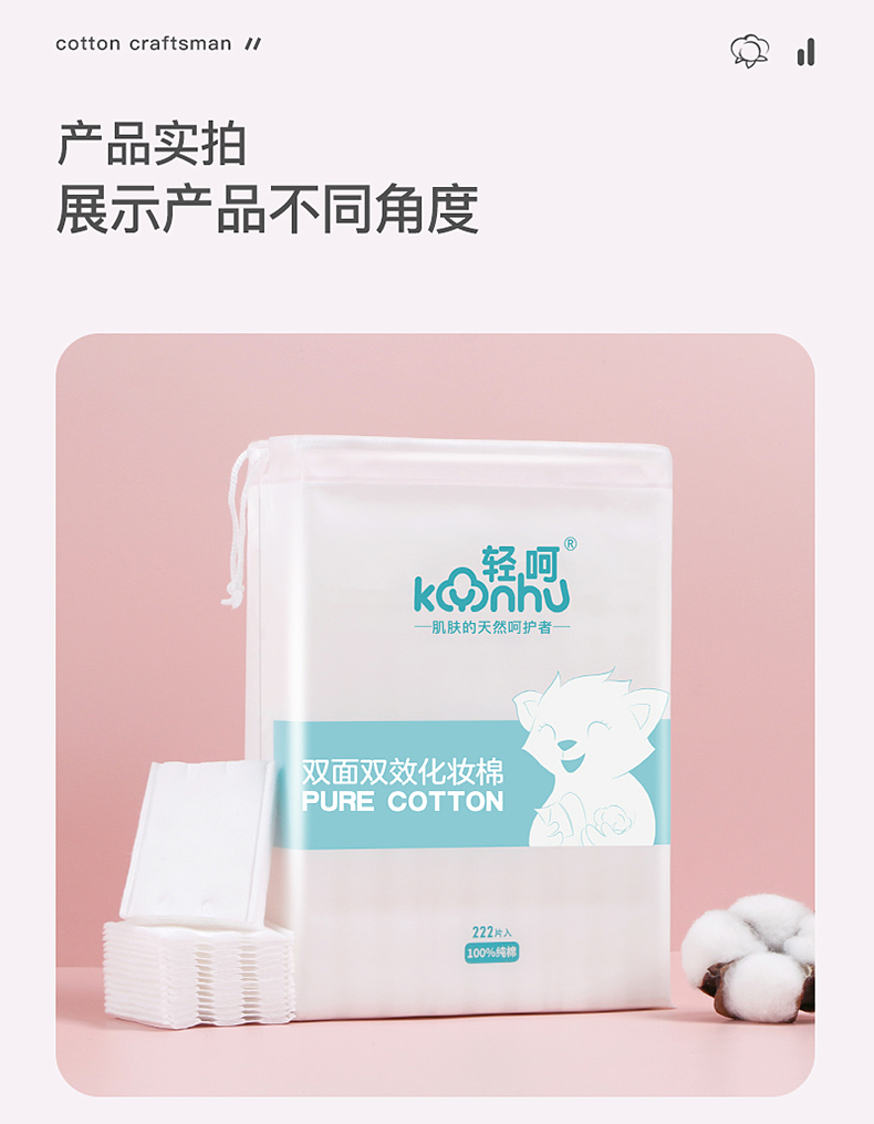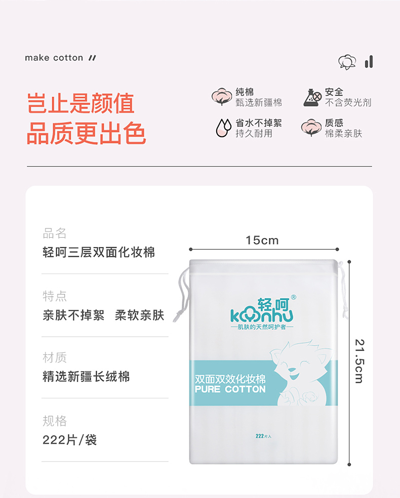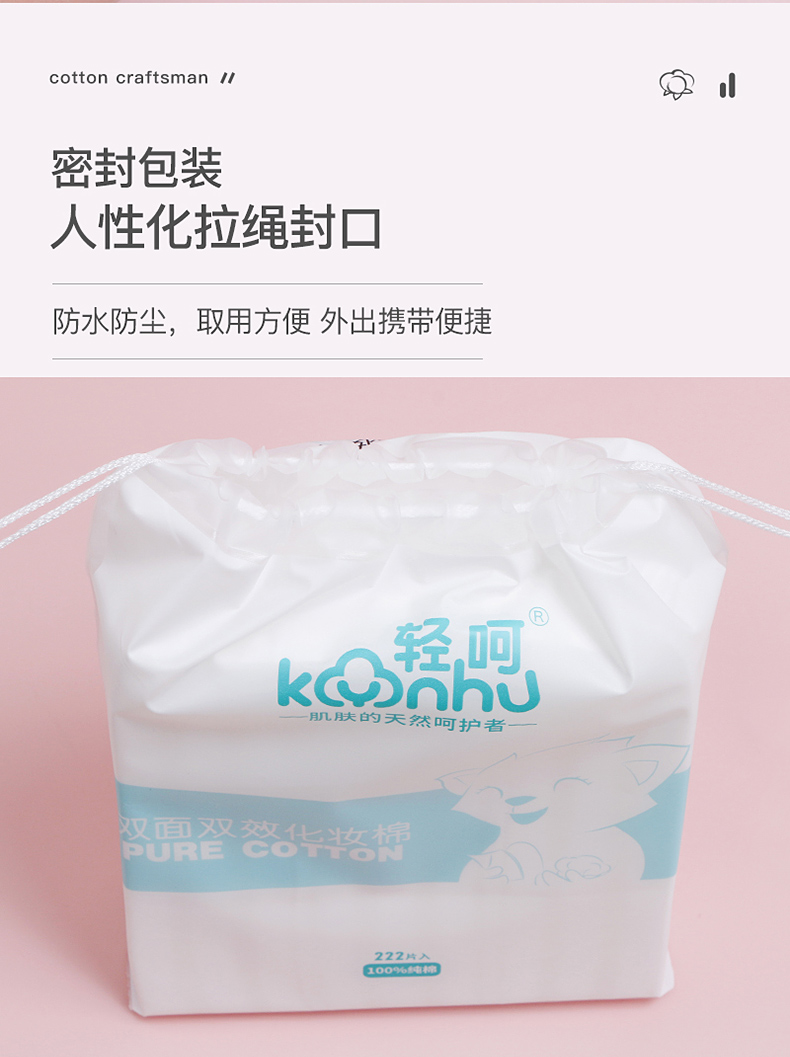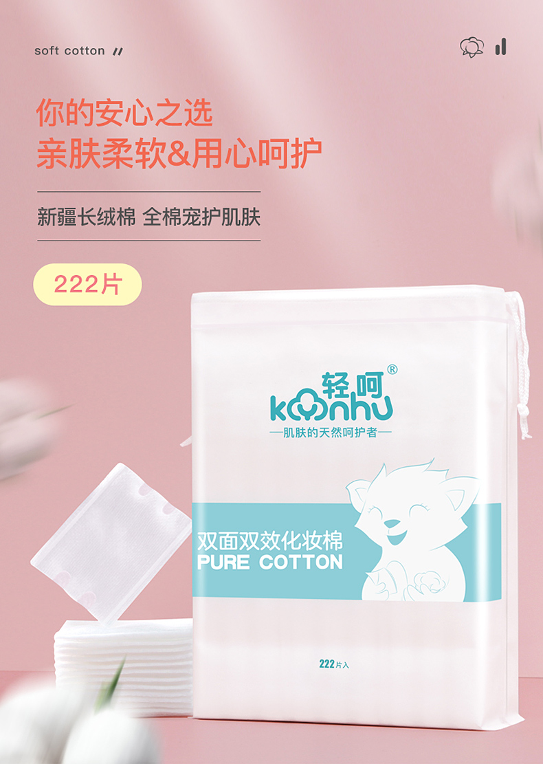 轻呵双面双效化妆棉-222片,厚款,100% 纯棉 HZ-222-D 单位:袋 白色