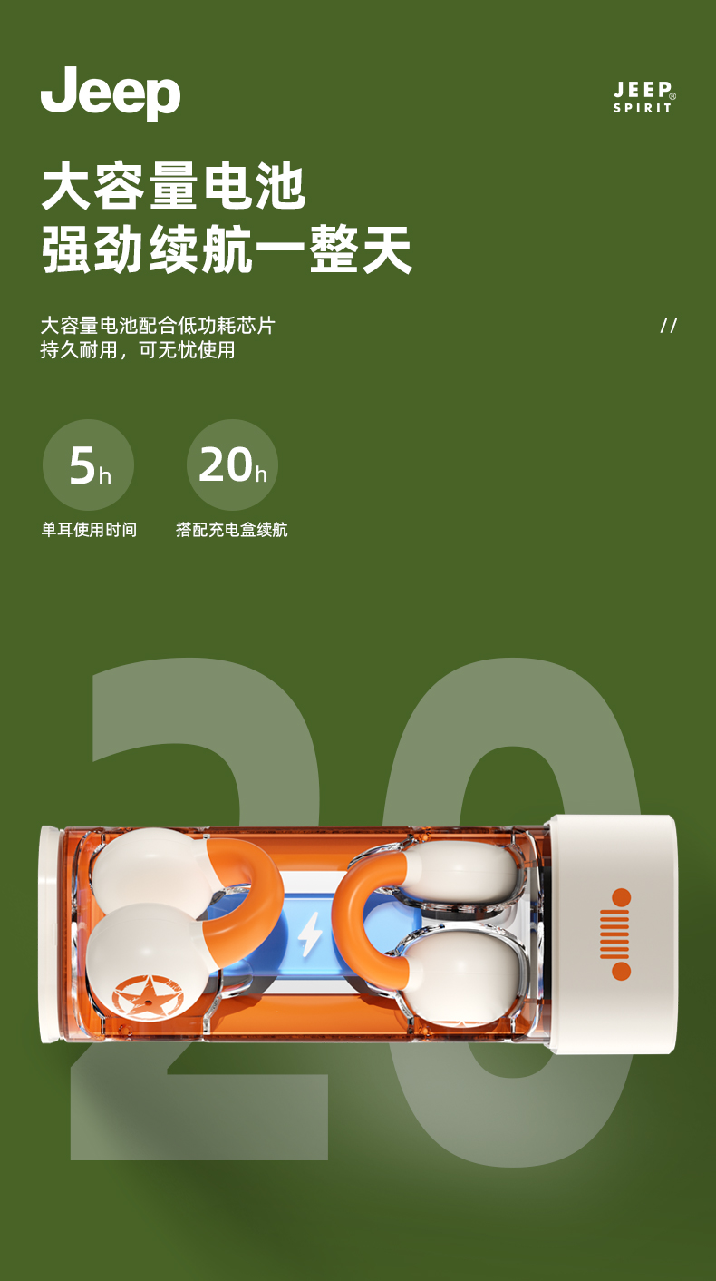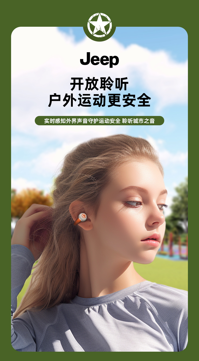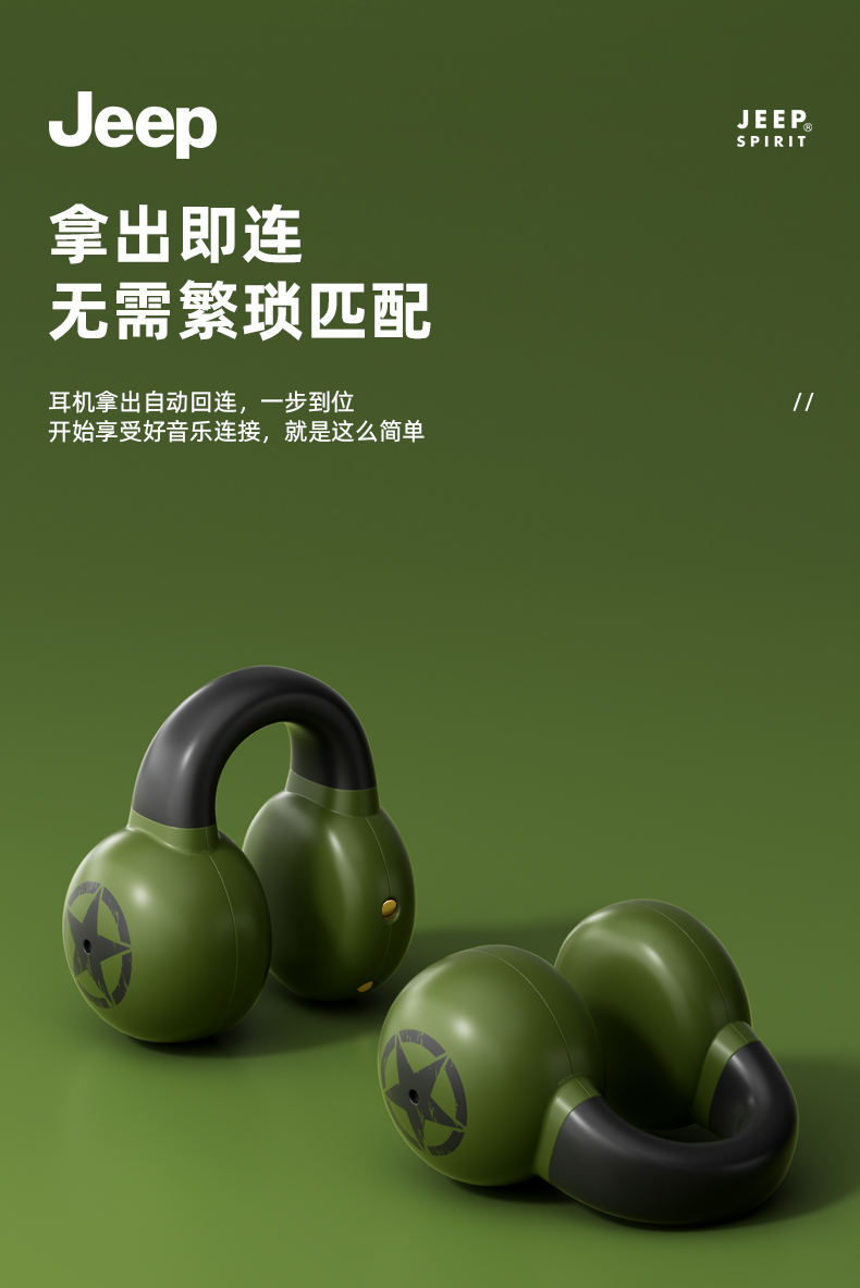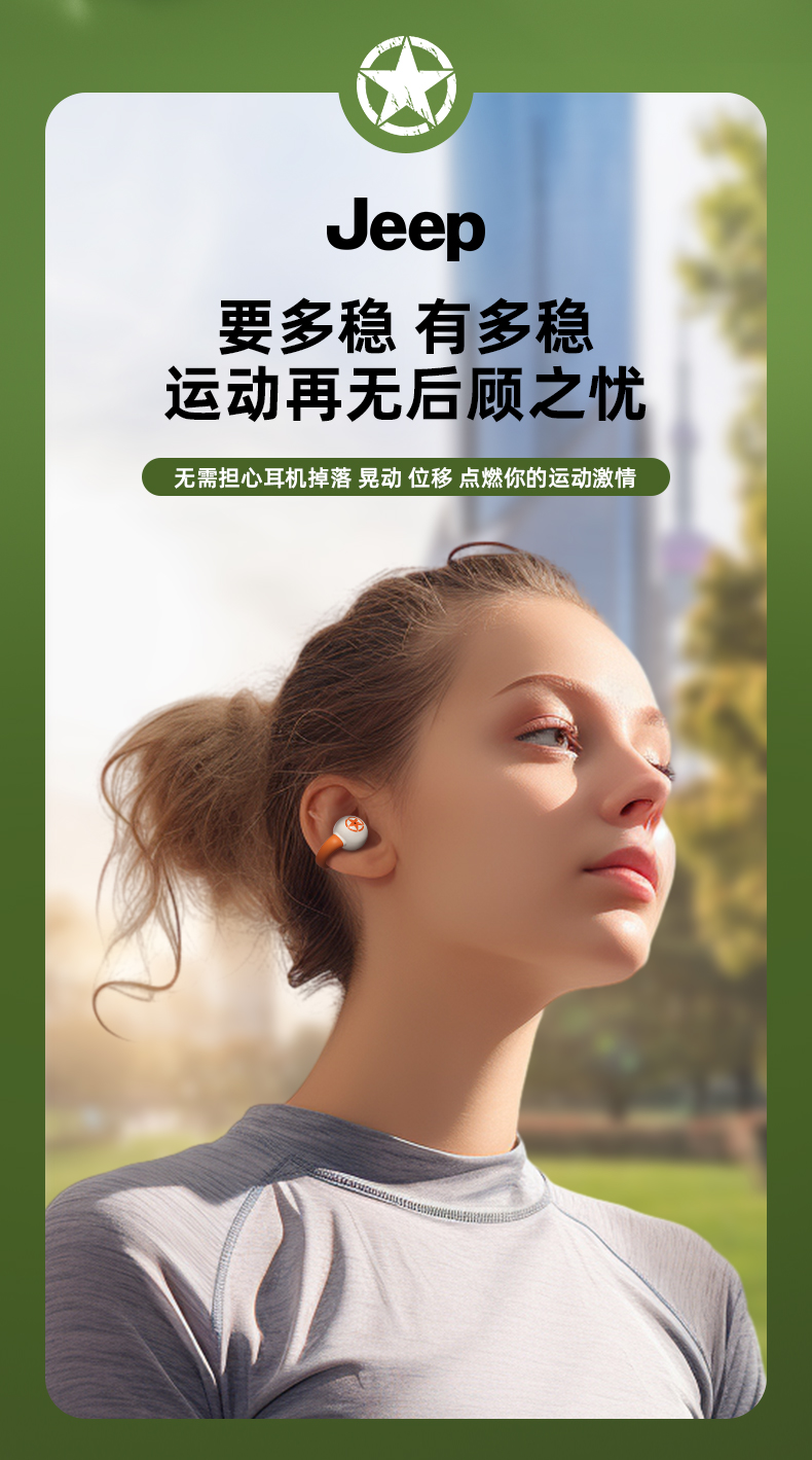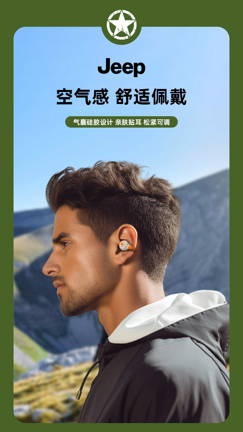 Jeep蓝牙耳机 骨传导概念耳夹式无线开放不入耳 运动跑步骑行通话降噪 适用于苹果华为小米 单位:副 橙色