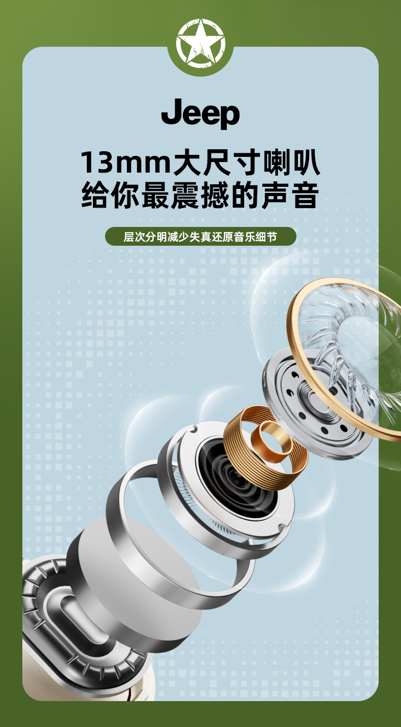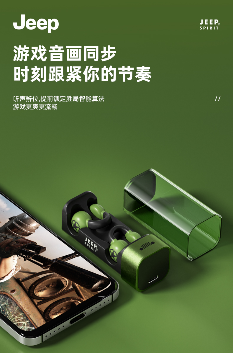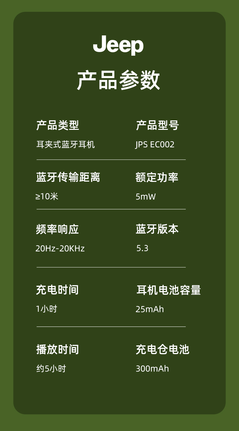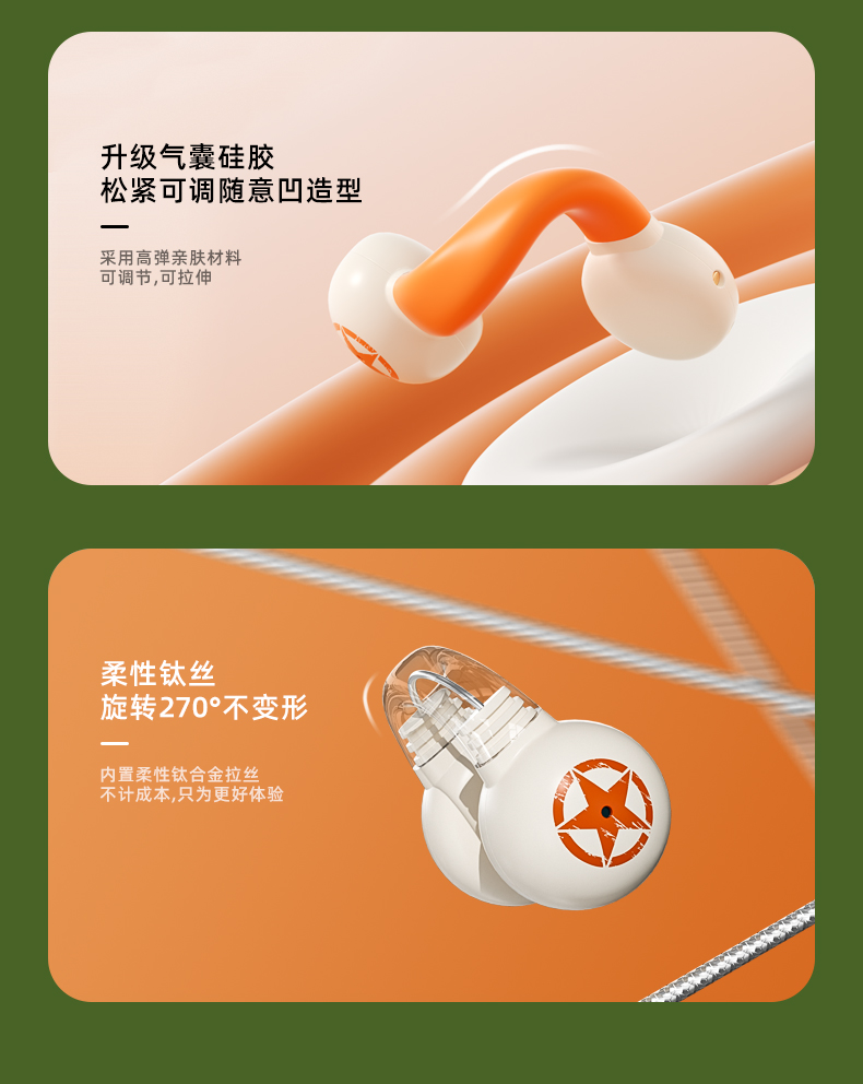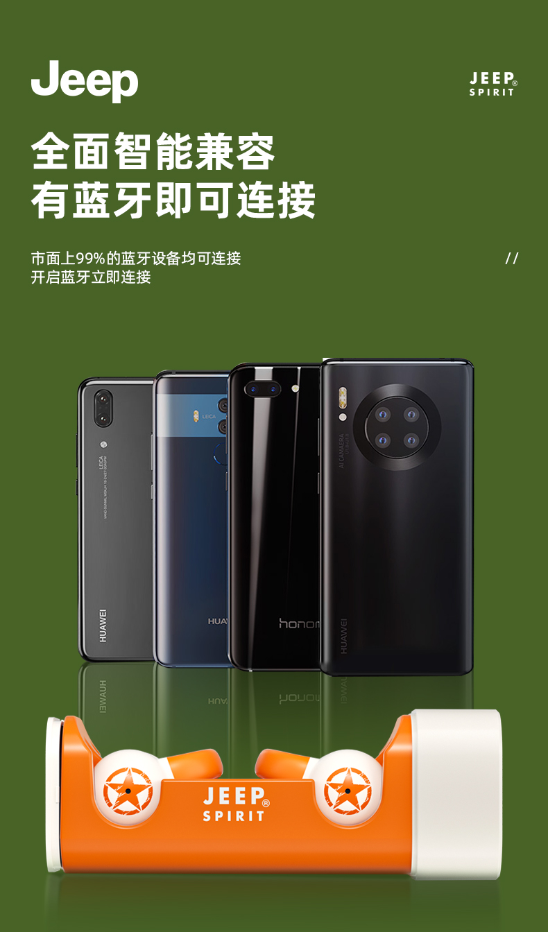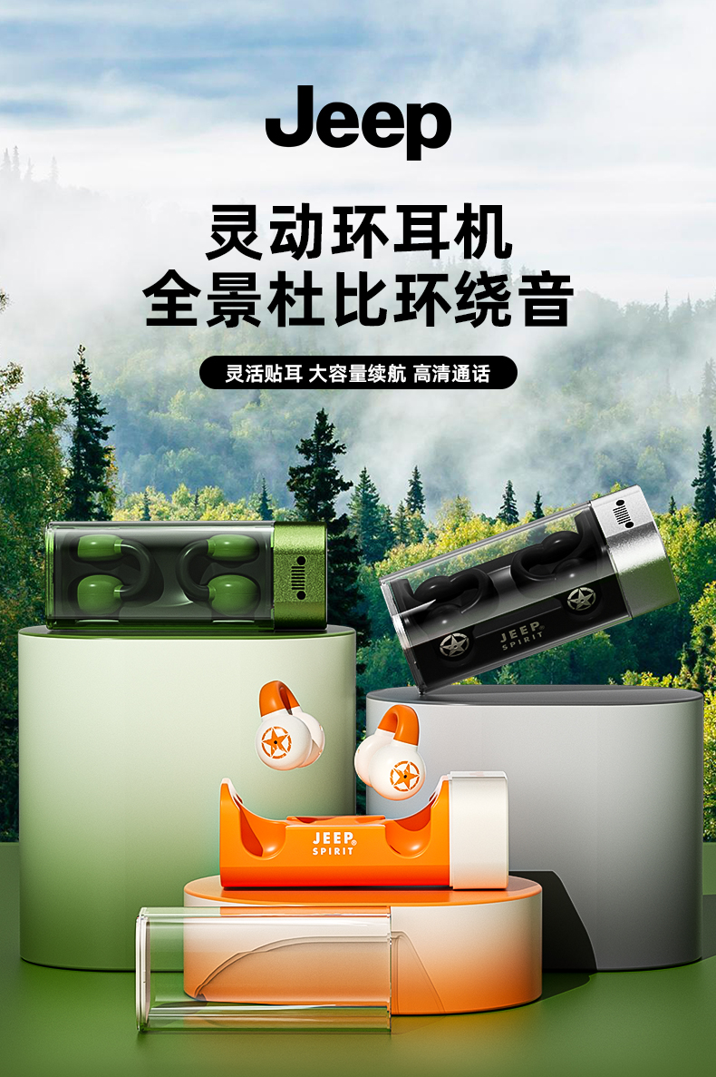 Jeep蓝牙耳机 骨传导概念耳夹式无线开放不入耳 运动跑步骑行通话降噪 适用于苹果华为小米 单位:副 橙色