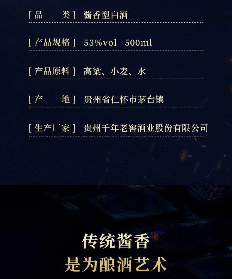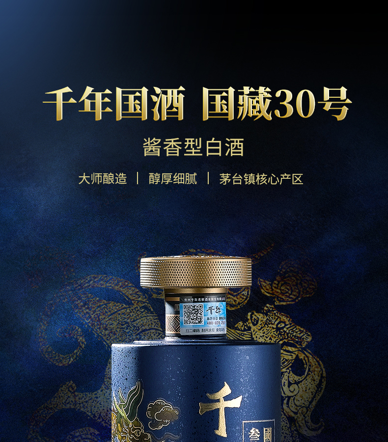 千年国酒·国藏叁拾号 53度 酱香型高度白酒 500ml(计价单位:瓶) 灰蓝色