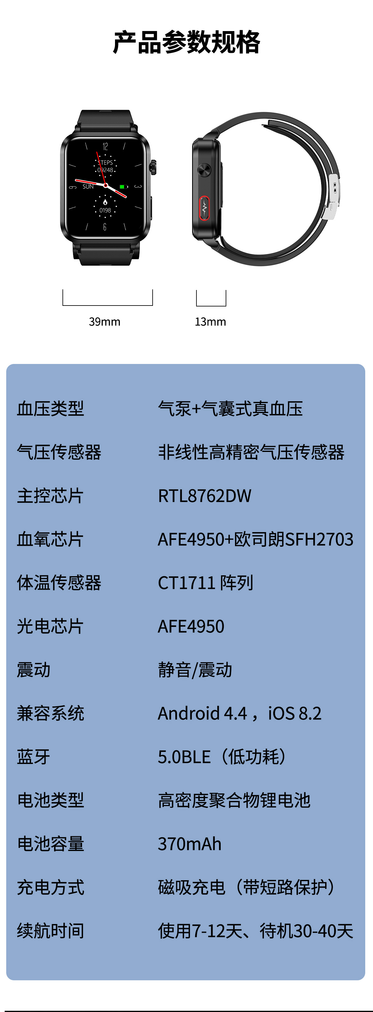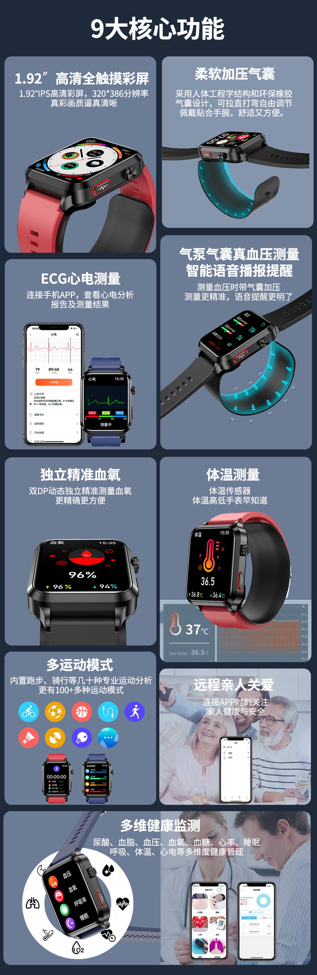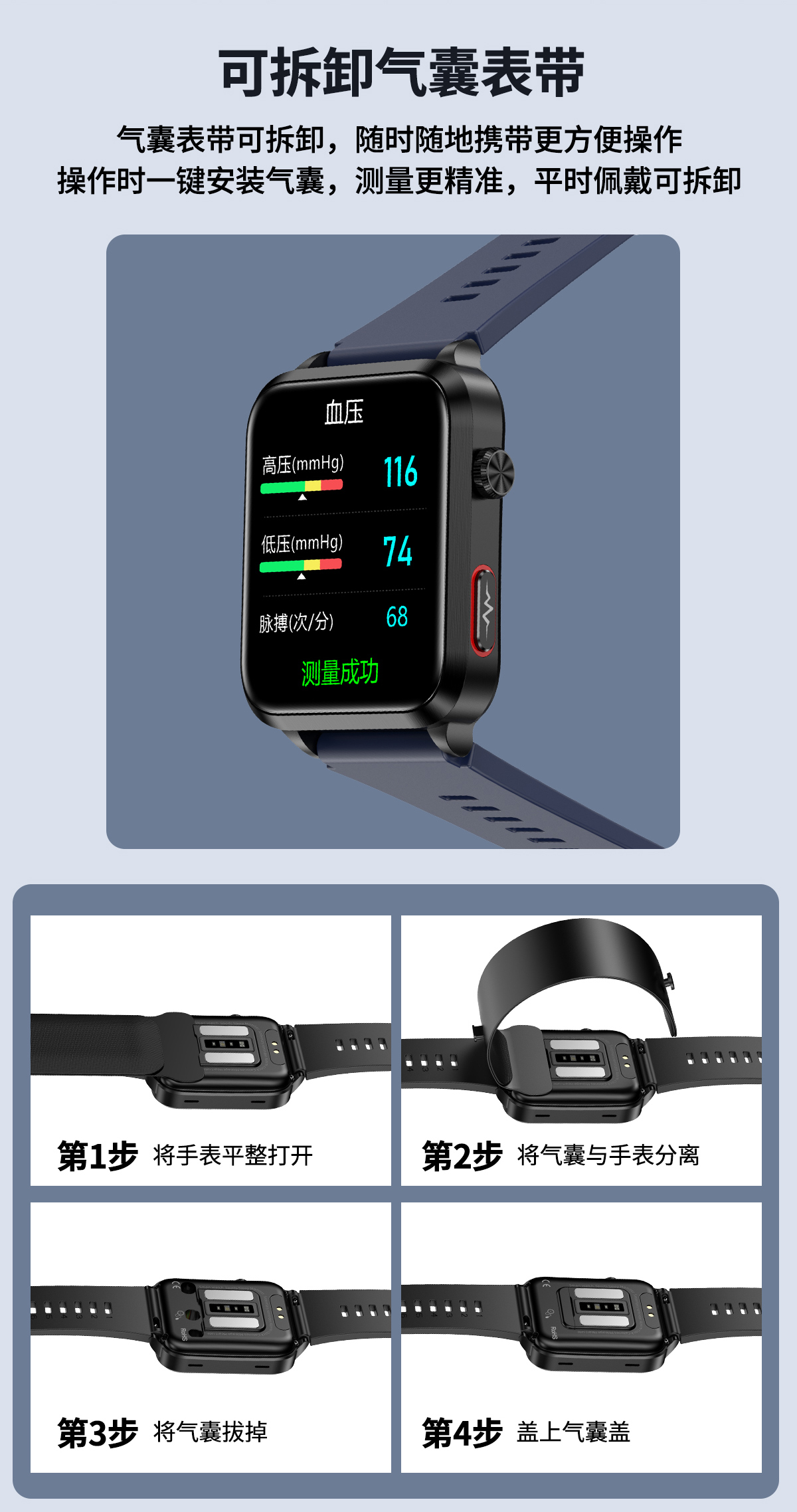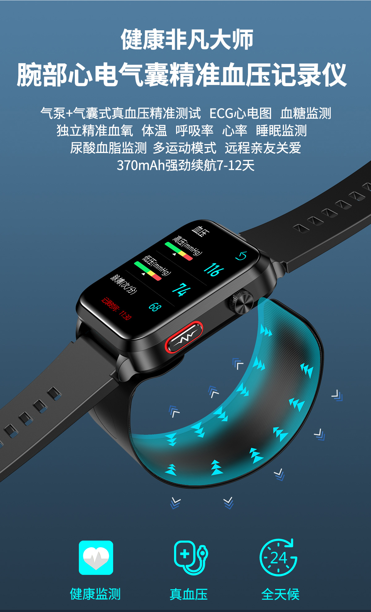 Lefit 气泵加压式血压心率智能手表腕部记录仪手表高精准监测量仪老人血压健康男女通用 单位:个 黑-黑硅胶