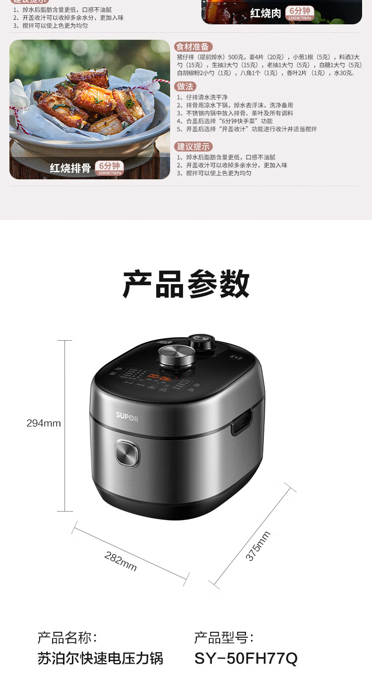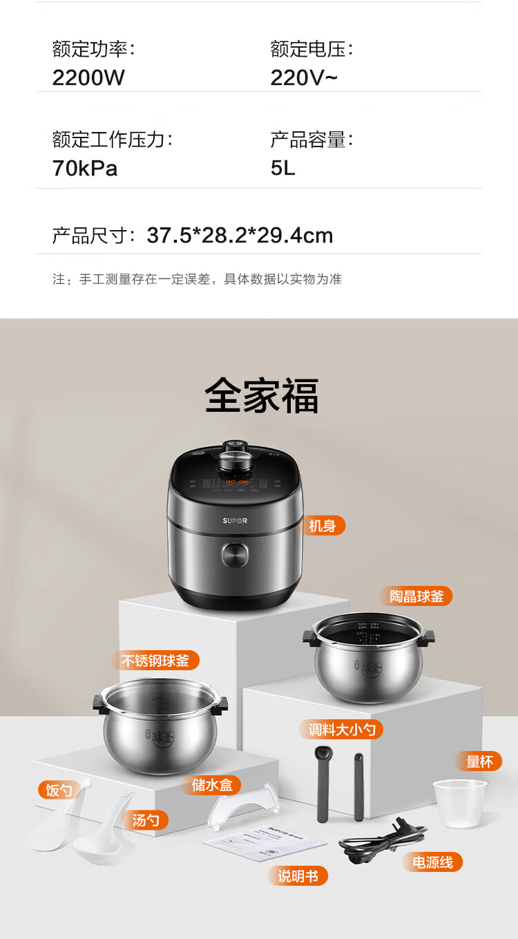 苏泊尔(SUPOR)电压力锅5L SY-50FH77Q 单位:台 黑色