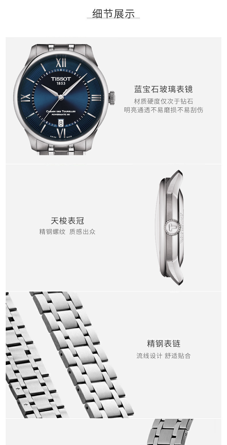 Tissot天梭 杜鲁尔系列钢带机械男士腕表 T139.807.22.038.00(单位:块) 银色