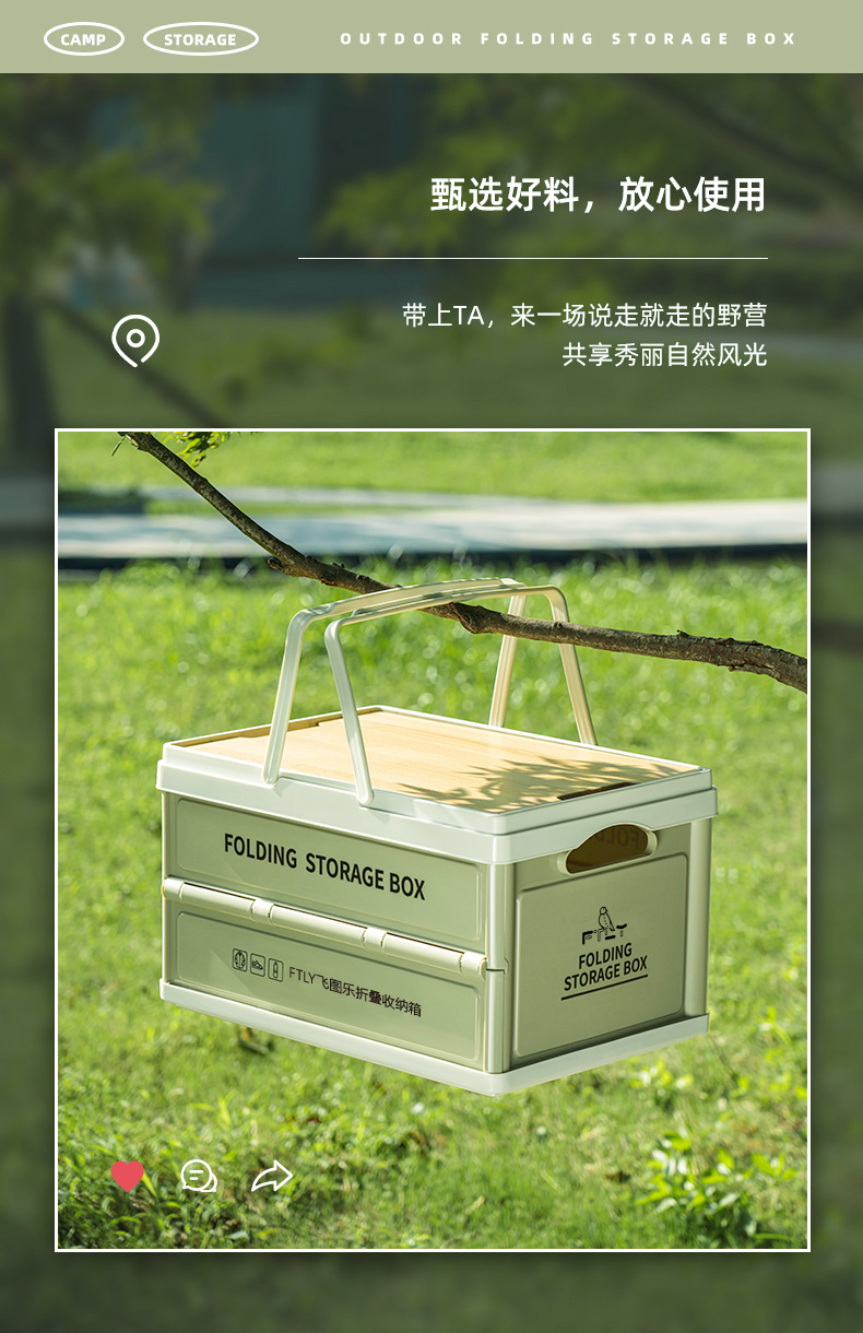 FTLY飞图乐带手提户外折叠收纳箱CWX0301(30L)/ CWX0302(55L)个 晓绿-55L
