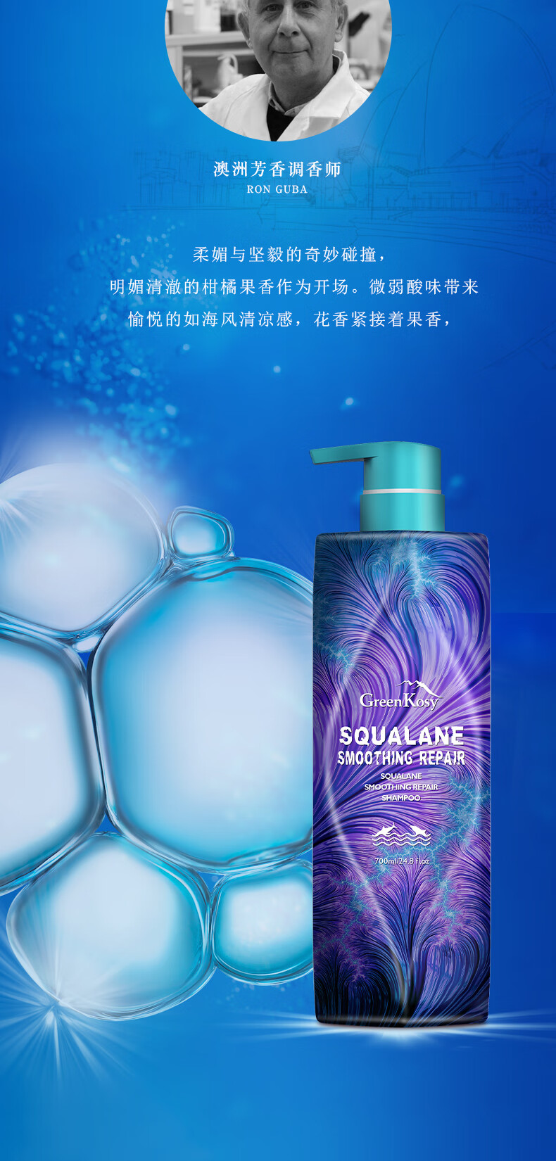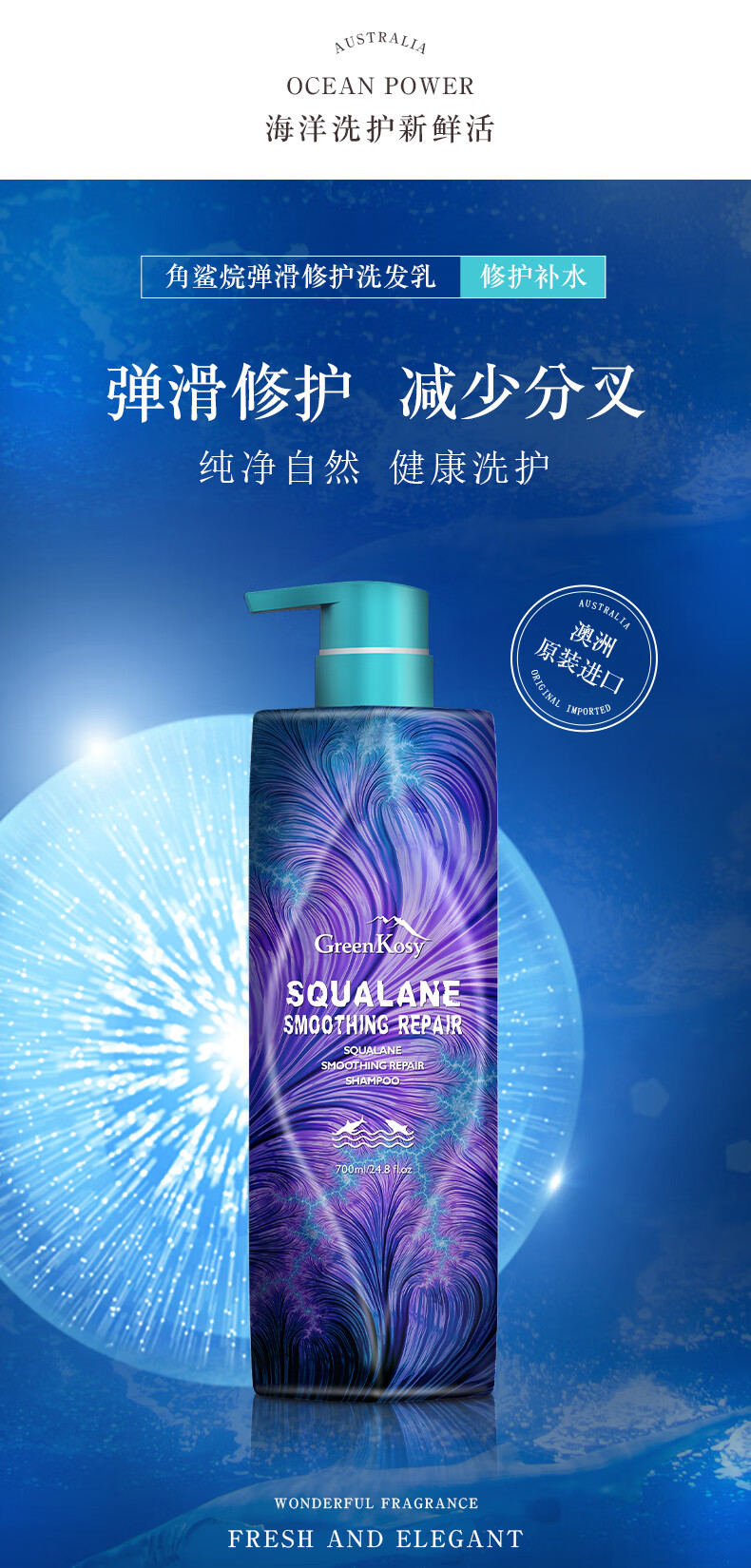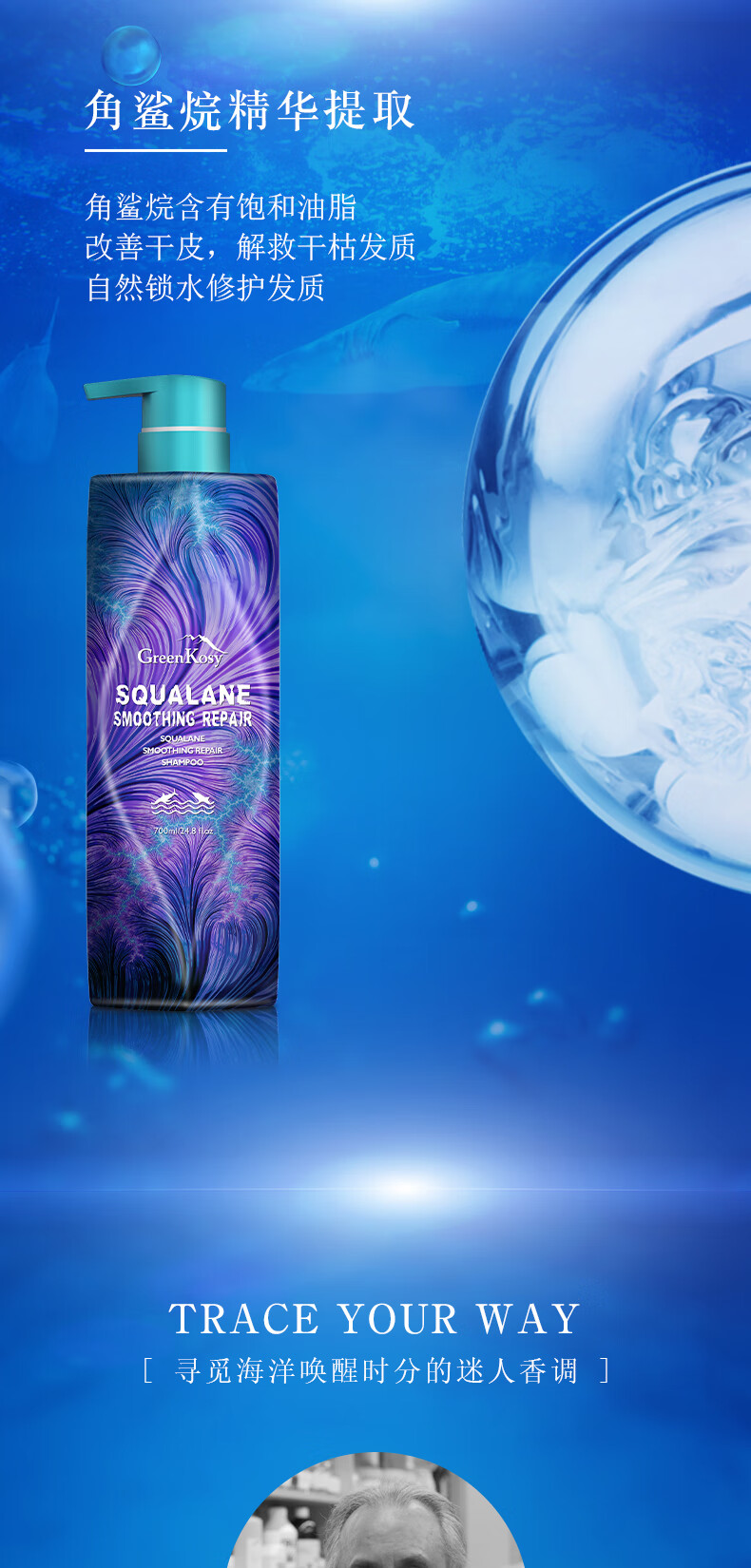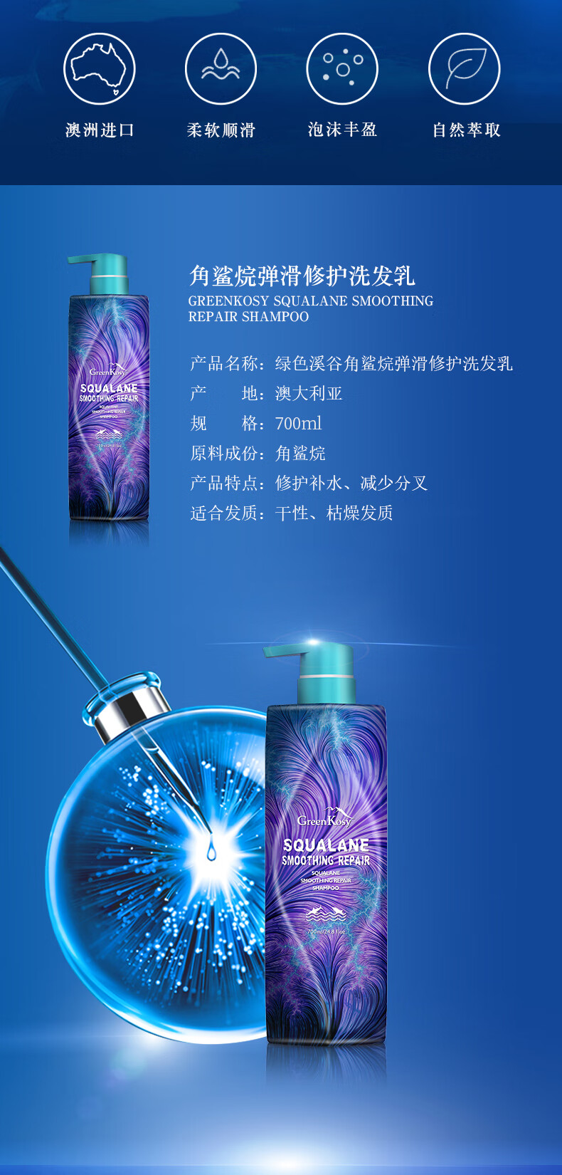 绿色溪谷角鲨烷弹滑修护洗发乳480ml(单位:瓶) 水蓝色