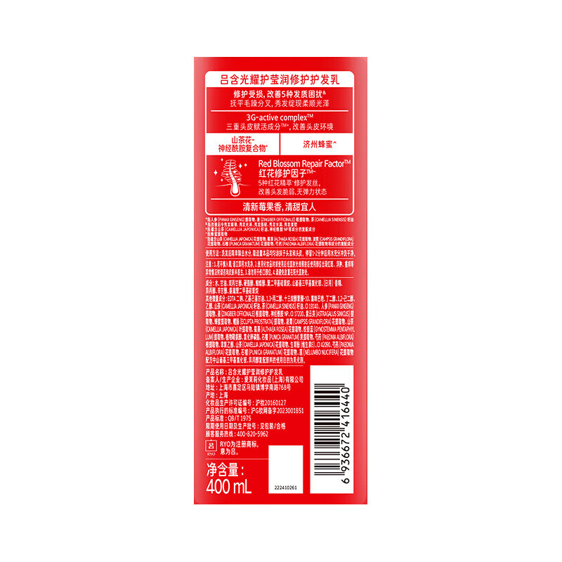 吕(Ryo)红吕修护损伤护发素改善毛躁柔顺亮泽护发乳400ml
