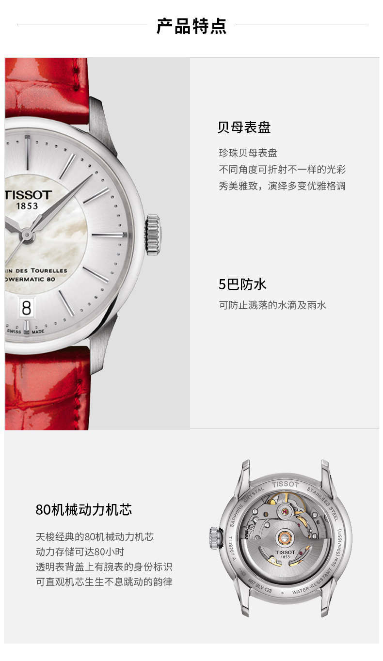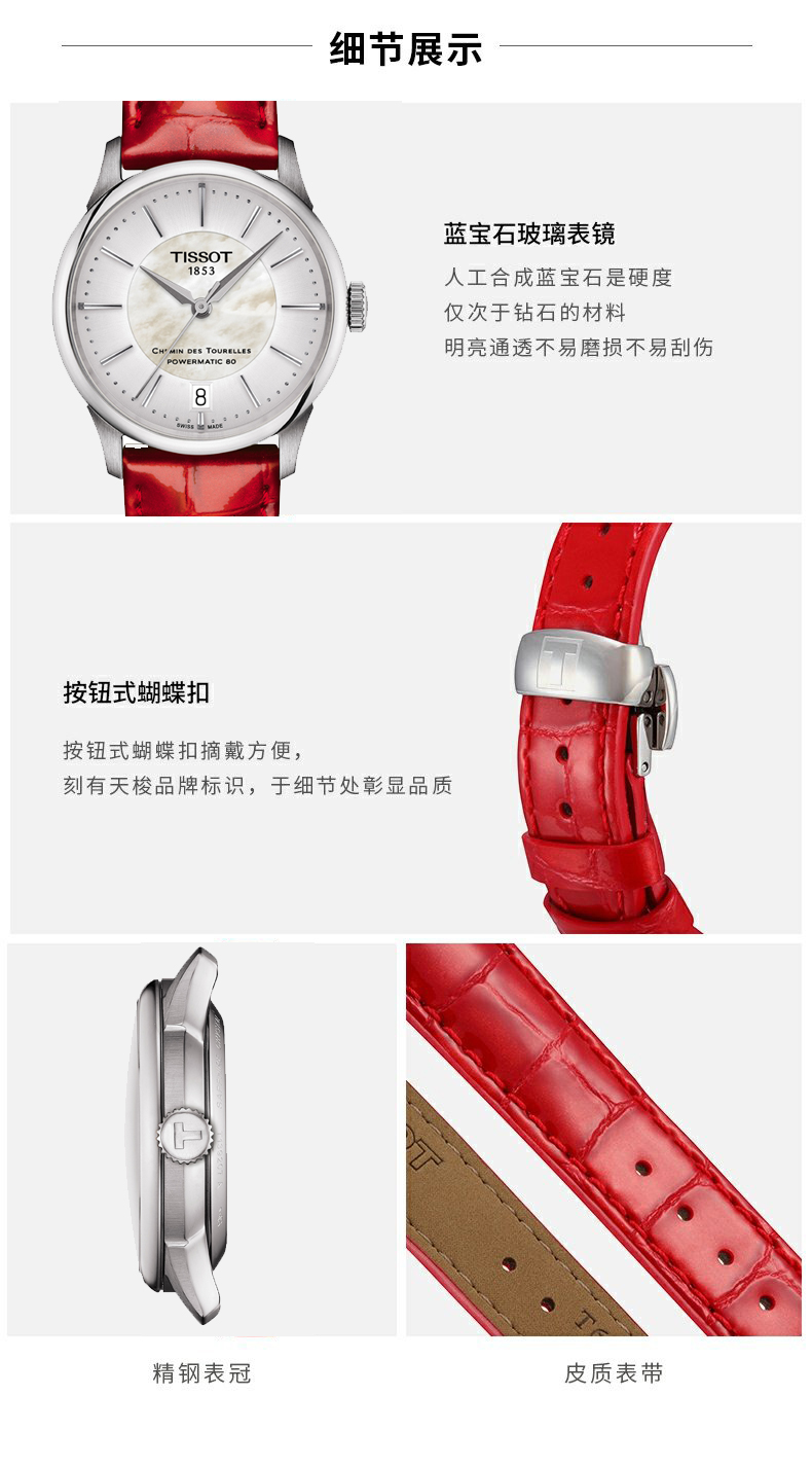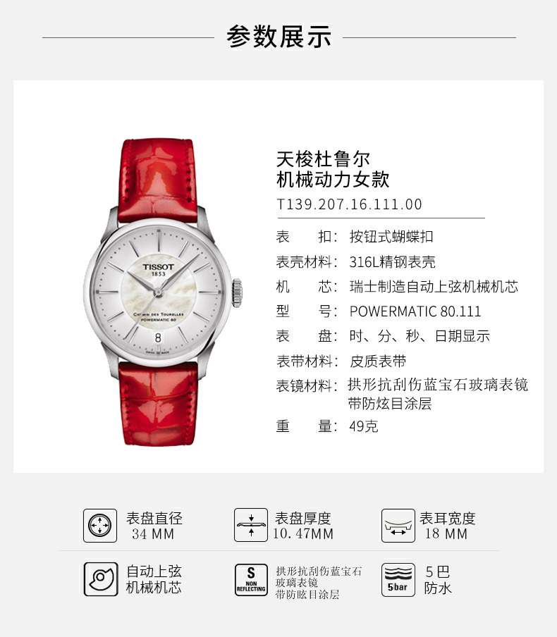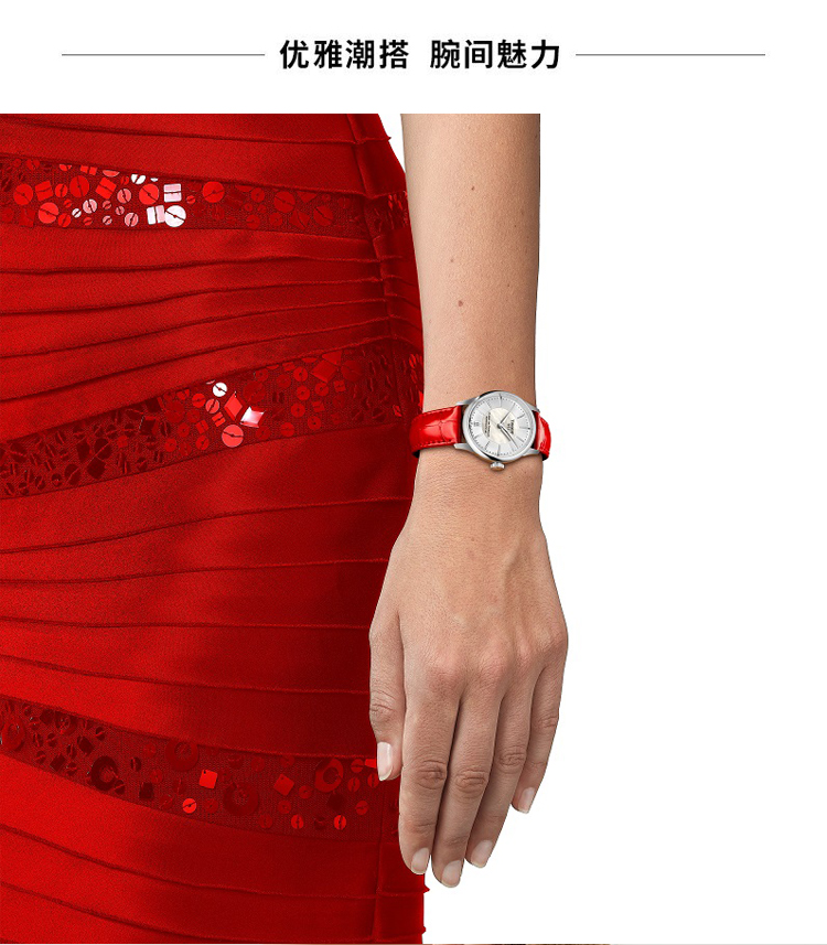 Tissot天梭 杜鲁尔系列皮带机械女士腕表 T139.207.16.111.00(单位:块) 红色