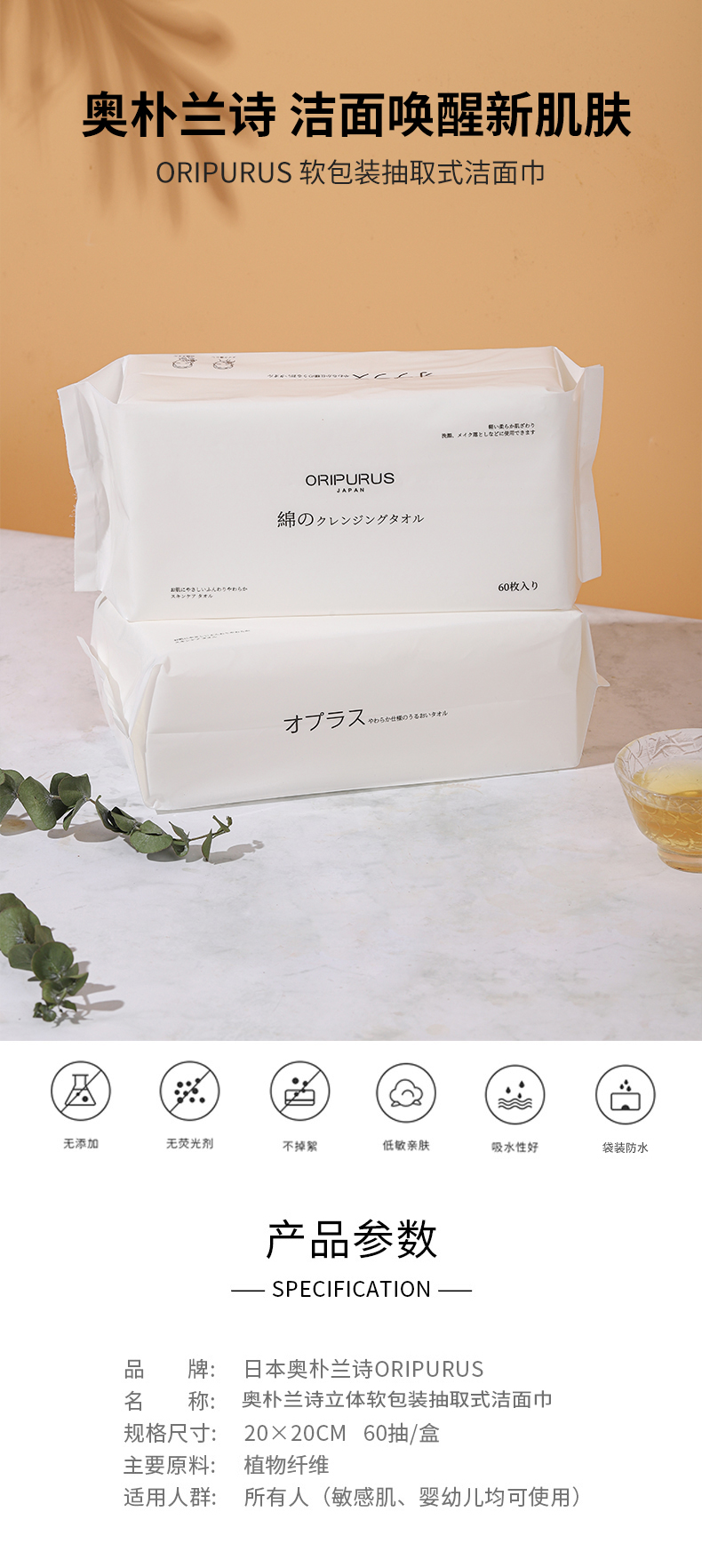 ORIPURUS 袋装 洁面巾60抽(单位:包) 1份装