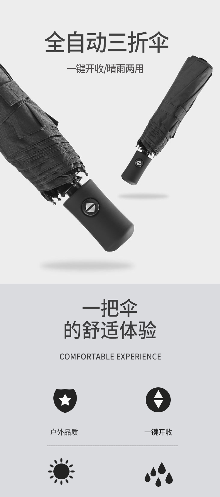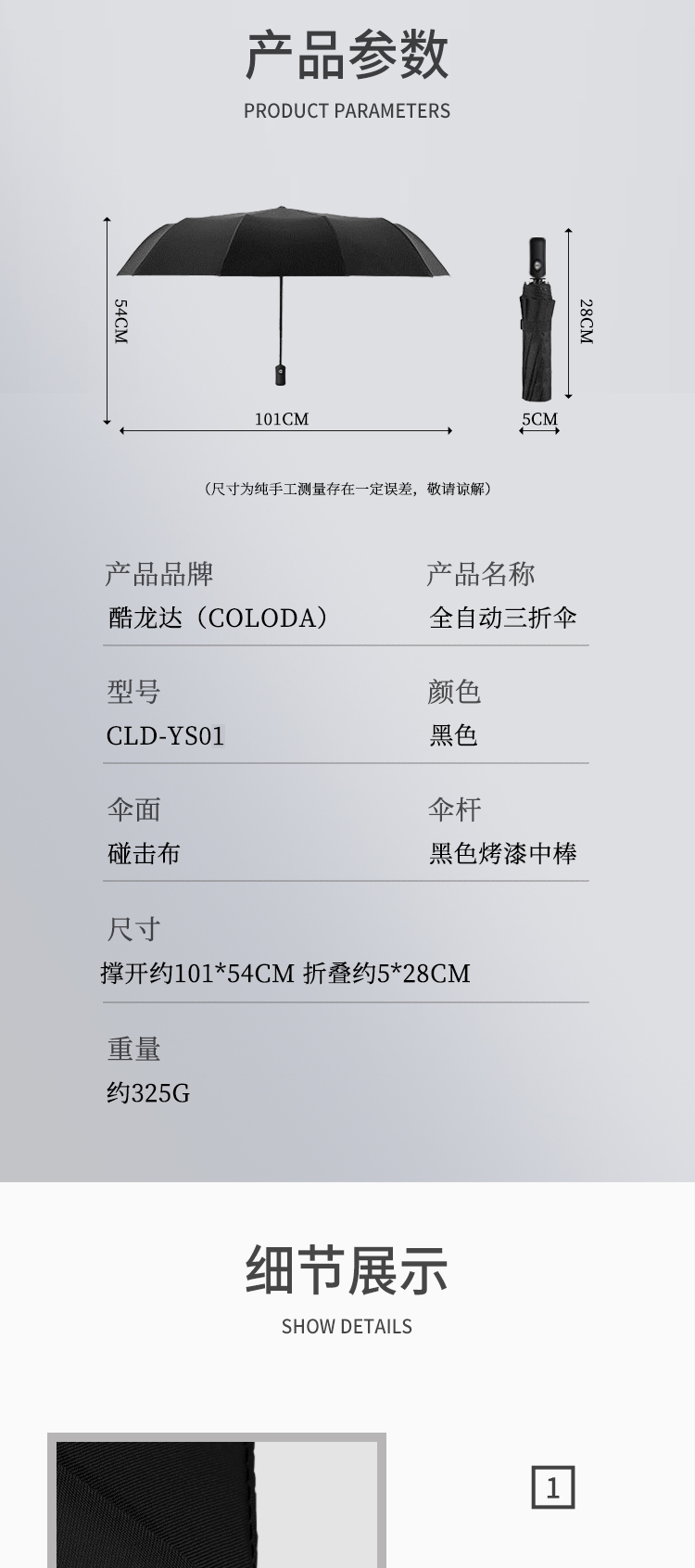酷龙达(Coloda)全自动黑胶三折伞CLD-YS01 黑色
