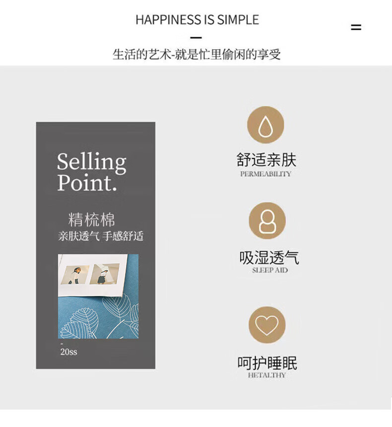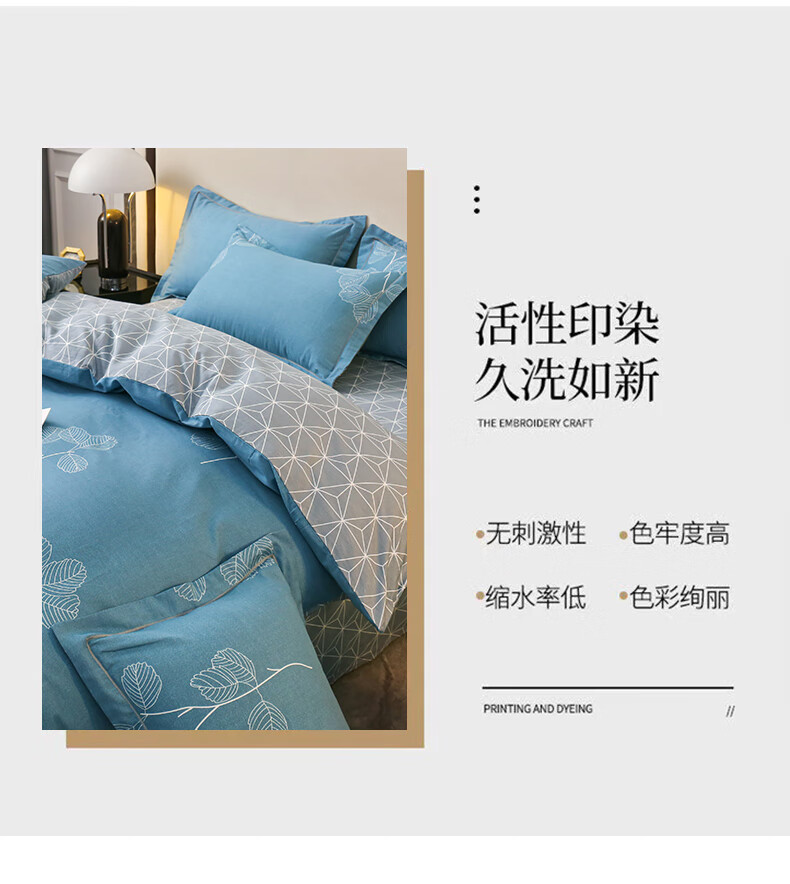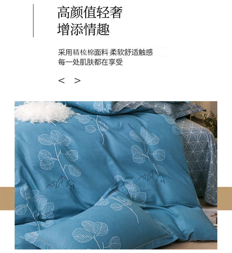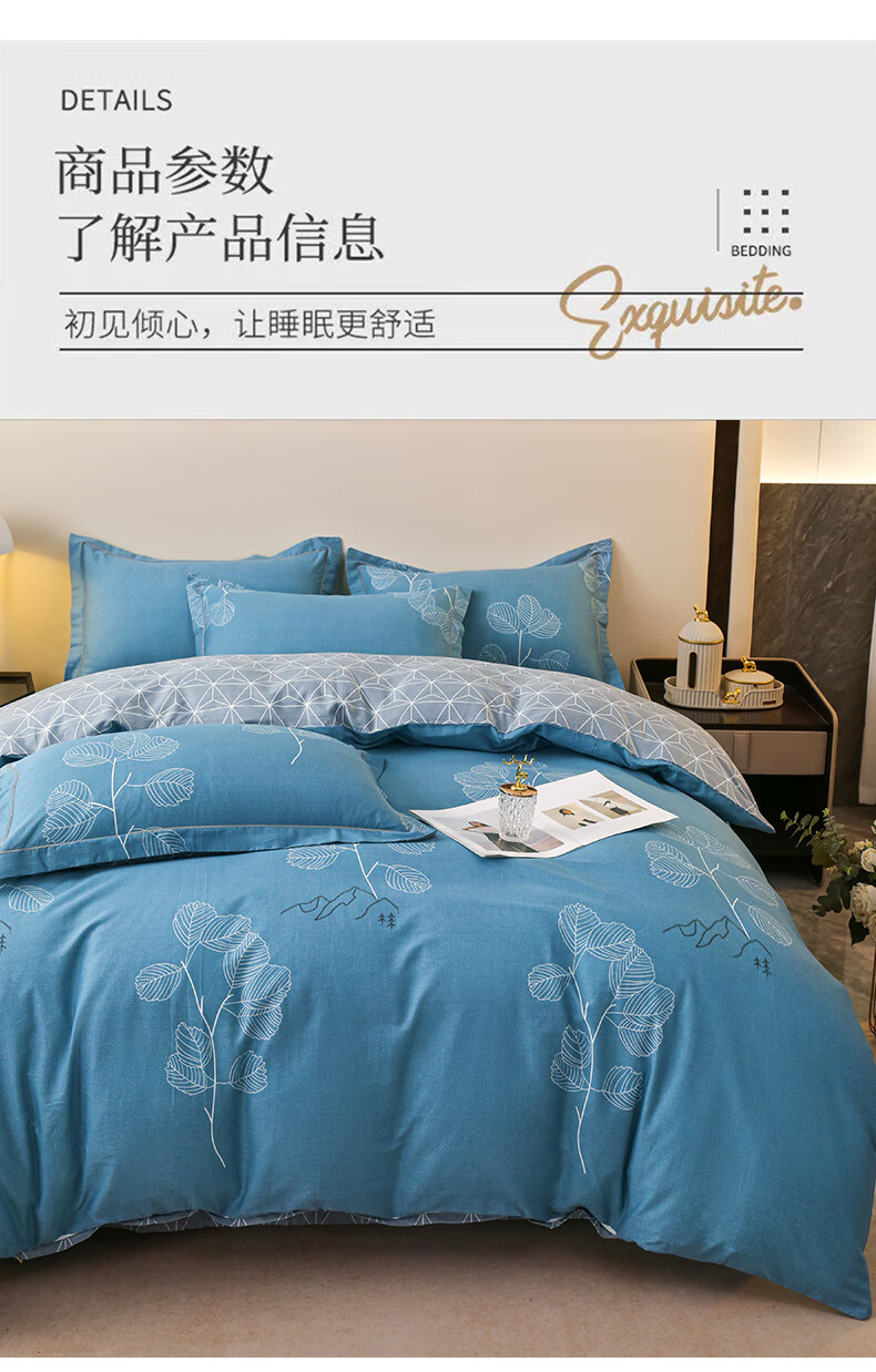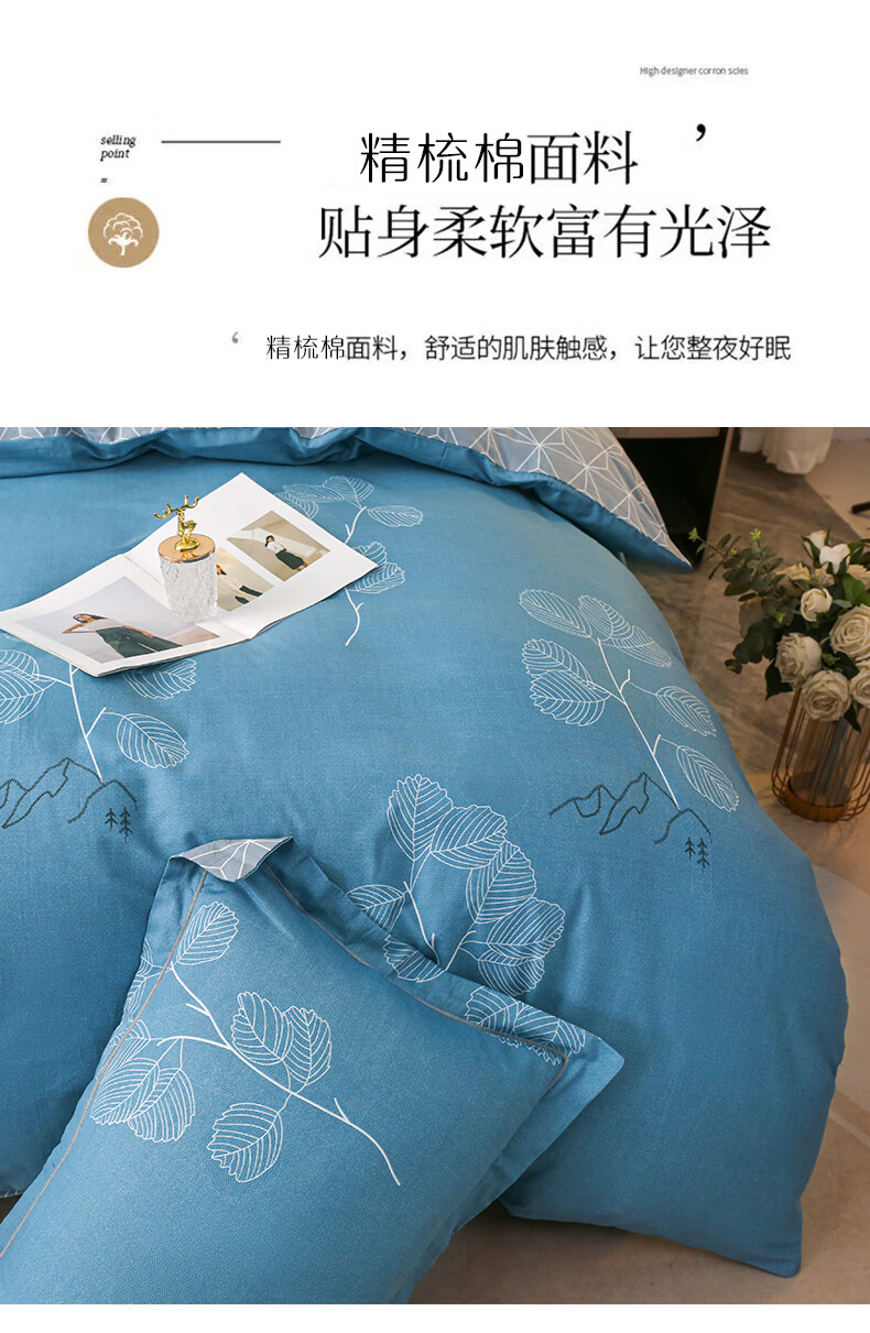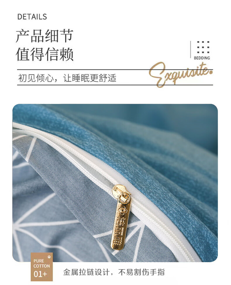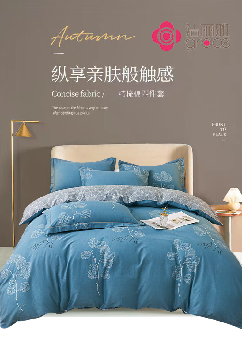 洁丽雅Grace精梳棉套件-新风尚200*230cm 蓝色