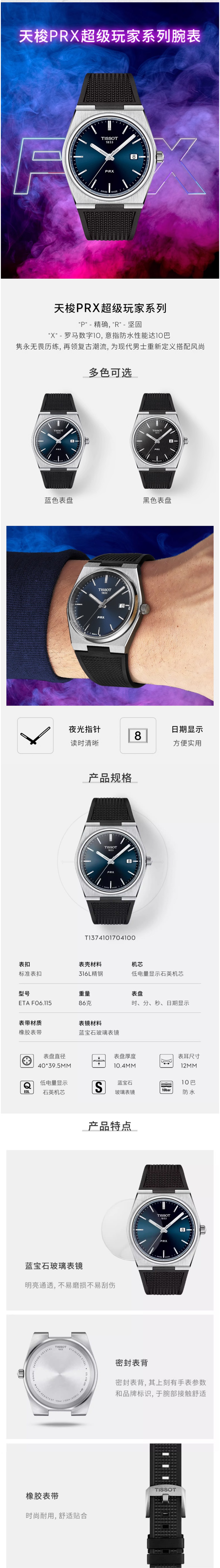 TISSOT天梭 PRX超级玩家系列石英男士腕表 T137.410.17.051.00(单位:块) 黑色