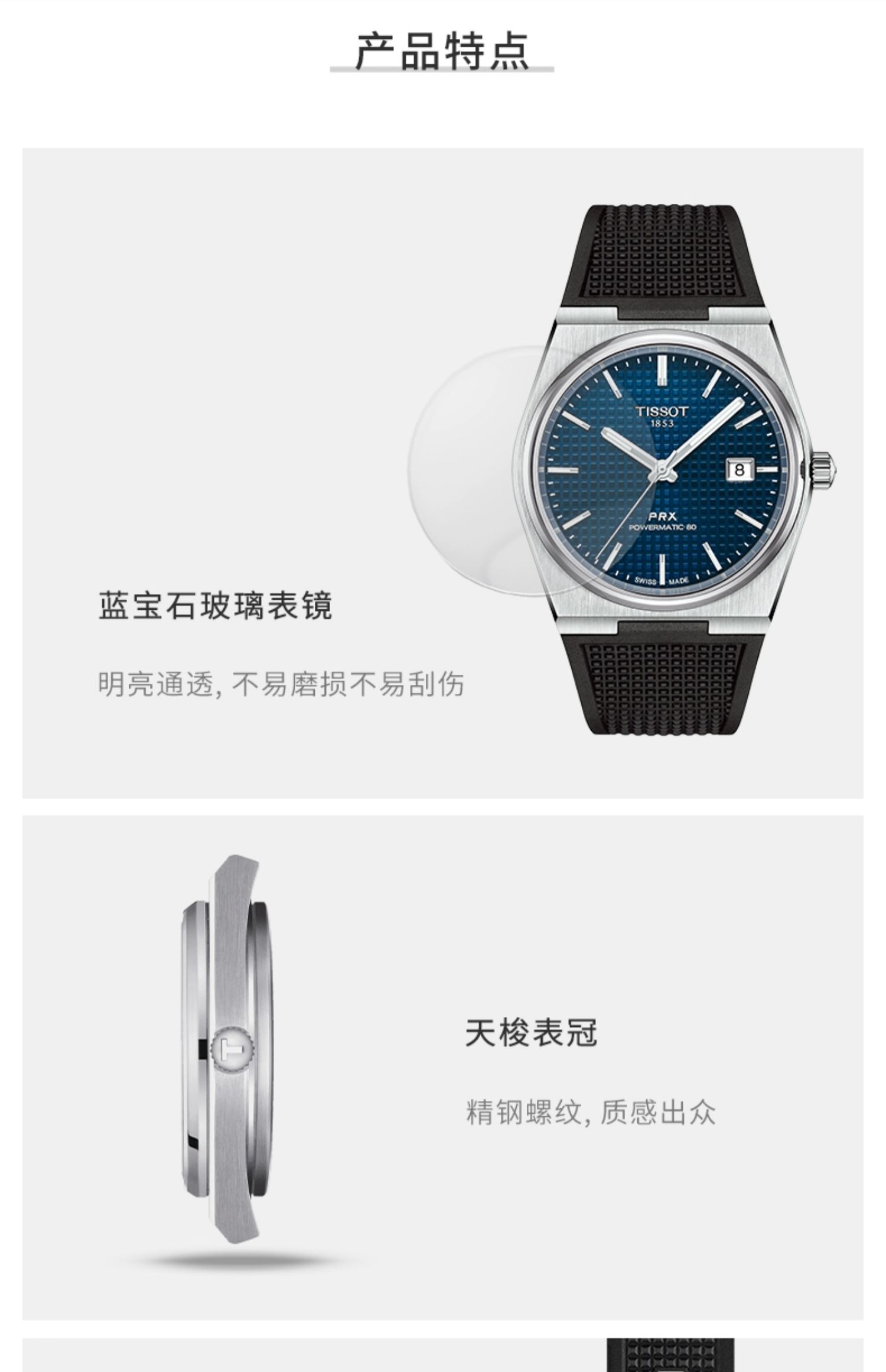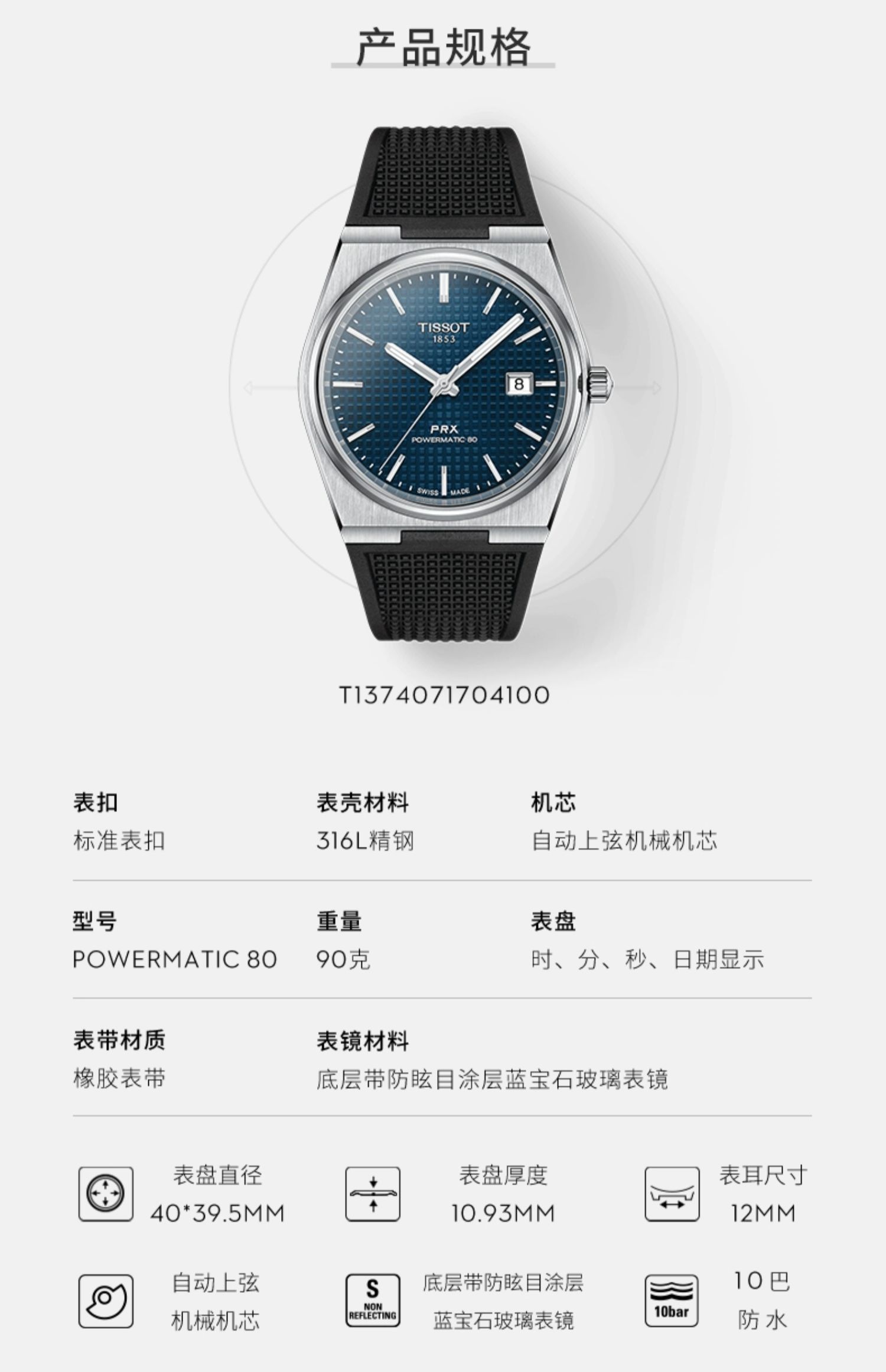 Tissot天梭 PRX超级玩家系列机械男士腕表 T137.407.17.051.00(单位:块) 黑色